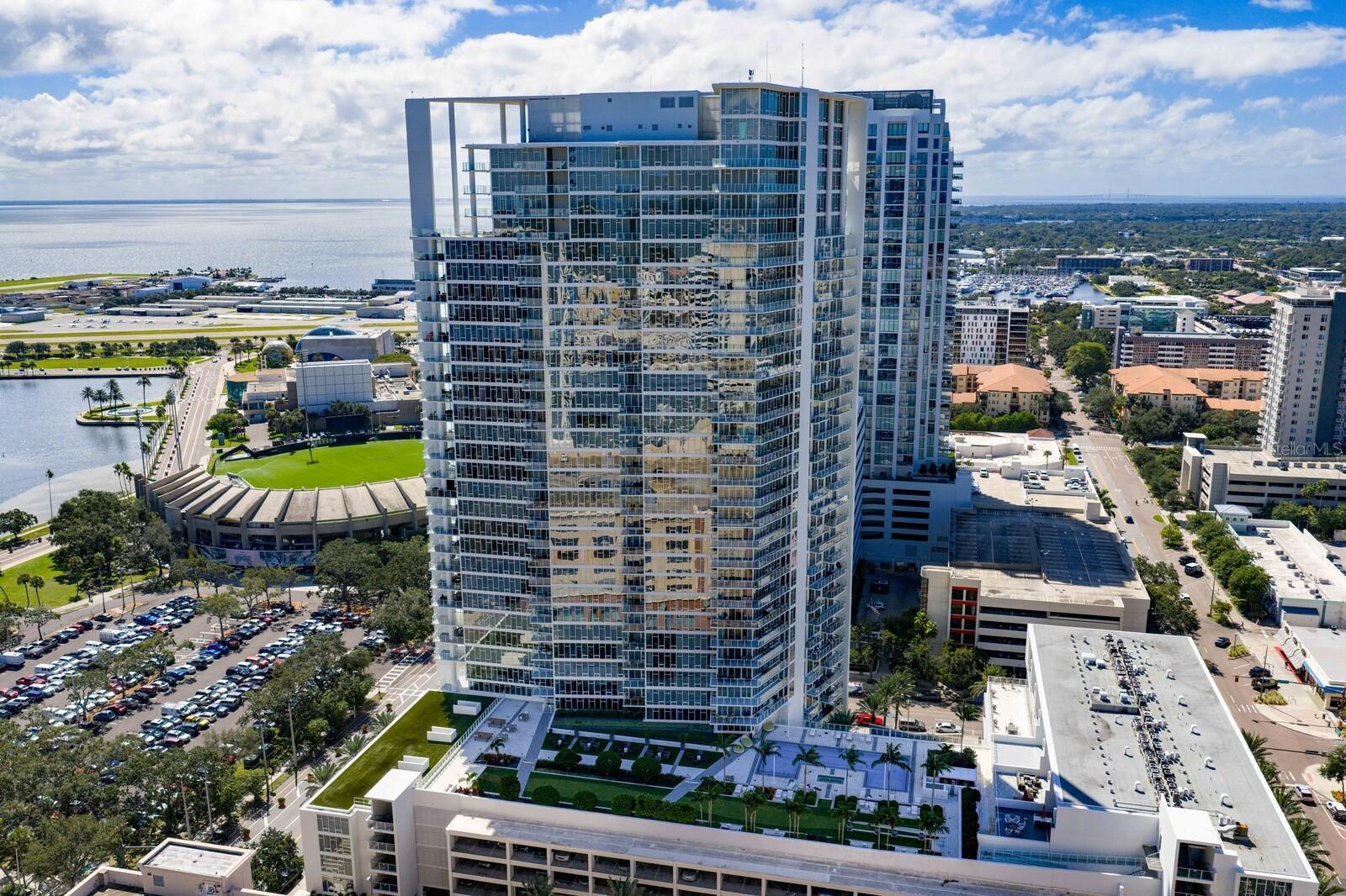 This sleek downtown residence puts you at the center of St. Petersburg's most vibrant scene where urban energy, walkable streets, and elevated living collide. Perched on the third floor, this south-facing condo delivers sun-drenched interiors and views of Tampa Bay. The open-concept layout is effortlessly modern, anchored by a contemporary kitchen with European-style cabinetry, stone countertops, and stainless appliances designed for both style and performance. Slide open the doors to your expansive balcony and let the city become your backdrop, perfect for morning coffee or sunset cocktails with a view. The primary suite is a private retreat, tucked away for quiet and comfort, featuring a spa-inspired bath with double vanity, soaking tub, and sleek modern finishes. Every detail feels intentional, refined, and undeniably contemporary. Residents enjoy full-service amenities including 24-hour concierge and security, a heated infinity-edge pool, state-of-the-art fitness center, sky gardens, putting green, club and media rooms, secured parking, and additional storage. Step outside and you're instantly connected to the best of the city. Stroll Beach Drive and grab dinner at any of the nearby top-rated restaurants, from casual waterfront spots to acclaimed fine dining. Explore world-class culture at the DalĂ Museum, or watch a soccer game at Al Lang Stadium. Farmers markets, galleries, nightlife, the marina, and miles of waterfront are all at your doorstep. When you need to travel, Tampa International Airport is just twenty-five minutes away. This isn't just a condo, it's a lifestyle. Welcome to the pulse of St. Pete.