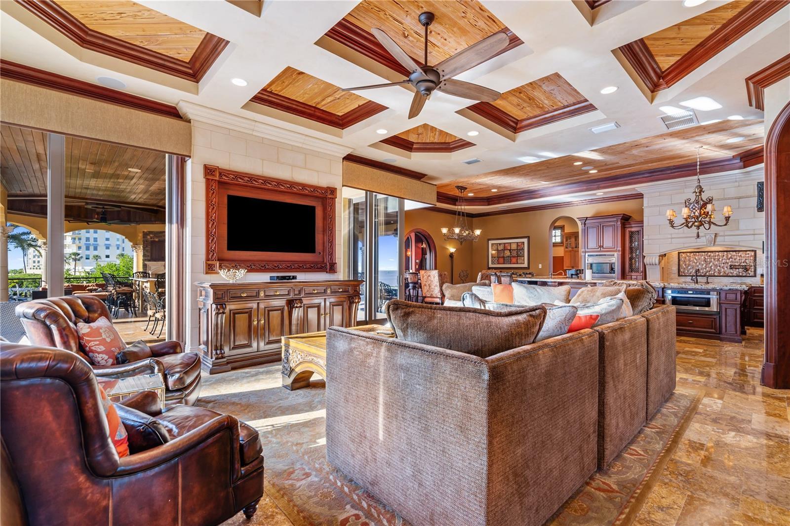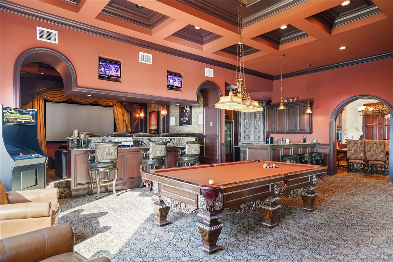 Once a hidden gem, Oceanview Drive in Tierra Verde has become one of Tampa Bay’s most sought-after waterfront addresses — and 1363 Oceanview Drive stands as a true showpiece along its shoreline. Designed for both privacy and entertaining, this extraordinary estate delivers the best of waterfront living. Perfectly positioned on the water with breathtaking southwest views of Shell Island Preserve and unforgettable sunsets, the property features a modern oversized dock complete with two boat lifts, a double jet ski lift, multiple boat slips, and easy-access ladders for paddleboards, kayaks, and canoes. Lush, manicured landscaping provides a serene sense of seclusion while still allowing abundant natural light and outdoor enjoyment. The resort-style swimming pool was re-marcited in 2022, a new pool heater was added in 2021, and the surrounding travertine decking was coated with a non-slip finish in 2020. An expansive outdoor entertainment pavilion includes a built-in BBQ station, a three-sided full bar with appliances, dining and lounge areas, a fireplace, and a mounted flat-screen TV. The ceiling is pre-wired for speakers, fans, and misting systems. A separate one-bedroom, one-bath pool house offers ideal accommodations for guests. The main residence is the crown jewel — a 4-bedroom, 4-full-bath estate with two additional half baths and three garages capable of housing up to five vehicles or recreational toys. An elevator provides effortless access to each level, from garage to kitchen to bedroom floors — ideal for daily convenience and ease of living. Through the grand double iron entry doors, you’re welcomed into a stunning parlor with a double-sided fireplace shared with an executive office. The south wing leads to the luxurious primary suite, which opens to its own outdoor patio overlooking the pool, spa, and waterway. Dual walk-in closets with center jewelry island, separate vanities, dedicated sitting areas, a soaking tub, and a large walk-in shower complete the spa-like primary bath. To the north of the parlor lies a formal dining room adjacent to a private, temperature-controlled wine cellar. The chef’s kitchen features hidden refrigerator/freezer panels, L-shaped custom cabinetry, a gas range, and premium stainless-steel appliances. Upstairs, three additional bedrooms, three full baths, a second living area, coffee/wine bar, and laundry room create a thoughtfully designed private retreat level. What truly sets this home apart is its dedicated entertainment wing — a private bar, billiards room, arcade space, and a fully equipped movie theater. The bar is designed to impress, with multiple TVs, seating areas, and space for pool, darts, or game-day gatherings. The theater was recently upgraded with over $40,000 in new projection, audio, visual, and screen equipment. Meticulously maintained and upgraded, the seller has spared no expense in recent years. From 2021–2023, interior travertine floors were buffed and polished, the parlor received new cherry hardwood flooring, gutters were repaired and cleaned, and over $40,000 was invested in new central AC systems. In 2025, a $150,000 dock renovation further enhanced the property’s waterfront lifestyle. This is more than a home — it is a private waterfront resort built for luxury living, effortless entertaining, and unforgettable sunsets.