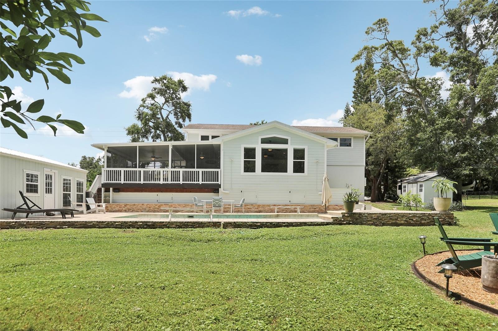 Welcome to your private retreat in the heart of Safety Harbor - a truly one-of-a-kind luxury estate offering exceptional privacy, space, and natural beauty. Situated on 1.6 acres (9 full lots), this property backs directly to Folly Farm Nature Preserve, a protected 10-acre sanctuary providing permanent tranquility and breathtaking natural views. The fully remodeled 4-bedroom, 3-bathroom home showcases thoughtful design and high-quality finishes throughout. The chef’s kitchen is a standout, featuring premium stainless steel appliances, a natural gas range, dual-icemaker refrigerator, reverse osmosis water filtration, sleek countertops, and custom cabinetry - perfect for entertaining or everyday living. An open-concept layout flows seamlessly through the living and dining areas, complemented by modern lighting, updated flooring, custom Levolor remote-control blinds, and a split-bedroom floor plan for added privacy. Outdoor living is elevated to a resort-style experience. Enjoy the heated saltwater pool and spa with Pebble Sheen finish, fully automated self-cleaning system, and 400k BTU gas heater. The screened lanai features a complete outdoor kitchen, ideal for year-round entertaining. The expansive backyard continues with an open-air deck, gazebo overlooking the preserve, fire pit area, and lush mature landscaping including 10 fruit-bearing trees, pollinator-friendly garden beds, and a 10-zone irrigation system fed by a shallow well - no landscaping water bill. A versatile detached flex space adjacent to the pool is wired and prepped for a mini-split A/C, ideal for a home gym, office, guest suite, or studio. Additional highlights include a garden shed, RV parking with electric and water hook-up, ample room for expansion, no deed restrictions, and no flood insurance required due to high elevation. Located just ½ mile from downtown Safety Harbor, this golf-cart-friendly community offers charming shops, restaurants, art galleries, farmers markets, and year-round events. Close to Philippe Park, Safety Harbor City Park, Clearwater Beach (10 miles), and Tampa International Airport (15 miles). This rare property offers endless possibilities—private estate, multi-generational living, or future development potential. A truly exceptional opportunity in one of Florida’s most beloved small towns.