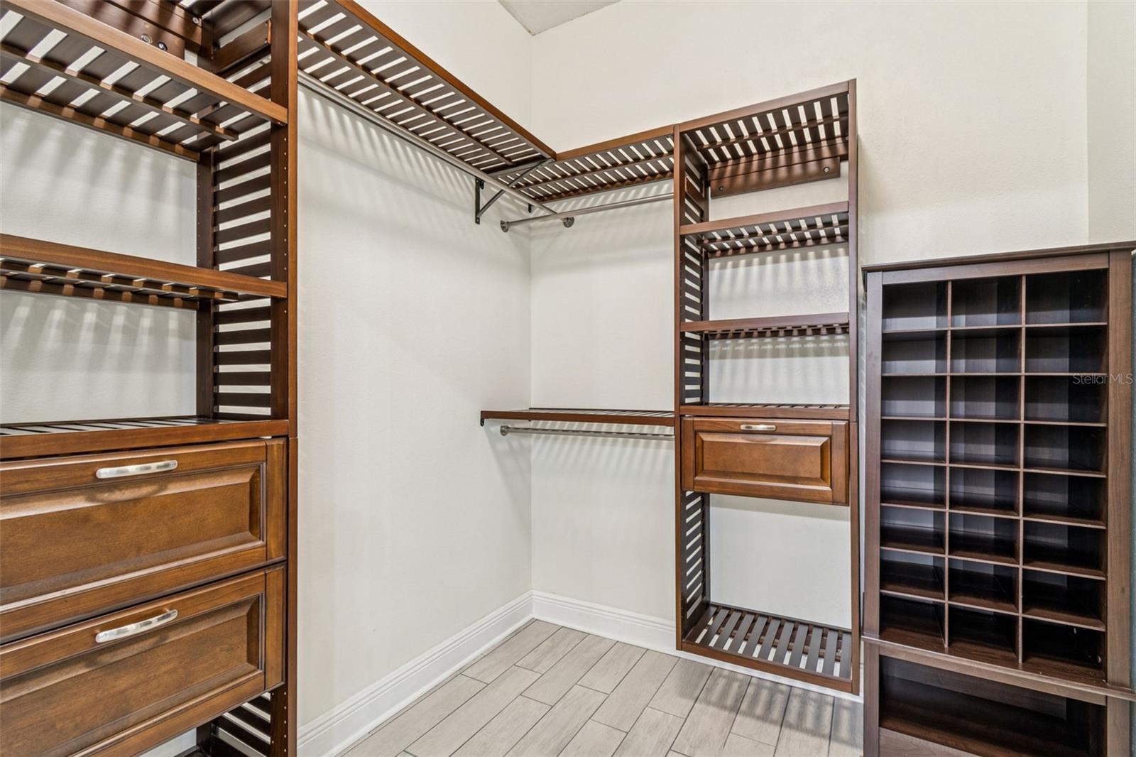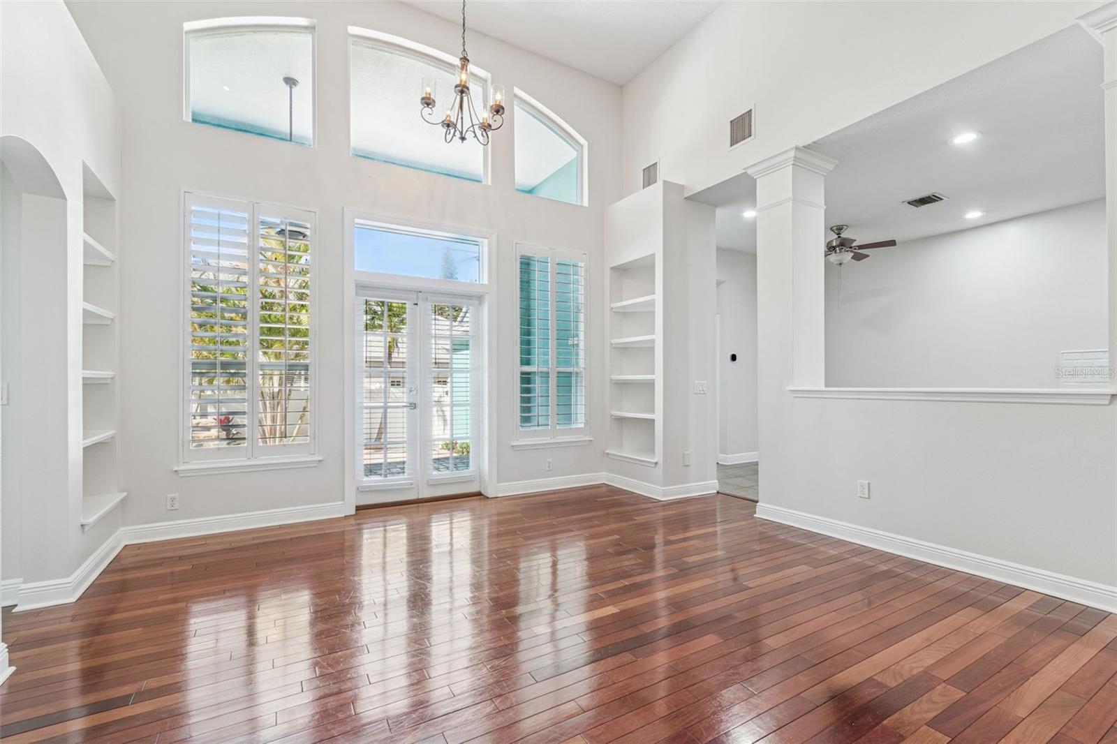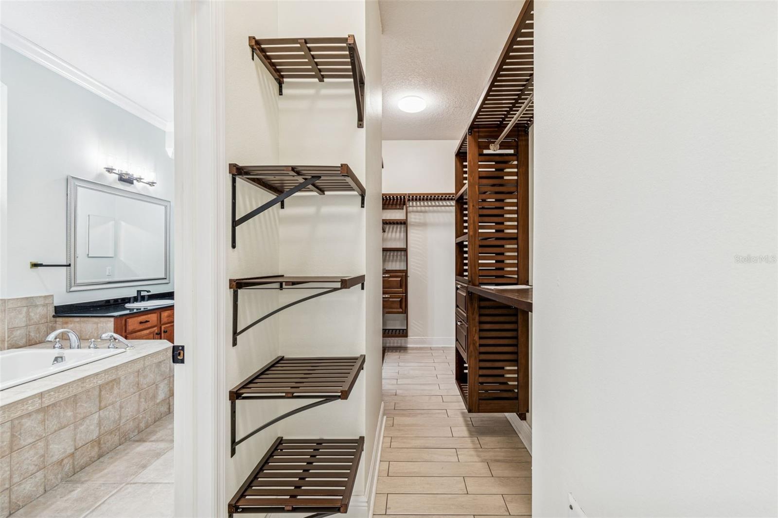 - Built-in Features, Central Vaccum, Crown Molding, Eat-in Kitchen, High Ceilings, Kitchen/Family Room Combo, Open Floorplan, Primary Bedroom Main Floor, Solid Surface Counters, Solid Wood Cabinets, Split Bedroom, Walk-In Closet(s)