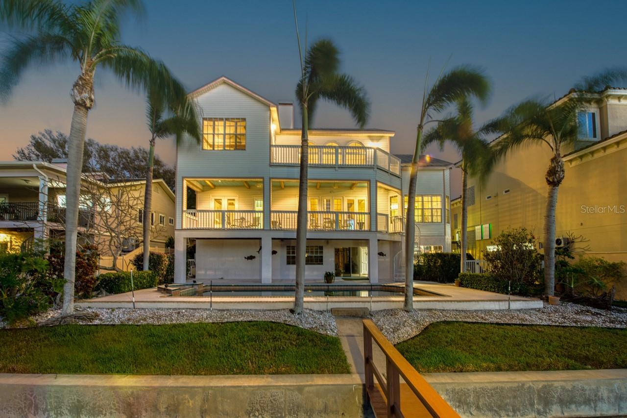 Under contract-accepting backup offers. Back on the market with a new roof and new windows in July/August!!Coastal Classic 4- bedroom 3-bathroom home located in the gated community of Pasadena Yacht and Country Club is a one-of-a-kind home. As you walk into this very bright and beautiful home you have lots of natural light open floor plan and beautiful aquarium that does convey. The grand great room with high ceilings, newer luxury vinyl flooring and a gas fireplace flows in the dining room and kitchen area, great for entertaining all your guests. The kitchen offers you all the amenities, including reverse water osmosis system, gas cook top, 2 ovens (one is convection), dual temperature wine cooler, gas dryer and of course the basic appliances. There are two bedrooms and two bathrooms on main level. One of the bedrooms has an ensuite bath which also has access to main level lanai. The master bedroom is accessible by a grand staircase that flows beautifully to the 2nd level. The primary bedroom is very spacious as is the primary bathroom. The primary bedroom also has a lanai that has a beautiful waterfront view. There is a 4th bedroom on this level that is now seller's office/den, with built in bookshelves and desk. All bedrooms have 9ft ceilings with plantation shutters. For the boaters there is a newer dock built in December of 2021 with water, electric and 13,000 lb lift. Saltwater pool has a new pool pump and plenty of room for a spa. The garage is a car collectors dream with room for 8 cars, depending on size. Balconies on front and back of home are oversized. Home is very efficient with R-38 Insulation,2 AC system, double pane windows with UV tinting. There is a chair lift from lower level to main floor for easy accessibility. Purchase this home and within 30 days of closing you will have the opportunity to skip the wait list at Pasadena Yacht and Country Club for both Social and Golf Memberships. Please contact the membership director, Sarah at PYCC for more information.
