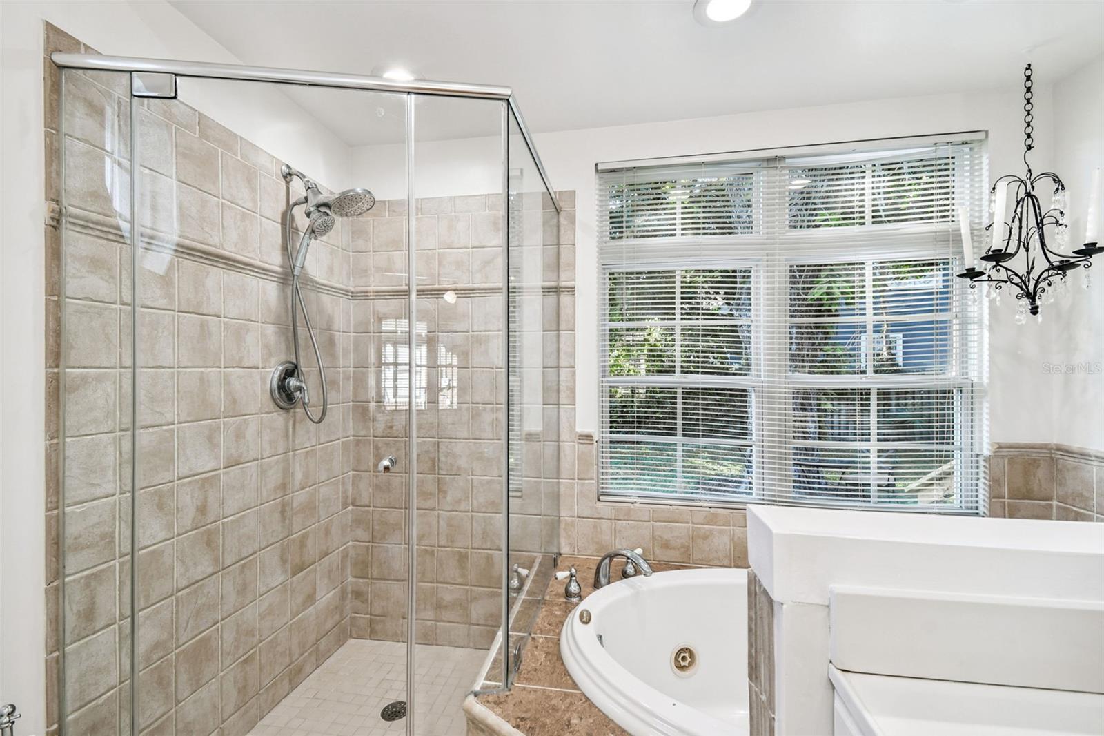 - Ceiling Fans(s), Crown Molding, Eat-in Kitchen, High Ceilings, Primary Bedroom Main Floor, Solid Surface Counters, Thermostat, Walk-In Closet(s), Window Treatments