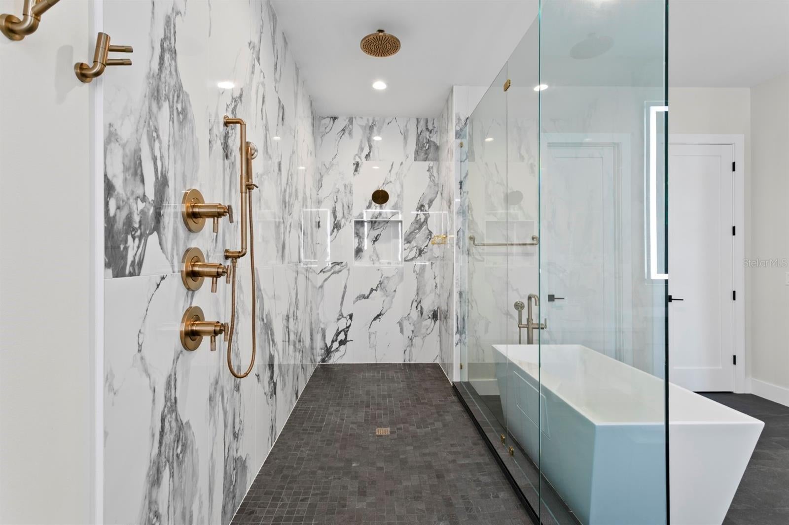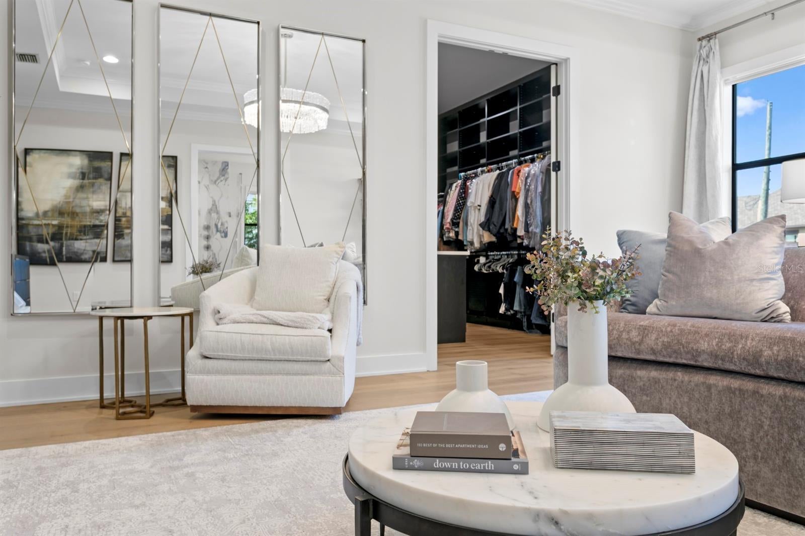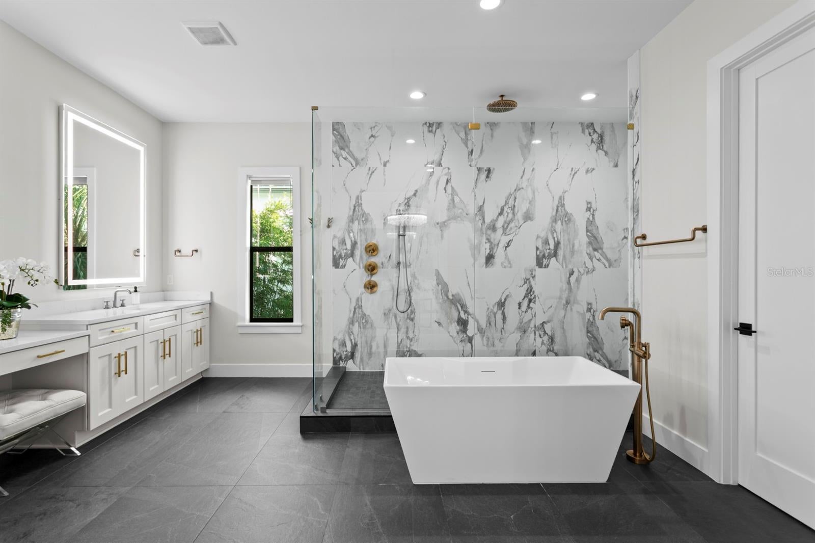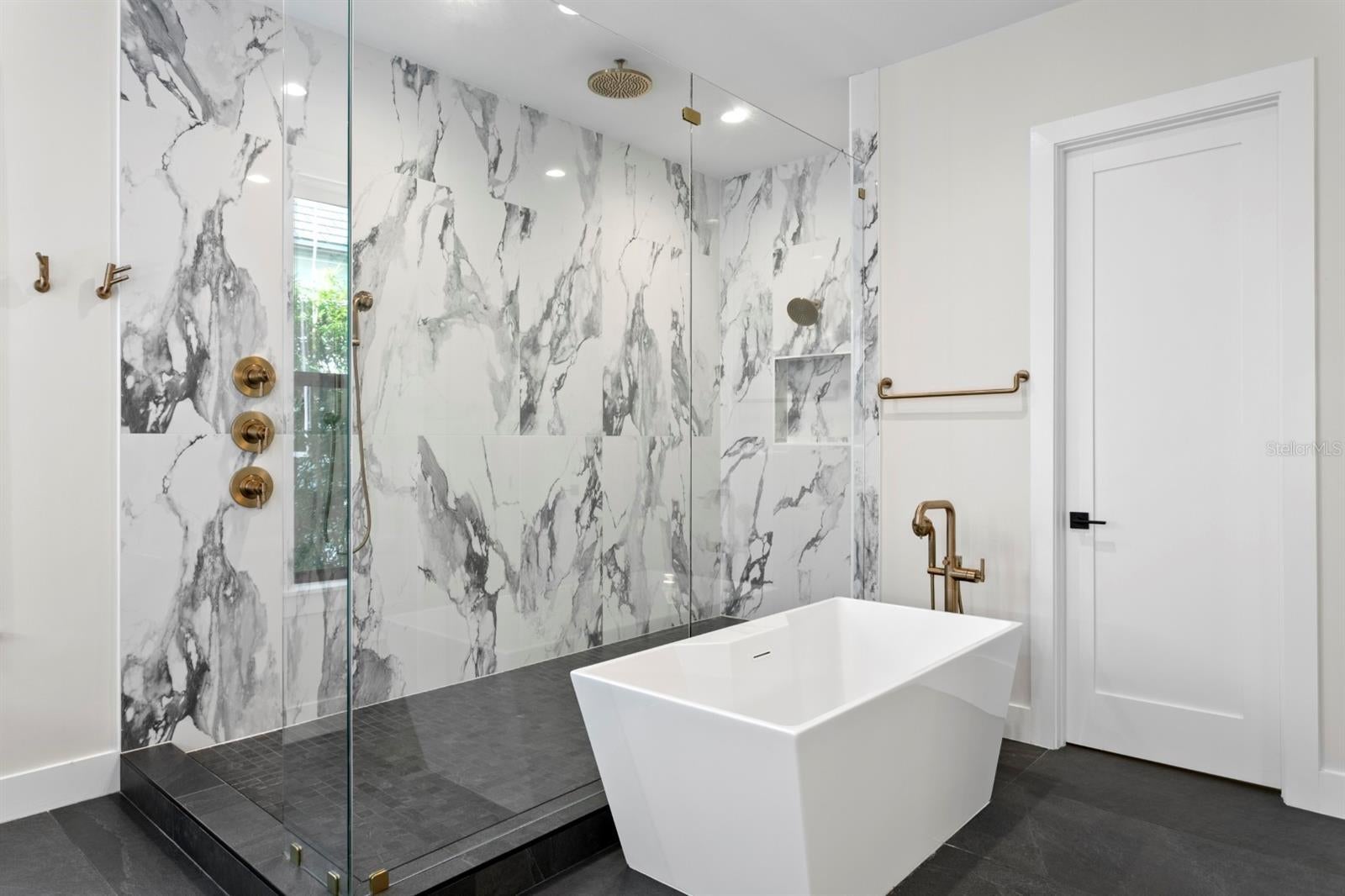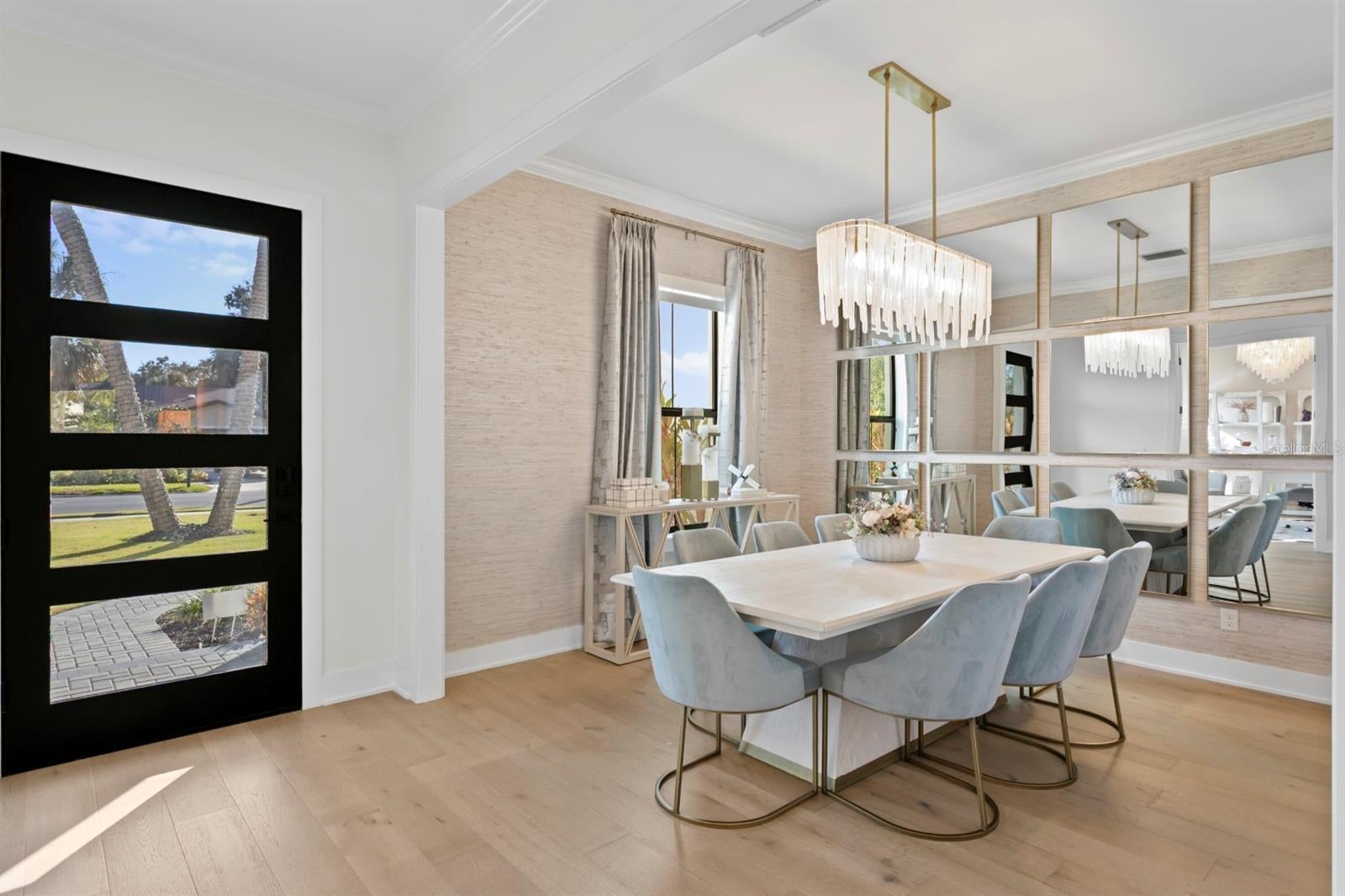 Built in 2022 by Momentum Homes, this residence is ideally located in highly sought-after Swann Estates on a 71 x 134 lot in Flood Zone X (no flood insurance required) and zoned for A-rated Grady, Coleman, and Plant schools. A professional interior designer thoughtfully curated the first floor and primary suite, creating elevated, cohesive spaces that are both beautiful and functional - offering a significant upgrade and sparing buyers the time and expense of designing and furnishing these key living areas. Custom wallpaper, designer lighting, millwork, and carefully selected finishes are seamlessly integrated throughout. This thoughtfully designed, all-block home with impact glass throughout offers 5 bedrooms, 4.5 bathrooms, and 4,532 square feet, including a first-floor bedroom and a dedicated home office. The open-concept living spaces are anchored by a gas fireplace and flow seamlessly into the chef's kitchen, showcasing upgraded Thermador appliances, quartzite countertops and backsplash, custom cabinetry, and a butler's pantry, with direct connection to the formal dining room. A sun-filled breakfast nook provides an inviting space for casual dining. The primary suite is a true retreat, highlighted by a spectacular custom walk-in closet with a large center island. The spa-inspired en suite features a large walk-in shower, separate soaking tub, dual sinks, and LED touch mirrors. Outdoor living is exceptional, featuring a covered lanai with a fully equipped outdoor kitchen, resort-style pool, and a private backyard framed by mature landscaping. Additional highlights include a functional mudroom, thoughtful storage throughout, and a layout that reflects exceptional build quality and attention to detail. Beautifully built and impeccably finished.