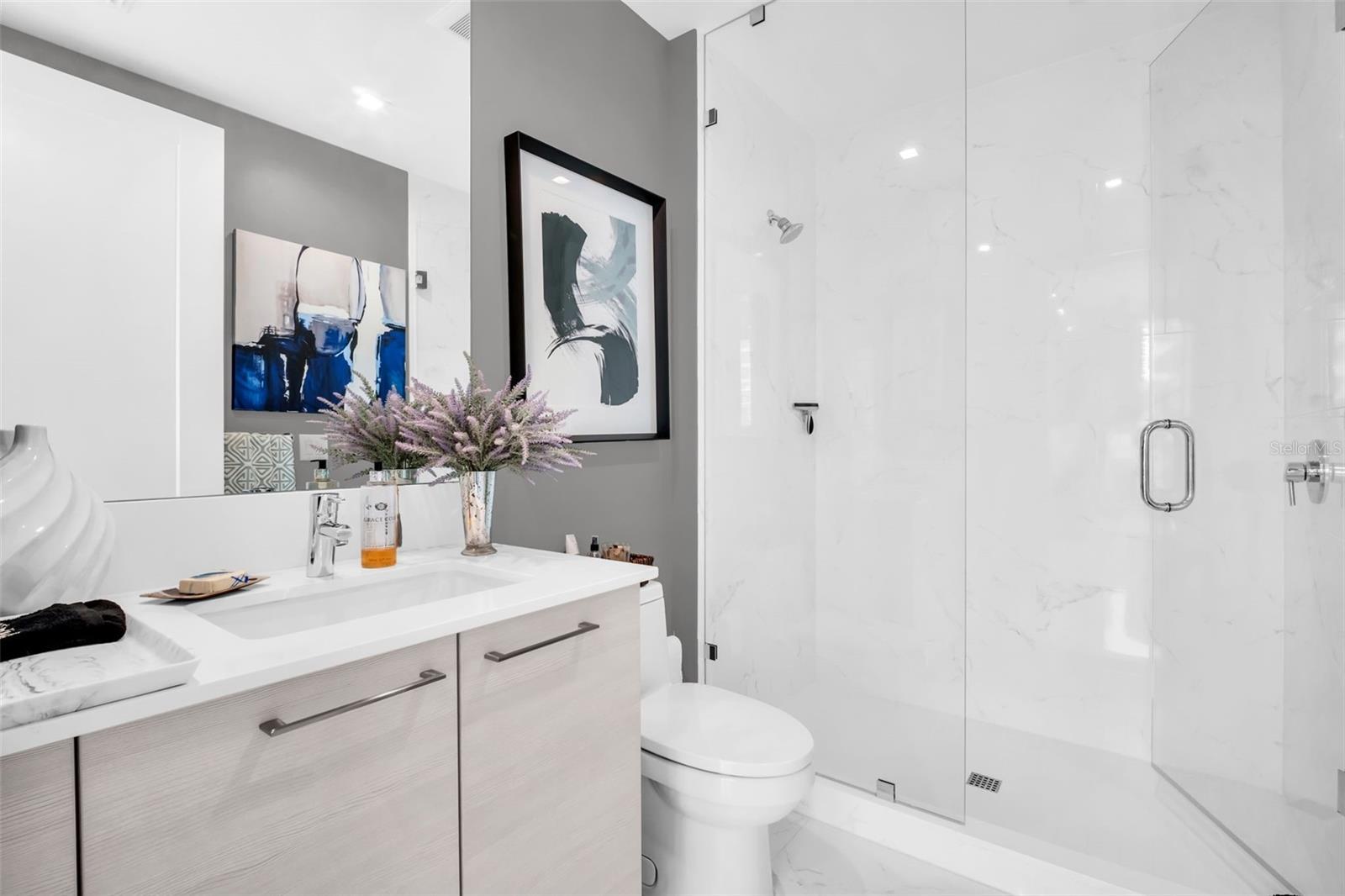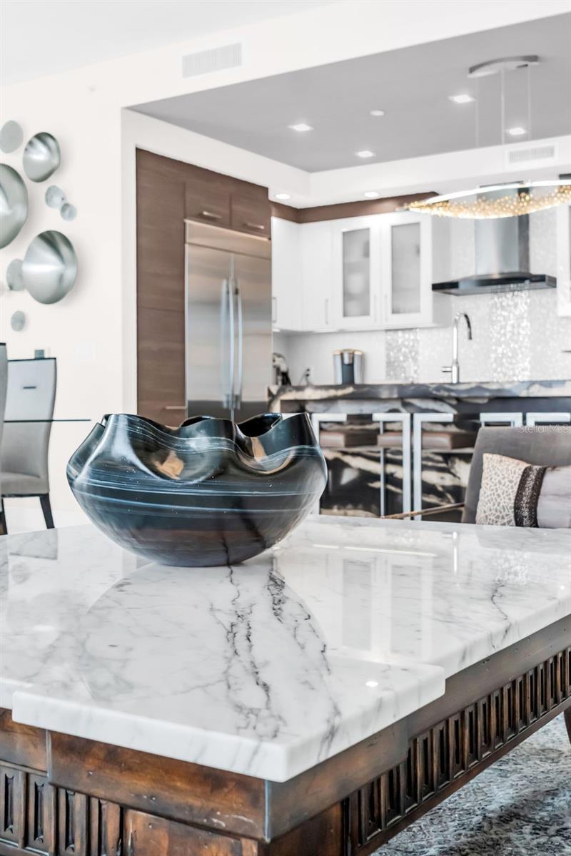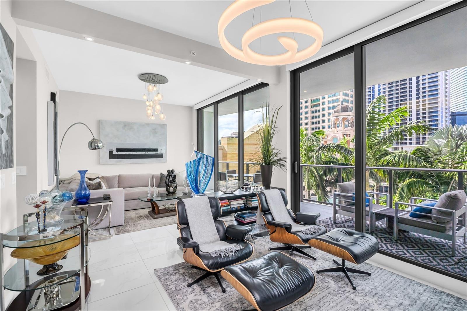 Beyond exquisite, this fully furnished downtown luxury residence at One St. Petersburg was an expansive 3-bed, 3.5-bath + den home with 2,475 interior square feet and three private terraces offering unobstructed views of city and water was reimagined by opening up a guest bedroom to the den and creating an unbelievably large bonus room with views. This bonus room adds so much to the livability of the condo. While the great room offers a perfect place for entertainment, the bonus room adds a more serene environment. Picture yourself stepping into a world of refined urban living where light and design converge. The open-plan living space is beautifully composed with porcelain tile flooring and soaring ceilings that create a bright, airy ambiance - perfect for entertaining or relaxed everyday living experiencing some of the most gorgeous sunrises. The floor-to-ceiling windows frame dramatic views that spill onto the generous terraces, expanding your living space and delivering indoor-outdoor Florida lifestyle at its best. The bonus room, opposite the great room, truly provides a secondary living space where comfort and relaxation merge while enjoying sunsets and the pool view. The gourmet kitchen features sleek, contemporary cabinetry contrasted with luxe countertops and designer tile backsplashes. High-end stainless appliances and a spacious island provide both function and a striking focal point for culinary experiences. Elegant lighting fixtures and refined finishes throughout elevate every room with a sense of sophistication and warmth. The primary suite is a private retreat with abundant natural light, generous closet space, and a spa-inspired bath featuring designer fixtures and clean modern lines. An additional ensuite bedroom created as a versatile den offers guests a comfortable sleeping option. Unwind on not just one, but three private terraces - perfect for morning coffee, evening sunsets, or al fresco dining against the backdrop of downtown St. Pete's vibrant skyline and waterfront. You will find one oversized terrace directly off the great room, one of the bonus rooms, and another private terrace off the owner's suite. Residents enjoy the unmatched One St. Petersburg lifestyle with resort-level amenities, including a dramatic 30' lobby, multiple owners' lounges, a private bar, a full fitness center, pool and cabanas, concierge services, and 24/7 security - all just steps from world-class dining, entertainment, and the waterfront.