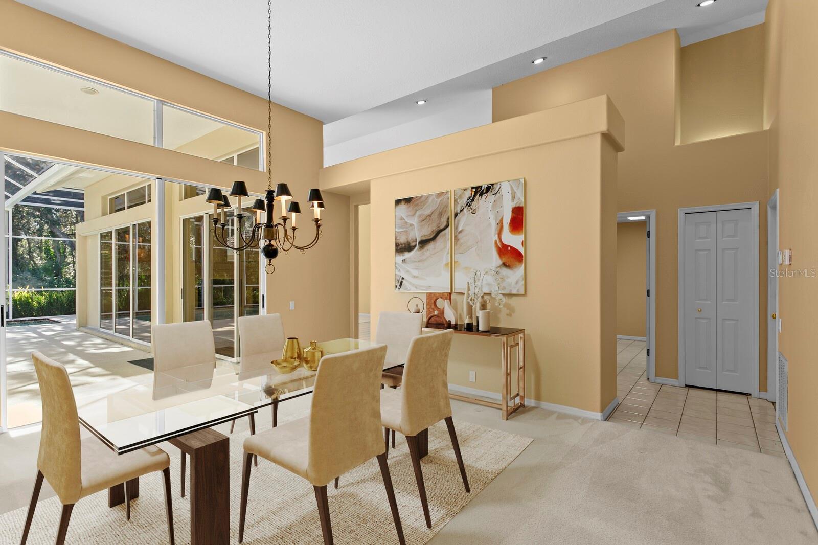 Welcome to an exceptional custom built home perfectly positioned on an oversized lot with a sweeping conservation backdrop nestled within the gated village of Westover in Tampa Palms. This well maintained residence showcases a dramatic open architectural design generous proportions and a flexible floor plan that supports today’s lifestyle. Custom built by Arthur Rutenberg Homes this three way split plan offers five bedrooms four full bathrooms a sitting room off the primary retreat and a three car garage. Lush landscaping and a charming garden gate create inviting curb appeal leading to the covered front porch. Inside soaring ceilings make an immediate impression as the formal living and dining rooms unfold separated by a custom half wall with built in cabinetry. Both spaces feature large glass sliders with direct views of the pool and peaceful conservation beyond filling the home with abundant natural light. Just off the formal areas is a spacious fifth bedroom, which has it's own private full bathroom but does not have a closet which makes it ideal for use as a home office, flex space, or guest room. The expansive chef’s kitchen offers custom cabinetry granite countertops stainless steel appliances a newer dishwasher ample pantry storage a large center island with breakfast bar and space for a breakfast table all overlooking the pool. The kitchen opens to the impressive family room featuring dramatic vaulted ceilings custom built in cabinetry a fireplace framed by oversized windows pocket sliding glass doors with transom accents and a wet bar perfect for entertaining. The primary suite is a private retreat with high ceilings abundant natural light a spacious sitting room and direct access to the pool and lanai. The oversized primary bathroom includes a private water closet a walk in shower with dual shower heads and built in bench a glass block wall soaking tub and a large walk in closet with a ceiling fan. Secondary bedrooms are generously sized and include built in cabinetry. Two bedrooms share a Jack and Jill bathroom while the rear bedroom offers an en suite bath with private pool access. The fifth bedroom does not have a closet and is currently used as a home office. The oversized screened lanai features a large covered area for year round Florida living and overlooks quiet conservation. The custom pool was thoughtfully designed and includes a lap swimming lane. Additional features include a three car garage tile roof replaced in 2015 new driveway in 2021 new air handler in 2021 and a new dishwasher in 2023. Yes you can have it all Walking distance to Publix community parks Tampa Palms Golf and Country Club and A rated schools with USF and major hospitals nearby this exceptional home offers both privacy and convenience in one of Tampa Palms’ most desirable gated villages.