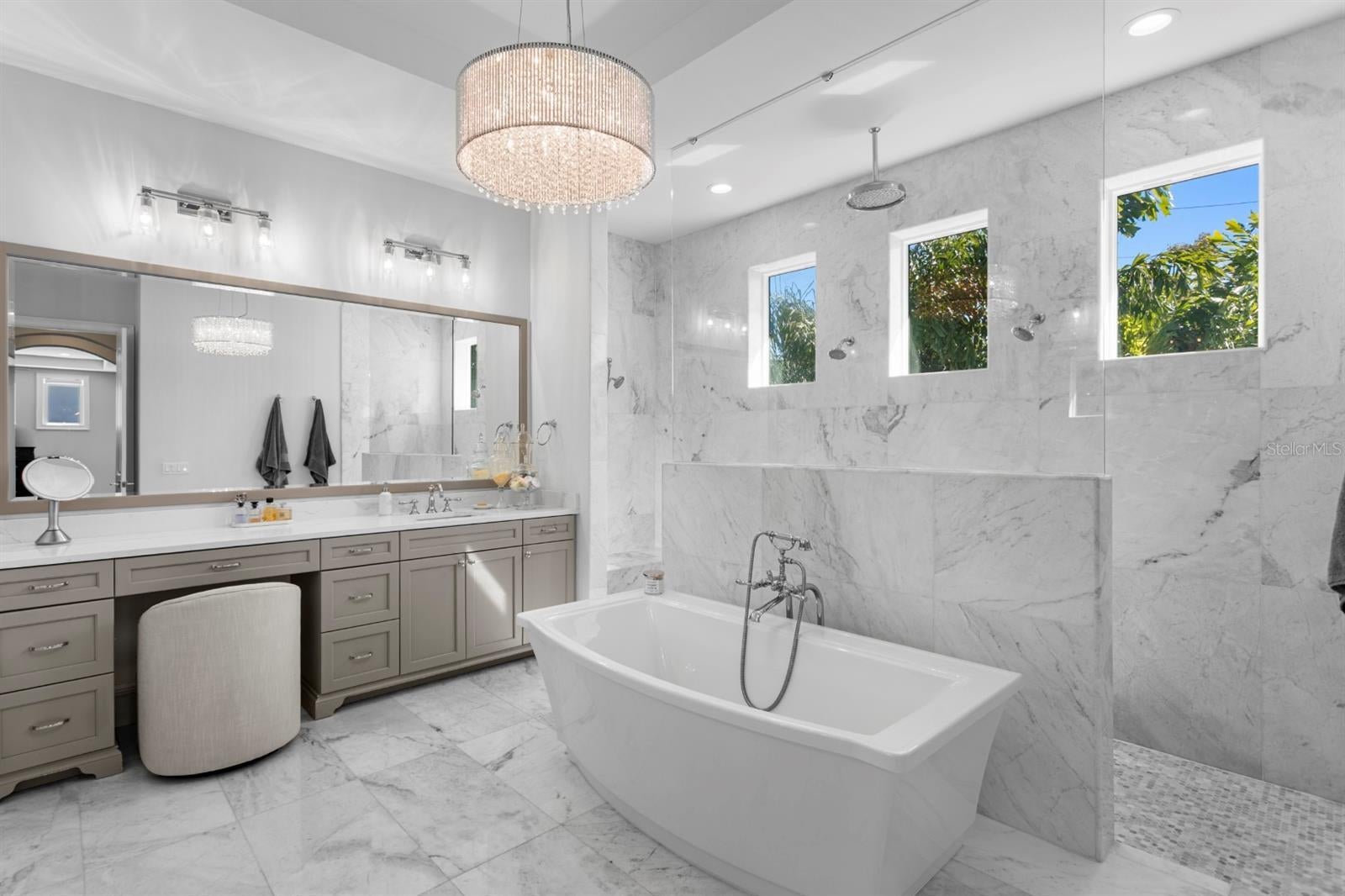 A custom-built home in the heart of Sunset Park, crafted for seamless indoor - outdoor living. From the kitchen, formal rooms, and main living areas, walls of windows frame lush landscaping and a true backyard oasis - complete privacy, resort-style ambiance, and multiple spaces to relax or entertain. The thoughtful floor plan offers 5 en-suite bedrooms, including a first-floor guest suite, 5.5 baths, a dedicated office, and beautifully scaled formal living and dining rooms. The chef-appointed kitchen features double islands, premium appliances, and exceptional storage. Throughout the home, elevated details shine: hardwood floors, designer lighting, and custom millwork that reflect thoughtful craftsmanship at every turn. Set on a 108x130 lot (14,040 sq ft) on a quiet cul-de-sac and zoned for A-rated Mabry, Coleman & Plant, this 5,570+ SF residence delivers luxury, privacy, and an unbeatable South Tampa lifestyle.