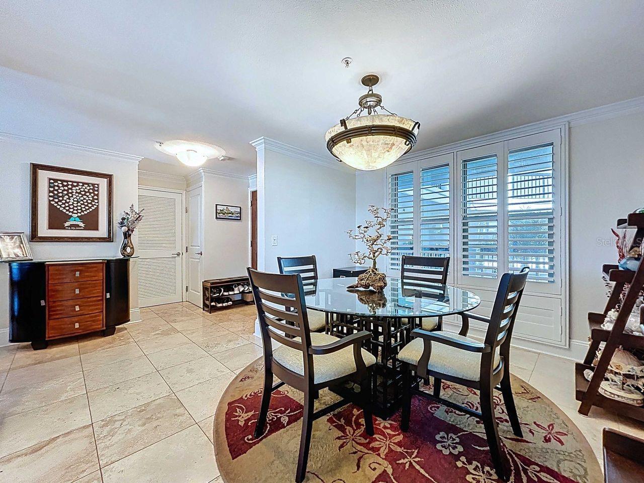 - Ceiling Fans(s), Crown Molding, Eat-in Kitchen, Kitchen/Family Room Combo, Primary Bedroom Main Floor, Solid Surface Counters, Thermostat, Walk-In Closet(s), Window Treatments