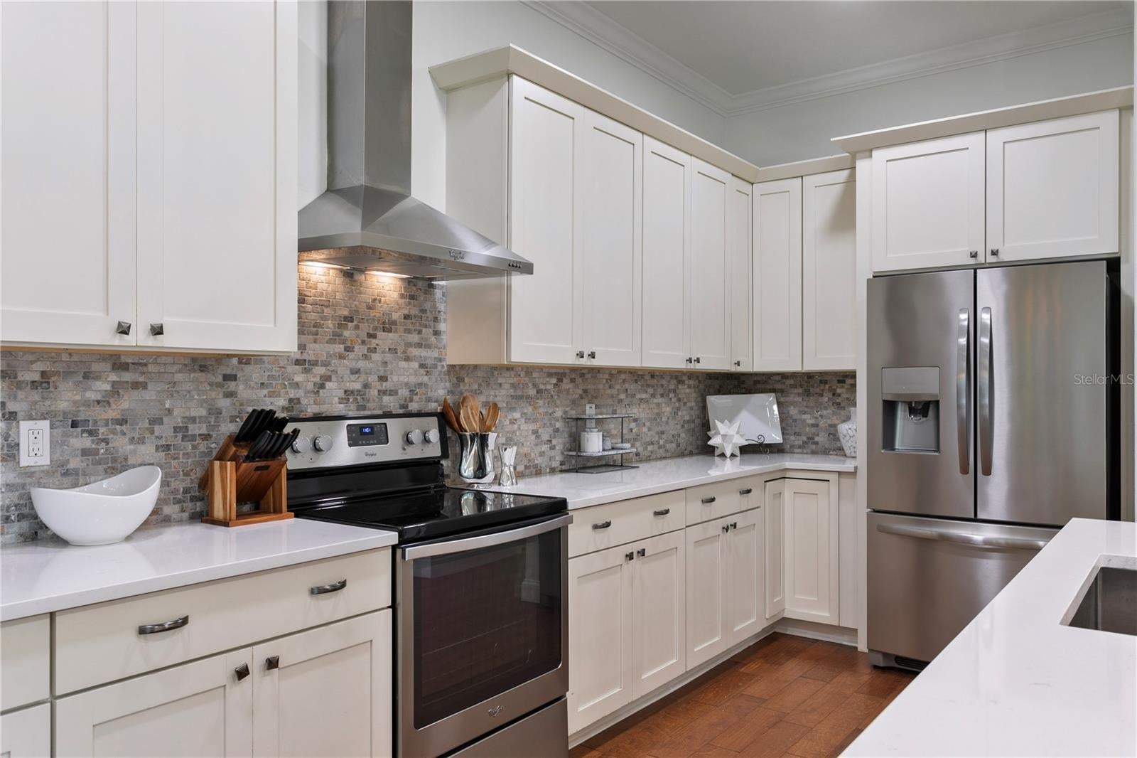 - Ceiling Fans(s), Coffered Ceiling(s), Crown Molding, High Ceilings, Kitchen/Family Room Combo, Solid Wood Cabinets, Stone Counters, Walk-In Closet(s), Window Treatments