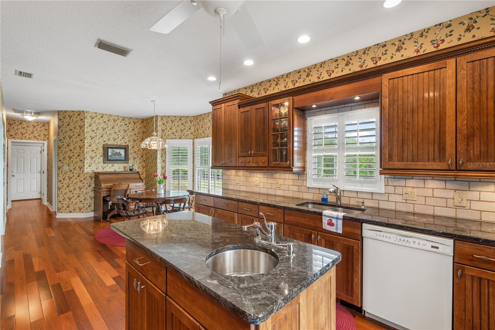 Welcome to this one of a kind, spacious country estate with old Florida charm. As you enter the property through an electronic entrance gate, you will pass by the large stock pond and gradually make your way through the private, wooded drive, which borders over 300 acres of protected Hernando County wildlife and preserved land with numerous hiking trails and natural amenities, all within minutes from this sprawling property. Entering this impeccably maintained 3 bedroom, 2 ½ bath home, there are dramatic cathedral ceilings in Entry, Dining & Living rooms with a large flagstone fireplace and hearth. The eat in kitchen is a chef’s dream, with floor-to-ceiling custom cabinetry, bay windows and granite countertops. A spacious center island gives you additional work and eating space, with second sink and a window seat overlooking the front pasture. The oversized Primary bedroom has two large, custom walk-in closets, a walk-out, screened patio with access to the outside and attached is a natural-stone tiled bathroom with a walk-in shower, granite countertops and double sinks with separate vanities. There is also a dedicated home office, a large family room with skylights and a separate laundry room with washer/dryer, mud sink and natural-stone tiled floor. Other upgrades include ceiling fans in all rooms and on the porch and Bimini shutters and custom draperies throughout the home. In addition to the attached 2-car garage, other outstanding amenities include a screened porch (1540 sq. ft.), a large barn (1152 sq. ft.) and a newly renovated in-ground pool (640 sq. ft.) with sun-shelf and enclosure. There is also a detached 4-car garage connected to a finished workshop (1925 sq. ft.) - Perfect for avid hobbyists or a future large guest suite. This space includes a ½ bath and a fully-decked, standing-room attic which runs the length of the structure. High & dry location, zoned for agriculture, this all could be your perfect retreat, working farm or just about anything you could imagine!. Hurry and make an appointment to see this beautiful property before it's gone!