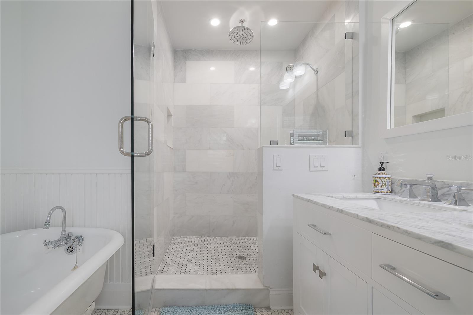 Just 50 feet off iconic Bayshore Boulevard, lies an exquisite, meticulously renovated historic home that exemplifies modern luxury living in South Tampa. This poolside sanctuary boasting four bedrooms, three baths, and amazing new tile flooring that speaks to the discerning owner. As you approach, you are greeted with an extended covered porch, outfitted with the crown jewel of bungalows, the porch swing which faces Bayshore. Stepping inside, you'll be greeted by an open floor plan that seamlessly merges the living areas with a kitchen that can be described as a visual masterpiece, highlighted with the perfect hue of natural light while maintaining privacy. Adorned with opulent white marble veined countertops and gleaming stainless steel appliances featuring a new top of the line refrigerator, built in stove, wine fridge and microwave, this kitchen is a testament to both style and functionality. An enchanting revelation awaits as you enter the living room, where a custom fire and ice themed gas fireplace takes center stage, radiating warmth and charm throughout the space. Beneath your feet, the refinished high end resplendent porcelain tile, adding a touch of timeless elegance to the surroundings. The Florida room, a zenful haven, opens to reveal a vista of the sprawling porch and inviting pool area, enveloped by lush tropical landscaping serving as nature's canvas, harmonizing seamlessly with the nearby waterfront of Tampa Bay. The balcony overlooking the pool area is outfitted with a chef cook station, equipped with a gas grill, cooktop, fridge and a seating area for your guests, enhancing the Floridian experience. There is also a garage that can be converted to a pool house back as well. Discover unparalleled serenity in the expansive master suite, where space abounds for a comfortable sitting area. The modern primary bathroom is adorned with marble tile walls with an indulgent rain shower, exquisite dual sink countertops, and an iconic historic original clawfoot tub preserving the home's timeless charm. Ascend to the second floor, and you will find the final fourth bedroom, overlooking the pool is a testament to modern craftsmanship and ingenuity and the perfect getaway for your visiting guests. This home is a posh masterpiece sitting in the heart of South Tampa. It is a perfectly balanced fusion of modern and classic elegance. Your opportunity to immerse yourself in South Tampa luxury living has arrived, and it awaits your presence. This home is more than a must-see; it is an invitation to live your dreams in a historic bungalow with the view of Bayshore Boulevard. Live the South Tampa Lifestyle with everything your heart could desire from the pool to the fireplace, this house has it all.