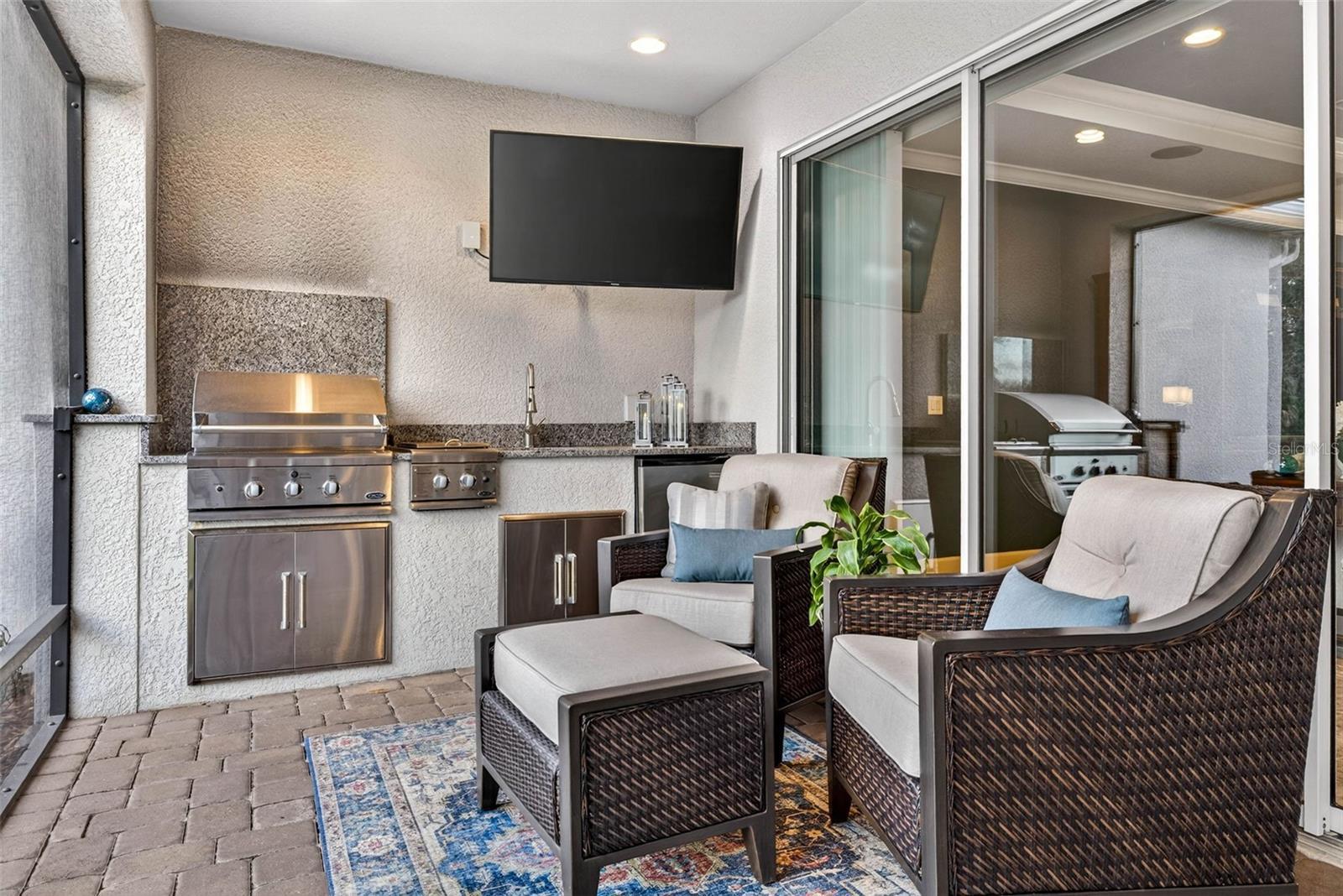 Welcome HOME to luxury living in the gated community of Arbor Woods. NO CDD - saving thousands of $$$ per year! Wiregrass Ranch School Zone!!! This elegant 4-bed, 3.5-bath, 3,211 sq ft home showcases an oversized, open floor plan enhanced by tray ceilings, detailed crown molding, custom designer paint, wainscoting, and high-end finishes throughout. The home was a Custom Build to be a Model replica of the Windover III by Taylor Morrison. A grand foyer leads to a formal dining room and a sophisticated office with French doors, framed by architectural archways and rich accent walls. The spacious great room flows seamlessly into the gourmet kitchen and out to a screened in, oversized lanai fully appointed outdoor kitchen with natural gas grill, separate burners, sink and beverage fridge. All overlooking a serene private pond & conservation. Premium tile flooring, curated lighting, whole home crown molding, and beautifully coordinated décor elevate every space. The generous floor plan has plenty of room for everyone, with a spacious Bonus room and full bath with Lania access – perfect for a future pool. A fully integrated Surround Sound, and Flat Screen Televisions (all convey with purchase) is zoned for ultimate entertainment. This Taylor Morrison home is thoughtfully designed for multi-generational/family living with a split wing floor plan. Traditional features like a Jack & Jill bathroom, large closets, Butlers Pantry and nicely appointed Laundry room as well as a tandem 3 car garage round out the homes incredible design. Enjoy gorgeous Florida sunsets from your covered front porch, the community pool and playground is just steps away from your door. Located in the top-rated Wiregrass school Zone, this home blends timeless design with upscale Florida living. Close to everything Wesley Chapel has to offer with access to I-75 and Tampa’s Premium Outlets, The Shops at Wiregrass and three Hospitals all within 3 miles away. The Gulf Coast Beaches and Disney World less than an hours drive.