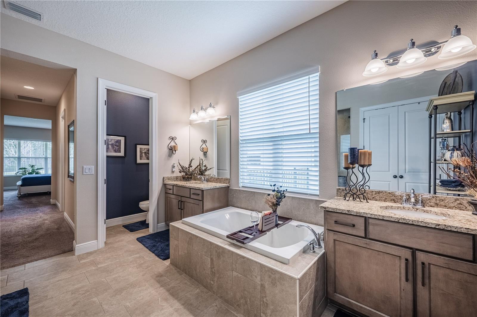 PRICE REDUCTION: Experience Luxury Living in the Heart of Bexley - Step into your dream home, a breathtaking 2022-built Cardel property where stunning water and conservation views create a picturesque backdrop to everyday life. Designed to blend elegance with functionality, this home welcomes you with an expansive open floor plan and soaring 12-foot ceilings, setting the stage for both relaxation and entertaining. At the heart of the home, the chef’s kitchen is a masterpiece of design, featuring stacked solid wood cabinetry, exquisite granite countertops, a stylish tile backsplash, and a large central island illuminated by beautiful pendant lighting. Built-in stainless-steel appliances, a gas cooktop, and a spacious pantry ensure effortless meal preparation, while the seamless flow into the great room, breakfast nook, and formal dining area makes hosting gatherings a delight. The entryway and dining room exude sophistication with coffered ceilings and elegant board and batten wall accents, while ceramic flooring throughout the main living spaces enhances the home’s refined aesthetic. A dedicated office with French doors near the front entry provides a quiet and functional space, ideal for working from home or personal projects. This exceptional home boasts two luxurious master suites, each with oversized windows that showcase breathtaking serene views. The primary master suite features two custom walk-in closets and a spa-inspired ensuite with separate vanities, a grand walk-in shower, a tile-enclosed soaker tub, solid wood cabinetry, and granite countertops, offering a perfect balance of elegance and relaxation. The secondary master suite provides an equally impressive private sanctuary, complete with a spacious walk-in closet and a second spa-inspired ensuite featuring a generous walk-in shower, solid wood cabinetry, and granite countertops. Two additional bedrooms shares a Jack-and-Jill bathroom with solid wood cabinetry and granite countertops. Extended open lanai with upgraded pavers, gas and water line hookup, awaits the creation of your ideal outdoor kitchen. The panoramic views of the surrounding natural landscape perfect for enjoying Florida’s beautiful weather. The backyard is a blank canvass where you can design and build the dream pool. The laundry room is equipped with an oversized washer and dryer with pedestal bases and is pre-plumbed for a sink. This home is filled with premium upgrades, including plantation shutters, motorized shades, solid 8-foot wood doors throughout, recessed lighting, and custom stonework. The oversized three-car garage features insulated, wind-rated doors and overhead storage racks. Other features include a tankless water heater, water softener, impact-rated windows and doors, keyless garage access, a full-yard reclaimed water irrigation system, a fully fenced backyard, and hurricane shutters and security cameras. Enjoy access to resort-style amenities just a short walk or golf cart ride away - clubhouse with an on-site café, three resort-style pools, a state-of-the-art fitness center, a game room, scenic walking and biking trails, a dog park, and playgrounds. Schedule your private showing today!