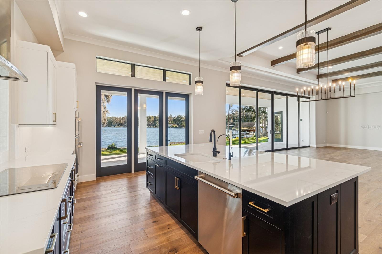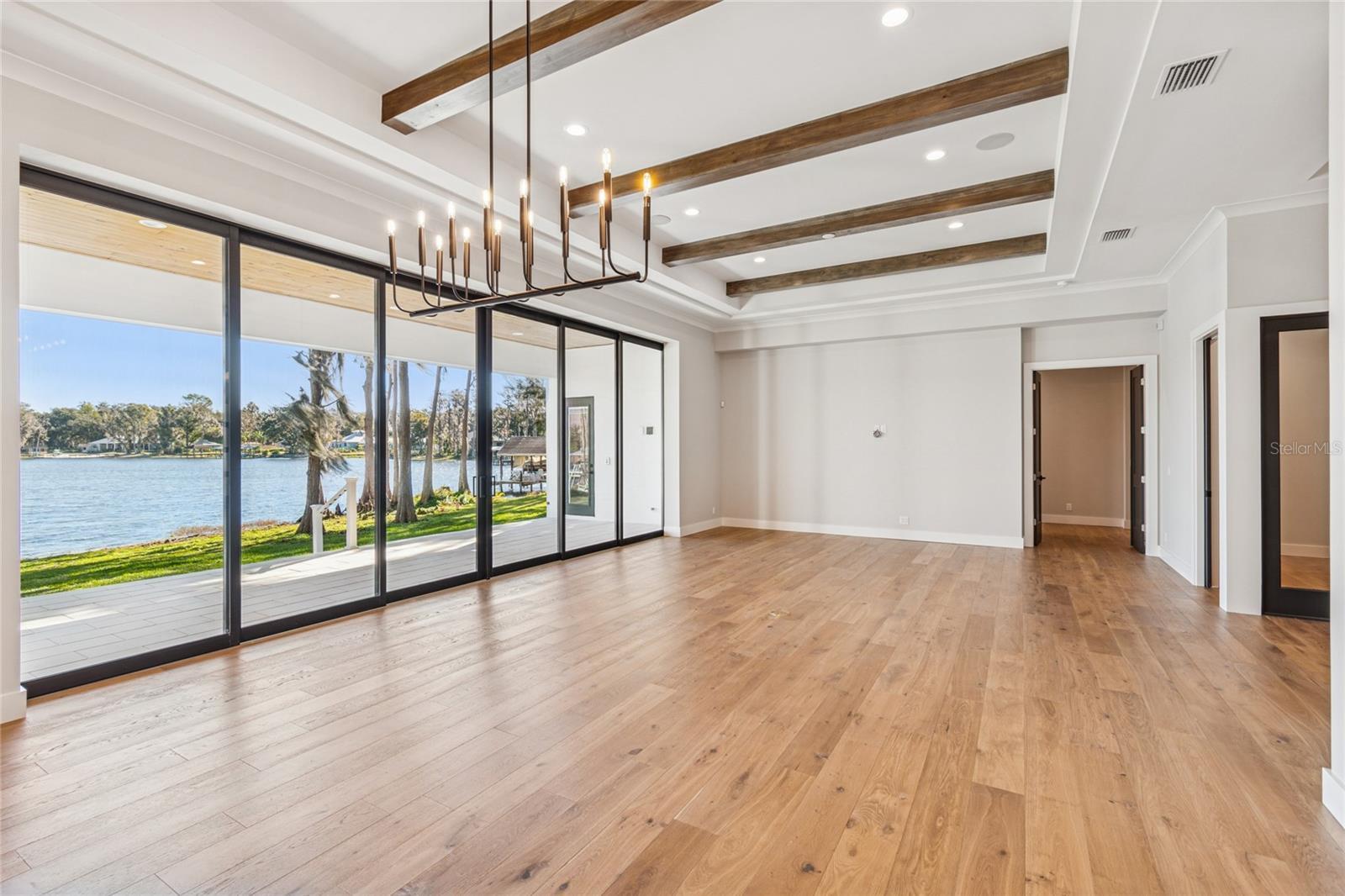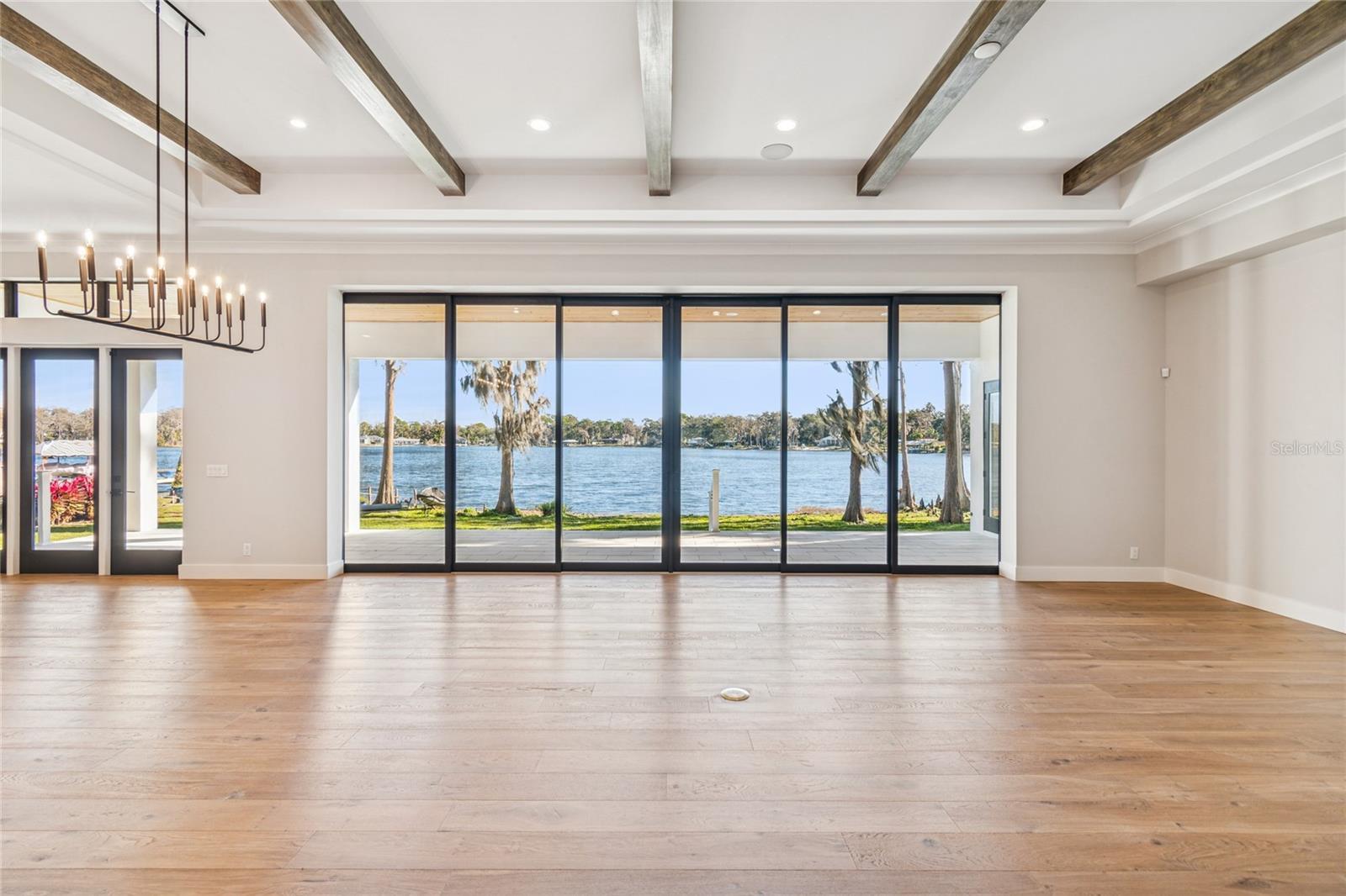 Under Construction. Welcome to one of Odessa’s rare treasures—a brand-new Arthur Rutenberg custom home, thoughtfully built by a private owner on their own half-acre homesite along the sparkling, 100-acre ski-size Lake Ann. This is not a builder-held or speculative home, but a carefully planned custom residence set within a park-like setting shaded by majestic grandfather oaks, surrounded by quiet rural beauty and luxury lakefront estates. The lake itself is private, with no public access, offering a serene and exclusive waterfront lifestyle that feels worlds away from the city, yet remains close to everything you need. With no HOA or CDD fees, you enjoy the freedom to live on your terms. Designed to frame the lake like a piece of art, the great room opens through 10-foot PGT pocket sliders that disappear into the wall, creating a seamless blend of indoor comfort and outdoor living. Morning coffee takes on new meaning when the primary suite shares uninterrupted water views, while 10- and 12-foot recessed ceilings, architectural beams, and refined finishes elevate the home’s overall feel. Every detail was carefully considered, from PGT impact windows and hurricane-rated garage doors to a whole-house water conditioning and softening system. The kitchen delivers both beauty and function with 42” cabinetry, a hidden walk-in pantry, and GE Monogram appliances, while future-ready features include generator wiring, power for a dock and outdoor kitchen, additional floor outlets, and a mini-split A/C in the garage. Outdoor living continues to impress with tongue-and-groove ceilings on the front porch and lanai and a smart low-voltage connectivity package already in place. With an anticipated completion date of January 26, 2026, this exceptional lakefront residence offers a rare opportunity to begin the next chapter surrounded by natural beauty and Odessa’s quiet, timeless charm. A truly rare offering of luxury new construction on a private ski lake—without HOA or CDD restrictions.