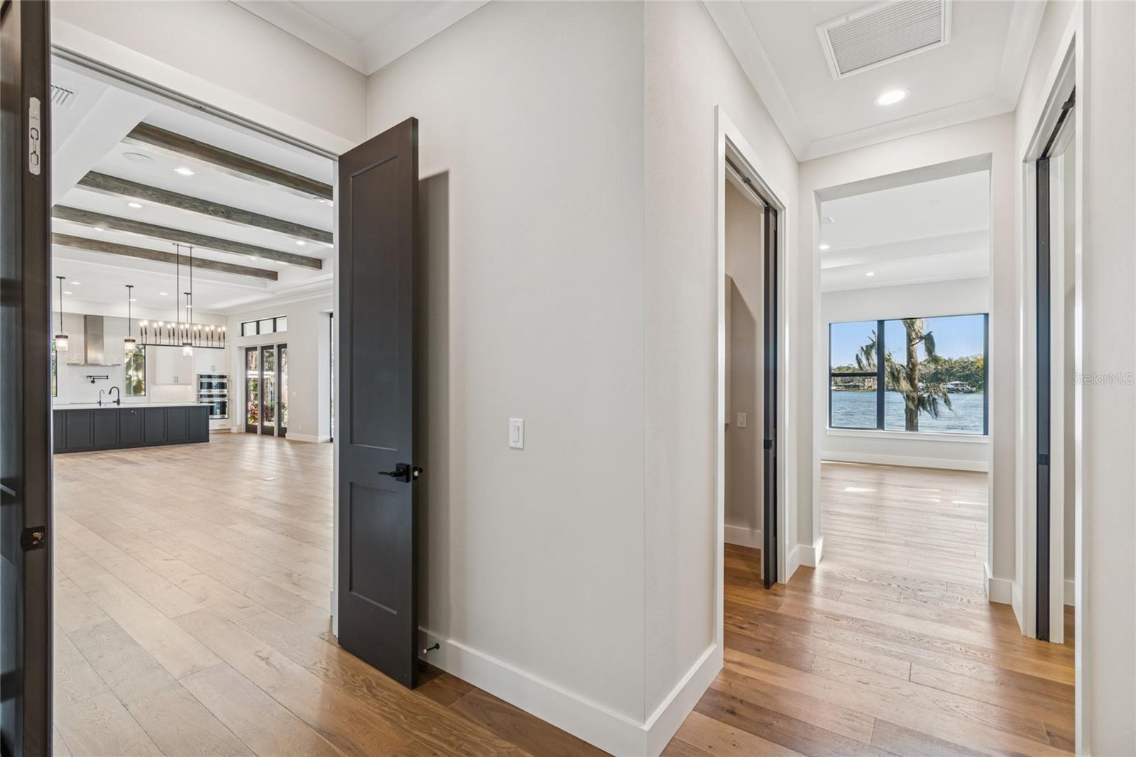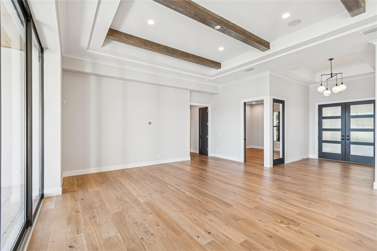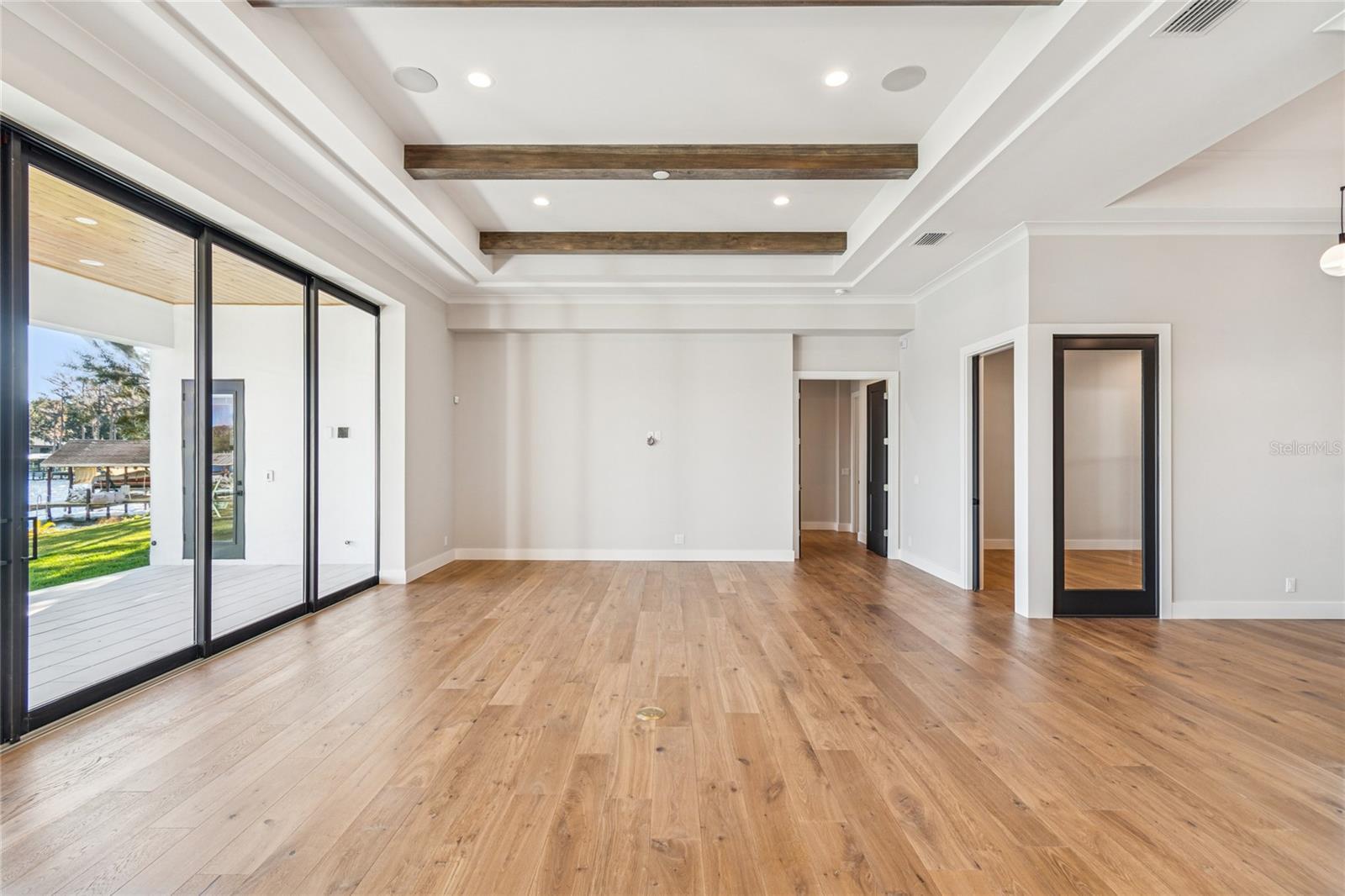 Under Construction. Welcome to one of Odessa’s rare treasures—a brand-new Arthur Rutenberg custom home, thoughtfully built by a private owner on their own half-acre homesite along the sparkling, 100-acre ski-size Lake Ann. This is not a builder-held or speculative home, but a carefully planned custom residence set within a park-like setting shaded by majestic grandfather oaks, surrounded by quiet rural beauty and luxury lakefront estates. The lake itself is private, with no public access, offering a serene and exclusive waterfront lifestyle that feels worlds away from the city, yet remains close to everything you need. With no HOA or CDD fees, you enjoy the freedom to live on your terms. Designed to frame the lake like a piece of art, the great room opens through 10-foot PGT pocket sliders that disappear into the wall, creating a seamless blend of indoor comfort and outdoor living. Morning coffee takes on new meaning when the primary suite shares uninterrupted water views, while 10- and 12-foot recessed ceilings, architectural beams, and refined finishes elevate the home’s overall feel. Every detail was carefully considered, from PGT impact windows and hurricane-rated garage doors to a whole-house water conditioning and softening system. The kitchen delivers both beauty and function with 42” cabinetry, a hidden walk-in pantry, and GE Monogram appliances, while future-ready features include generator wiring, power for a dock and outdoor kitchen, additional floor outlets, and a mini-split A/C in the garage. Outdoor living continues to impress with tongue-and-groove ceilings on the front porch and lanai and a smart low-voltage connectivity package already in place. With an anticipated completion date of January 26, 2026, this exceptional lakefront residence offers a rare opportunity to begin the next chapter surrounded by natural beauty and Odessa’s quiet, timeless charm. A truly rare offering of luxury new construction on a private ski lake—without HOA or CDD restrictions.