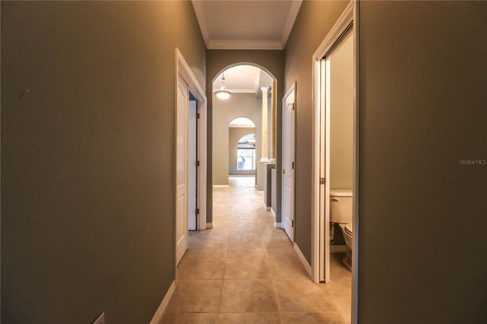 - Ceiling Fans(s), Coffered Ceiling(s), Crown Molding, Eat-in Kitchen, High Ceilings, Kitchen/Family Room Combo, L Dining, Open Floorplan, Pest Guard System, Primary Bedroom Main Floor, Solid Surface Counters, Solid Wood Cabinets, Thermostat, Tray Ceiling(s), Walk-In Closet(s), Window Treatments