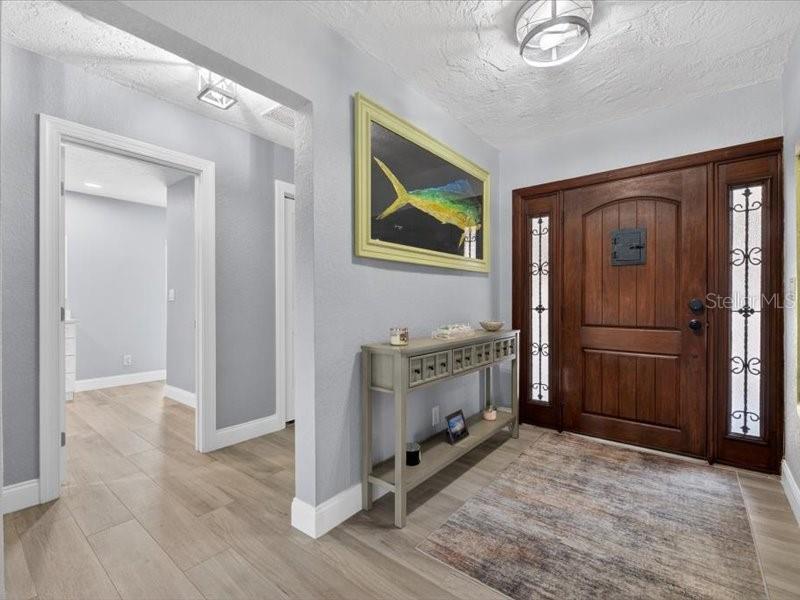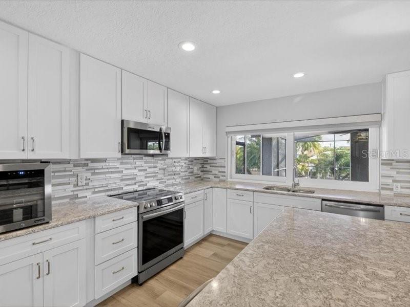 Experience the best of Florida waterfront living in this beautifully updated spacious 3-bedroom, 2-bath POOL HOME with a bonus family room (2,211sq.ft), perfectly positioned on an expansive 18,202 sq. ft lot, designed to elevate both everyday comfort and unforgettable outdoor living. Set on the water and thoughtfully upgraded throughout, this home is a true boater’s retreat with TWO NEW COMPOSITE BOAT DOCKS, a COVERED BOAT LIFT, and water and electric at the dock, ready for spontaneous sunset cruises or weekends on the bay. The outdoor living space features a newly resurfaced and tiled pool (2024) that anchors the expansive screened and covered lanai, creating a private oasis ideal for entertaining, relaxing, or enjoying waterfront views year-round. Mature landscaping, a charming courtyard, and an extra-long driveway with ample parking add to the home’s impressive curb appeal. Inside, the split floor plan offers both functionality and privacy. The light-filled living and dining rooms flow seamlessly into the entirely remodeled kitchen, featuring all stainless steel appliances (2025), new cabinetry, upgraded lighting, and new ceramic tile flooring throughout. Automatic shades in the living, dining, family room and kitchen spaces enhance comfort and style. The primary suite is a peaceful retreat with a large walk-in closet, while two generously sized secondary bedrooms share an oversized full bathroom. A bonus family room provides flexible space for lounging, entertaining, or a home office. Major improvements include a tiled roof (2017), all hurricane impact windows and sliders (2019), new interior and exterior paint, new interior doors, upgraded light fixtures, HVAC (2025), AC ducts (2023), pool pump (2025), and a full suite of smart home features controlling the A/C, thermostat, fire alarm, ceiling fans, garage doors, front door, blinds, doorbell, and cameras. This move-in-ready waterfront home blends modern upgrades with exceptional outdoor living, perfect for boating enthusiasts and anyone seeking the ultimate Florida lifestyle. No HOA or CDD fees!