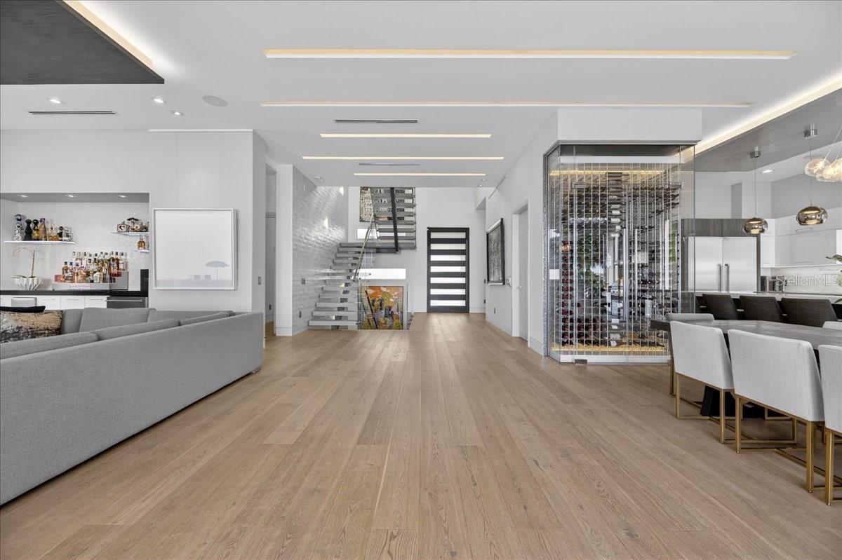- Built-in Features, Cathedral Ceiling(s), Ceiling Fans(s), Central Vaccum, Coffered Ceiling(s), Eat-in Kitchen, Elevator, High Ceilings, In Wall Pest System, Open Floorplan, PrimaryBedroom Upstairs, Sauna, Smart Home, Solid Wood Cabinets, Stone Counters, Thermostat, Walk-In Closet(s), Wet Bar, Window Treatments