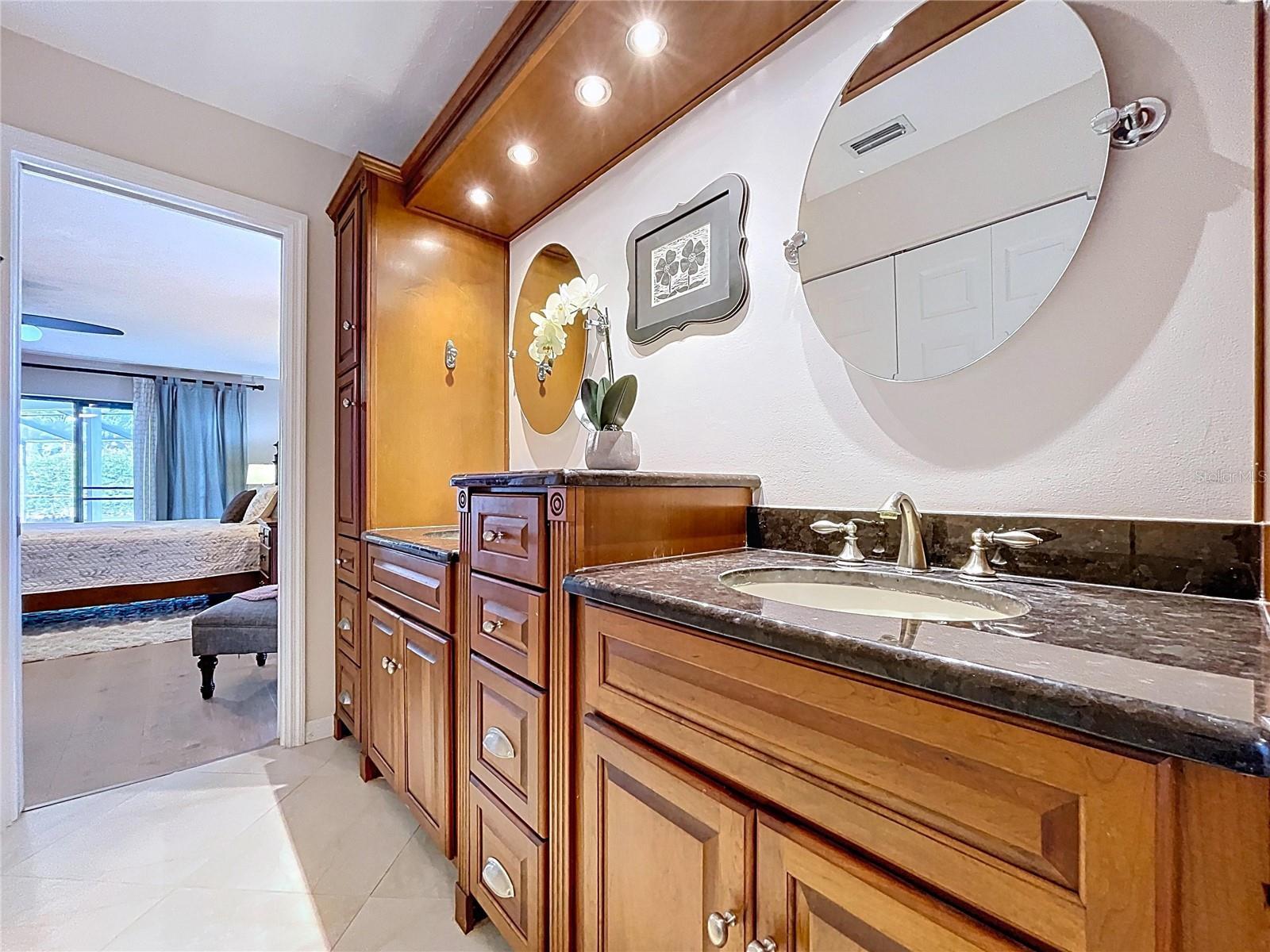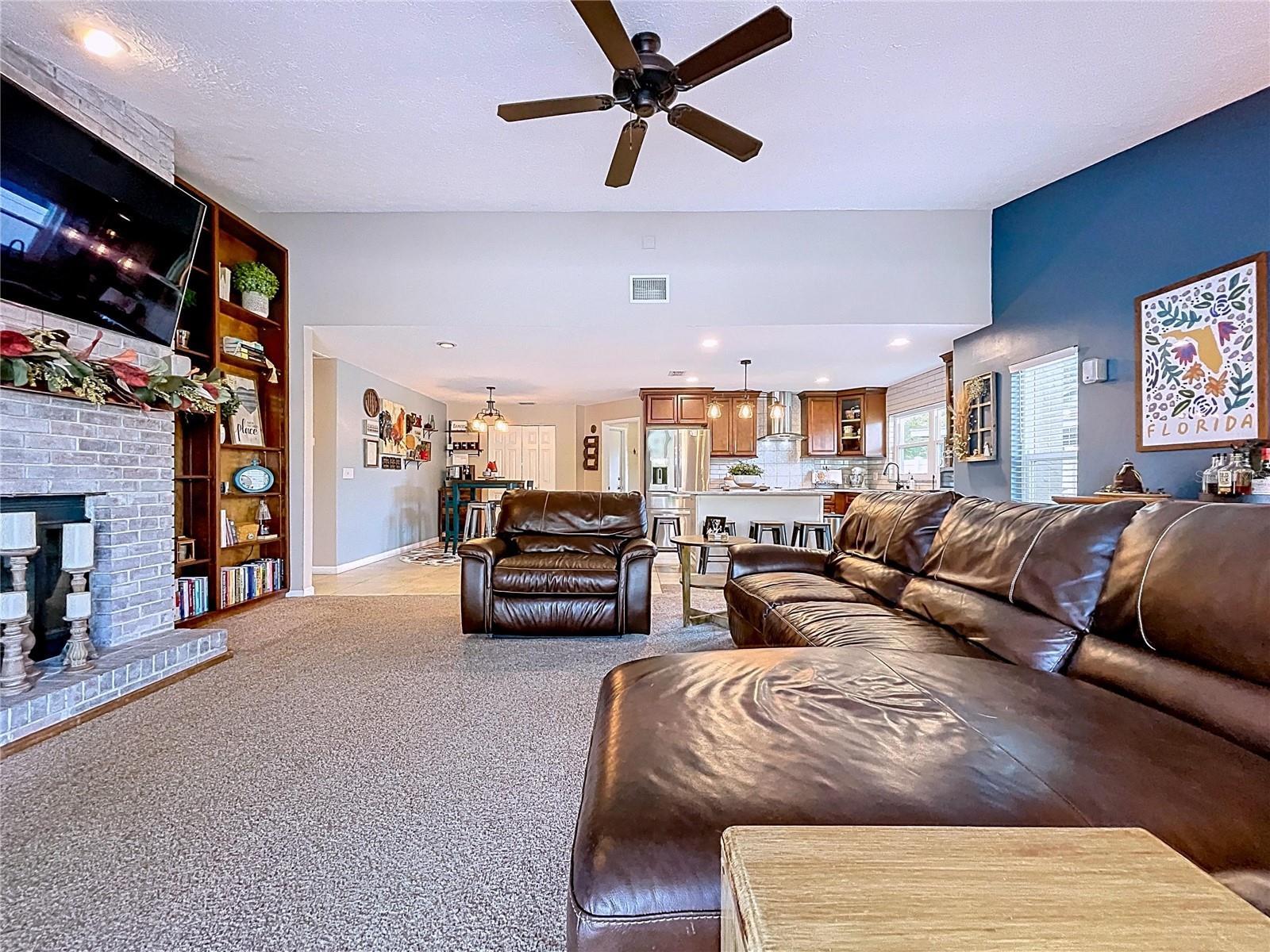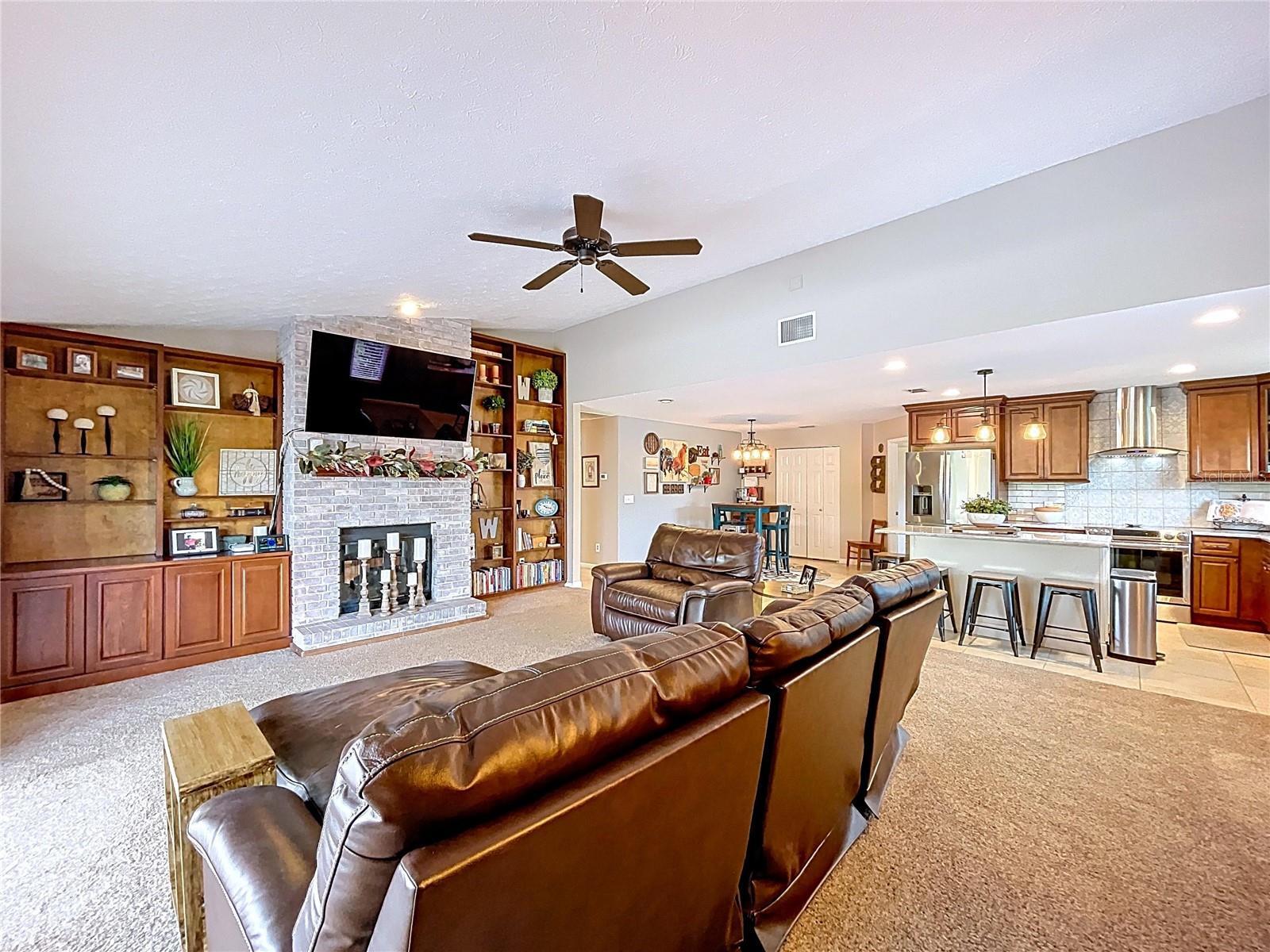 Under contract-accepting backup offers. A rare opportunity to own a meticulously updated pool home in one of the Carrollwood area’s most desirable lake-centric communities, Lake Magdalene Manors. Enjoy refined Lake Magdalene living with designer updates and a great outdoor space. Ideally positioned just one block from Lake Magdalene, this impeccably updated residence offers a sophisticated blend of timeless design, modern comfort, and exceptional indoor-outdoor living. The interior showcases a light-filled, open floor plan adorned with elegant wood-look tile flooring throughout, creating a cohesive and refined aesthetic. The chef-inspired kitchen has been beautifully renovated with premium solid surface countertops, designer backsplash, and stainless steel appliances, seamlessly connecting to the main living spaces—perfect for entertaining on any scale. A striking double-sided fireplace serves as a dramatic focal point between the living and family rooms, adding warmth and architectural distinction. Walls of sliding glass doors open from multiple rooms to the outdoor living area, blurring the line between interior comfort and exterior luxury. Thoughtful interior improvements include new air and windows (2023), ensuring both style and peace of mind. Step into your private oasis featuring a resort-style pool with spill-over spa, surrounded by an expansive covered lanai designed for both grand gatherings and quiet relaxation. Notably, the property maintains a generous backyard, offering rare space and versatility. The spa-like bathrooms have been thoughtfully redesigned with custom tilework, frameless glass shower enclosures, contemporary vanities, and granite countertops, delivering a refined, hotel-quality experience. Residents enjoy exclusive access to the Lake Magdalene community clubhouse overlooking the lake, along with tennis courts, pickleball court, and a playground. Conveniently located near major interstates, downtown Tampa, and the city’s premier dining and entertainment, this home offers the perfect balance of serenity and accessibility.