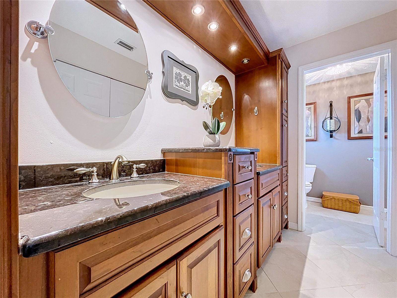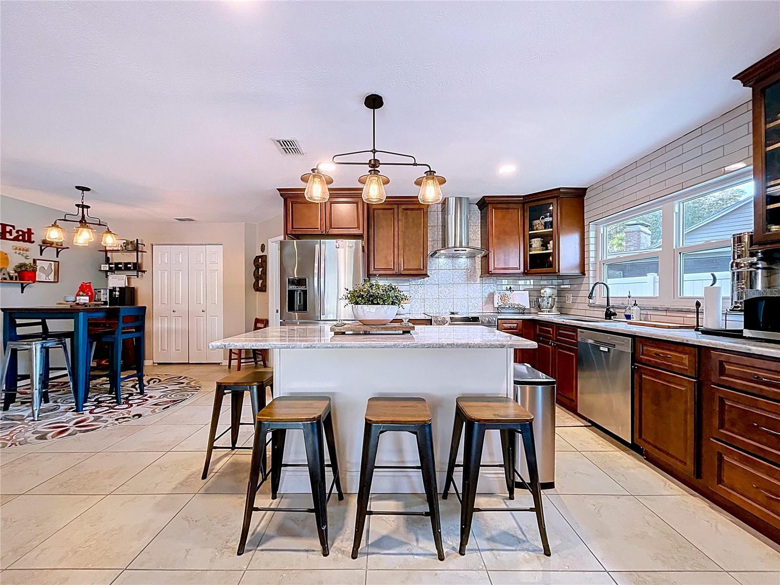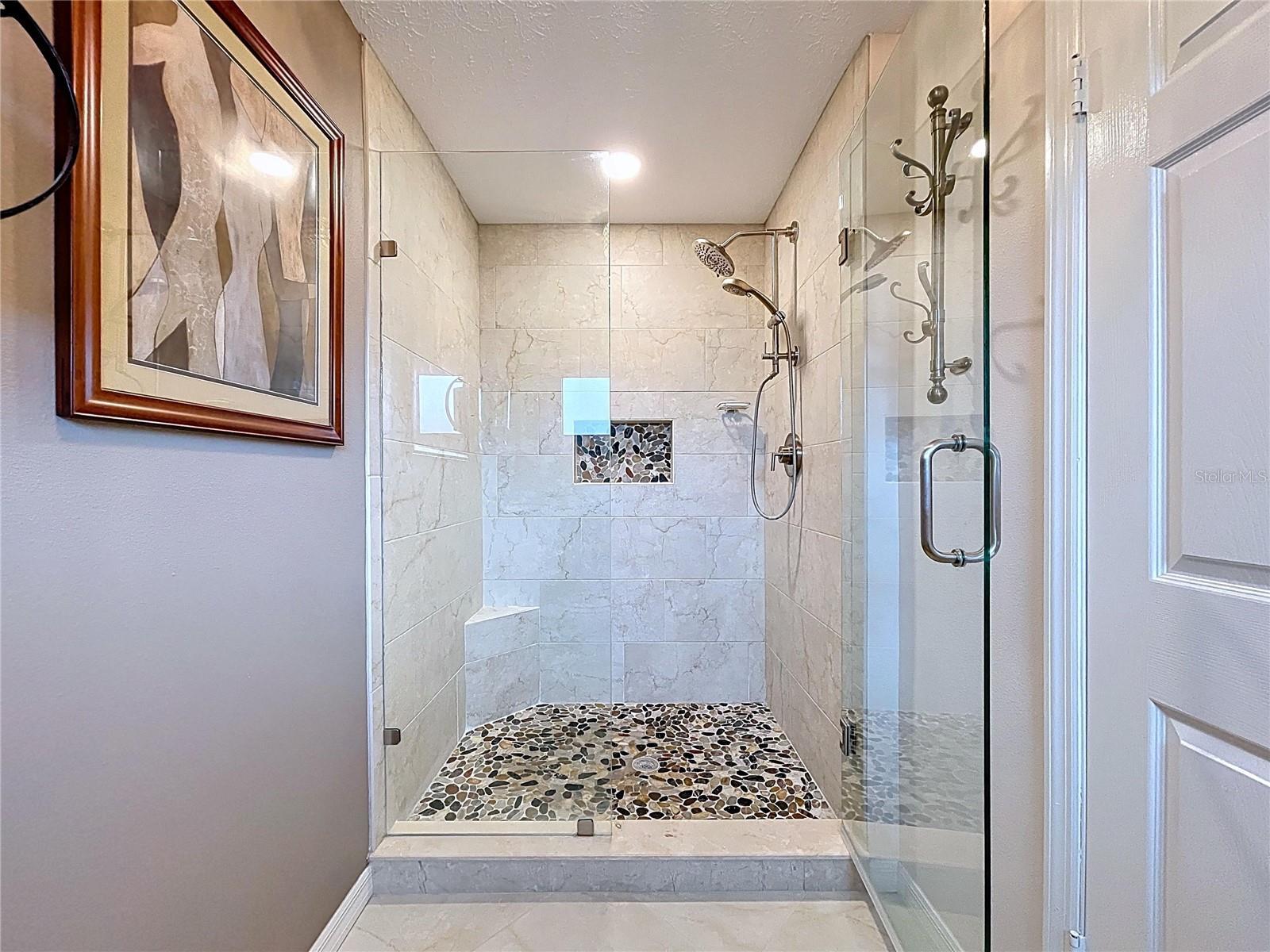 Under contract-accepting backup offers. A rare opportunity to own a meticulously updated pool home in one of the Carrollwood area’s most desirable lake-centric communities, Lake Magdalene Manors. Enjoy refined Lake Magdalene living with designer updates and a great outdoor space. Ideally positioned just one block from Lake Magdalene, this impeccably updated residence offers a sophisticated blend of timeless design, modern comfort, and exceptional indoor-outdoor living. The interior showcases a light-filled, open floor plan adorned with elegant wood-look tile flooring throughout, creating a cohesive and refined aesthetic. The chef-inspired kitchen has been beautifully renovated with premium solid surface countertops, designer backsplash, and stainless steel appliances, seamlessly connecting to the main living spaces—perfect for entertaining on any scale. A striking double-sided fireplace serves as a dramatic focal point between the living and family rooms, adding warmth and architectural distinction. Walls of sliding glass doors open from multiple rooms to the outdoor living area, blurring the line between interior comfort and exterior luxury. Thoughtful interior improvements include new air and windows (2023), ensuring both style and peace of mind. Step into your private oasis featuring a resort-style pool with spill-over spa, surrounded by an expansive covered lanai designed for both grand gatherings and quiet relaxation. Notably, the property maintains a generous backyard, offering rare space and versatility. The spa-like bathrooms have been thoughtfully redesigned with custom tilework, frameless glass shower enclosures, contemporary vanities, and granite countertops, delivering a refined, hotel-quality experience. Residents enjoy exclusive access to the Lake Magdalene community clubhouse overlooking the lake, along with tennis courts, pickleball court, and a playground. Conveniently located near major interstates, downtown Tampa, and the city’s premier dining and entertainment, this home offers the perfect balance of serenity and accessibility.