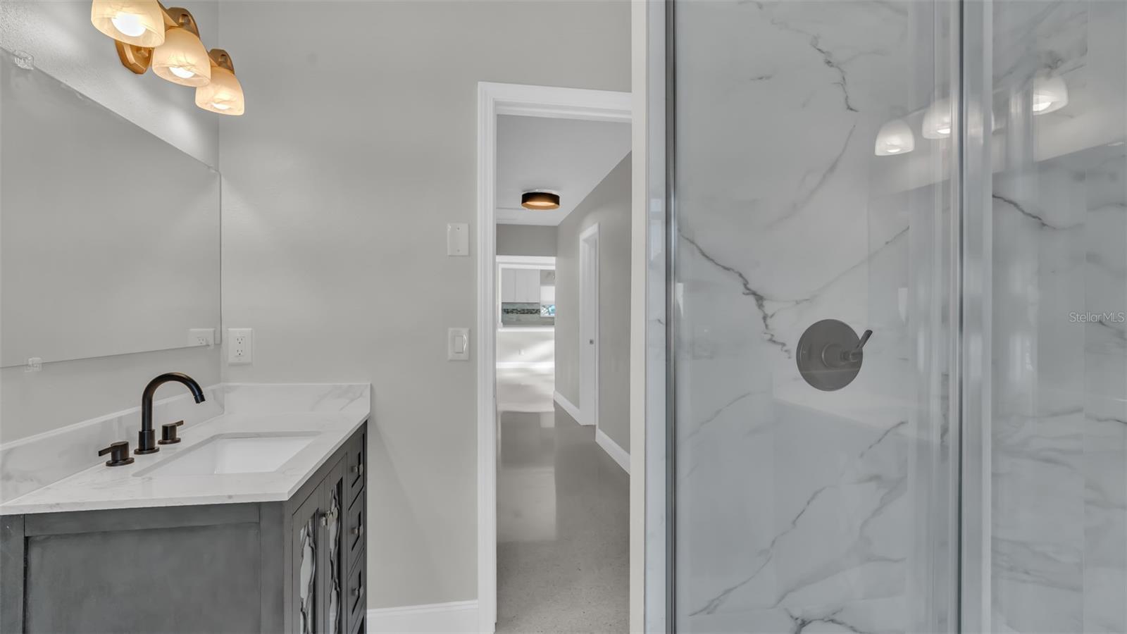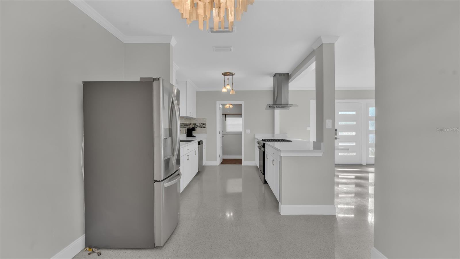 Discover refined coastal living just three blocks from the sugar-sand beaches of St. Pete Beach. This beautifully reimagined residence is ideal as a primary home, luxury getaway, or high-end rental, offering a seamless blend of modern upgrades and timeless Florida elegance. The home has been extensively renovated, featuring a newer roof, updated electrical and plumbing, tankless water heater, and all-new appliances. Sun-filled interiors showcase reconditioned terrazzo flooring complemented by new laminate flooring in the expansive family room and enlarged primary suite. At the heart of the home, the designer kitchen boasts new custom cabinetry, quartz countertops, a sleek tile backsplash, and a premium appliance package with a natural gas range. Spa-inspired bathrooms feature new vanities and stylish tiled shower wainscoting, while the updated laundry area includes durable new tile flooring. Impact-rated front windows and doors enhance security and energy efficiency. Outside, fresh exterior paint and a pavered circular driveway create striking curb appeal with ample guest parking. The private backyard offers serene water views an inviting setting for entertaining or unwinding after a day at the beach. Located minutes from Corey Avenue’s dining, boutiques, and coastal attractions, this move-in-ready home delivers elevated beachside living at its finest.