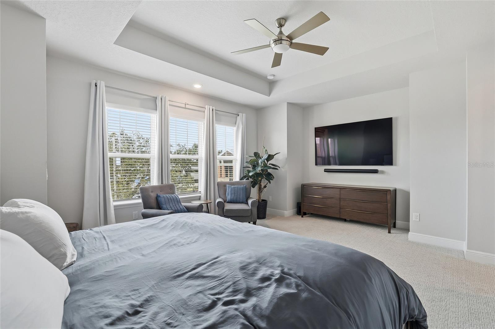 - Ceiling Fans(s), Crown Molding, High Ceilings, Kitchen/Family Room Combo, PrimaryBedroom Upstairs, Walk-In Closet(s), Window Treatments