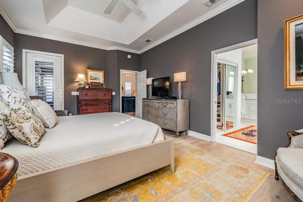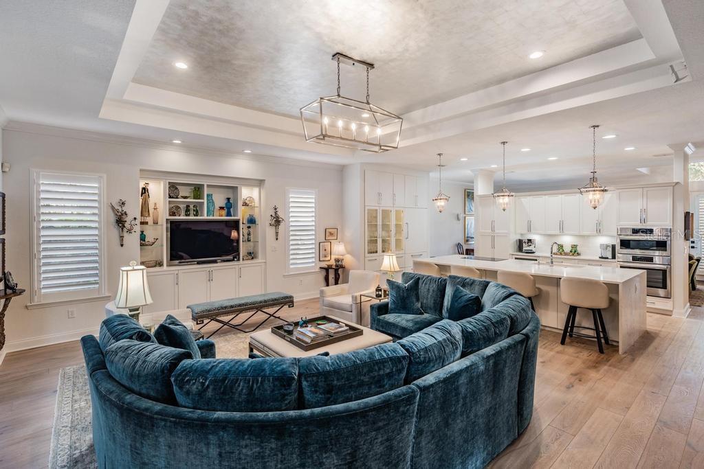 - Built-in Features, Ceiling Fans(s), Crown Molding, Eat-in Kitchen, High Ceilings, Kitchen/Family Room Combo, Open Floorplan, Tray Ceiling(s), Walk-In Closet(s), Window Treatments