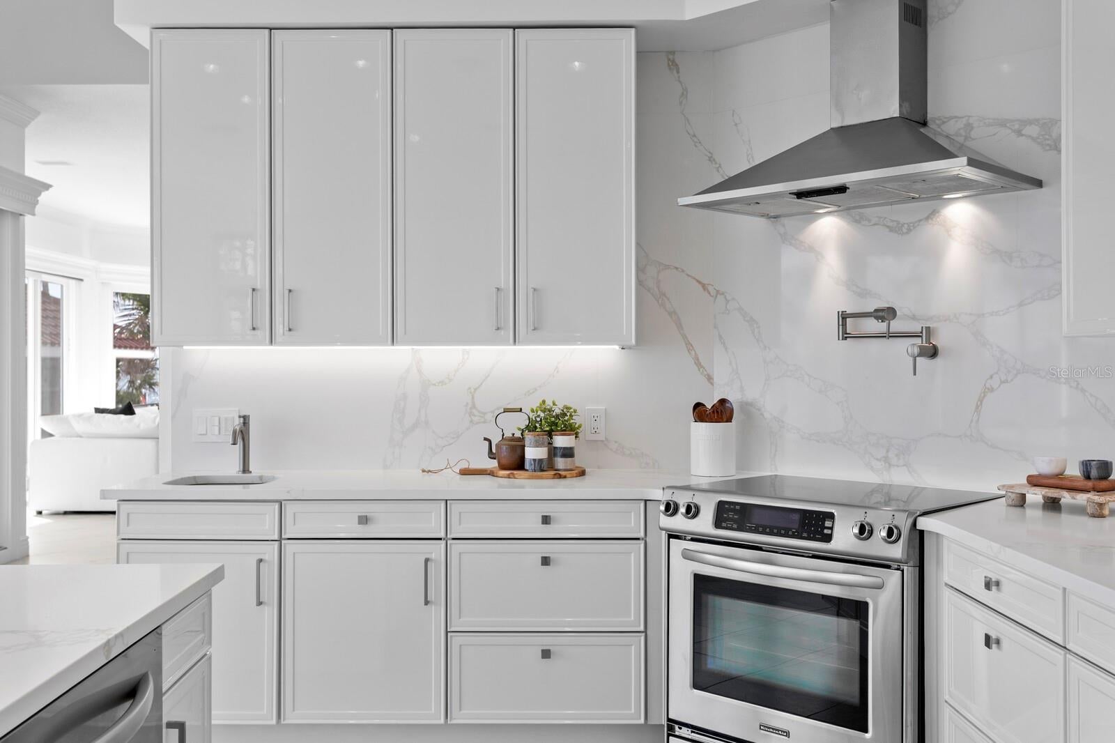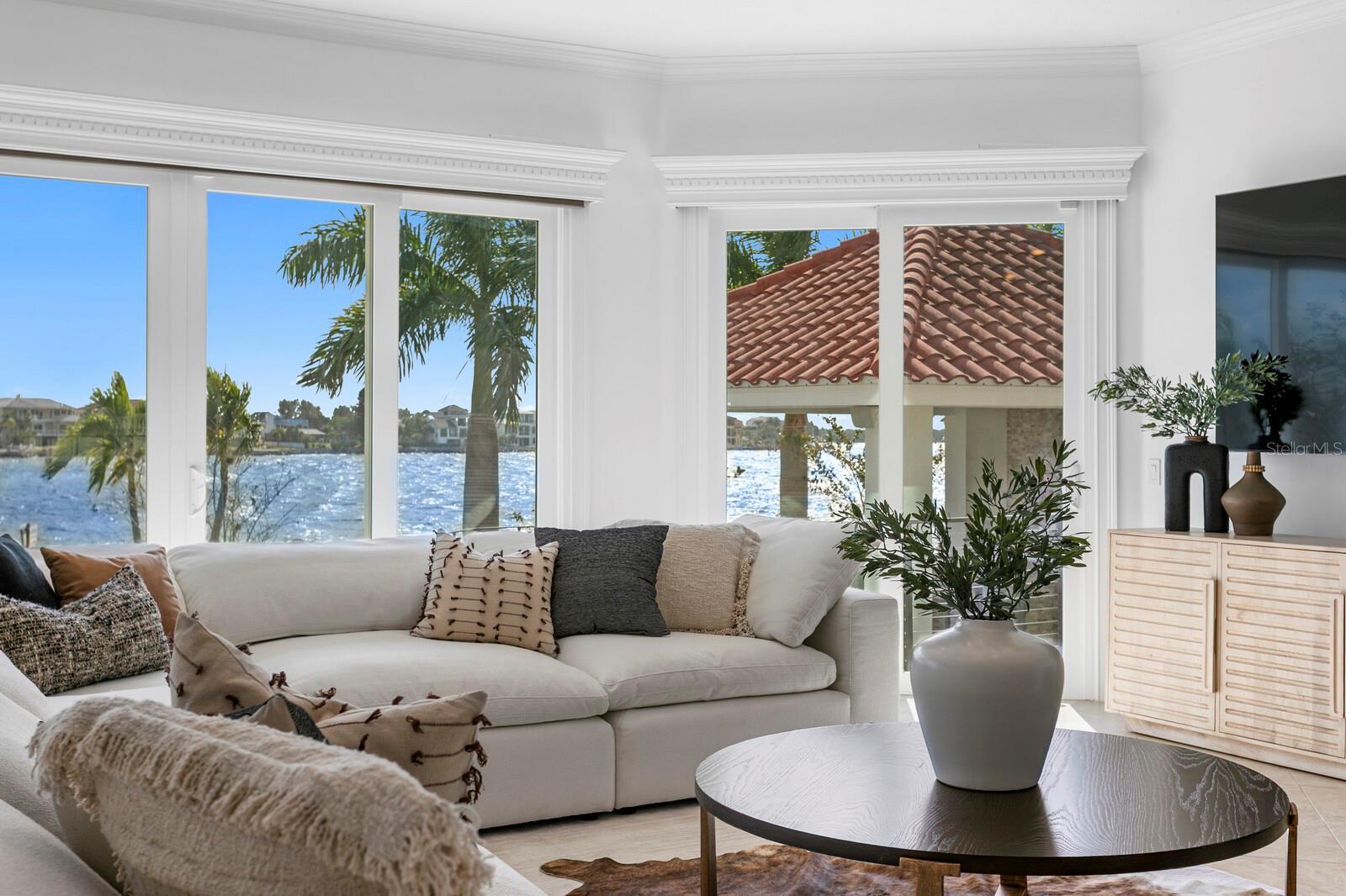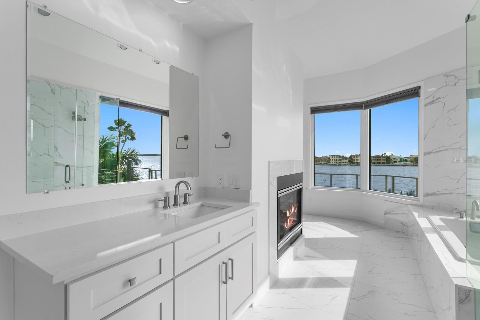 Under contract-accepting backup offers. Majestic Andalucia Bayfront Estate. Poised on open sailboat water, this extraordinary waterfront estate captures sweeping, unobstructed bay views and breathtaking sunsets. Set on a double lot with 177 feet of bay frontage, the property offers exceptional privacy within the guard-gated community of Andalucia. Delivering coastal elegance and grand design, the residence is ideal for refined entertaining indoors and out. A circular paver driveway and elegant covered portico create a striking arrival, setting the tone for the home’s refined coastal design. Beautifully curated finishes and expansive outdoor living spaces flow effortlessly to the shoreline. The welcoming great room showcases panoramic bay views and a gas fireplace, with French door access to the covered bayfront terrace. A chef’s kitchen features a center island, breakfast bar, and breakfast area overlooking the bay, complemented by premium Miele, KitchenAid, and GE Monogram appliances, pot filler, and prep sink. Additional first floor living spaces include a light-filled office, formal dining room, expansive laundry room, full bath, and powder room. Outdoors, a true resort-style experience awaits with a saltwater pool and spa, generous pool deck, and dramatic fire feature. A stainless-steel outdoor kitchen and cabana deliver exceptional poolside entertaining with a dining bar and stone finishes overlooking the bay. The second-level primary retreat features an expansive terrace with open water views, a dual-sided gas fireplace, dual closets, and a luxurious bath with a glass-enclosed shower. Three additional ensuite guest bedrooms complete the second level, two with access to the bayfront terrace, and walk-in closets. Updates include interior and exterior paint, new carpeting, four recently added HVAC units, quartz countertops, updated interior lighting, and comprehensive landscape enhancements. Additional appointments include a Tesla Solar Powerwall, a four-car garage with convenient through-access and additional storage, and a glass three-stop elevator. Residents enjoy access to a bayfront clubhouse, community pool, lighted tennis courts, bayfront common areas, and playground. This residence includes a designated boat slip in the Andalucia Yacht Club in the community that a buyer may assume, offering a true boating lifestyle with convenient access to Tampa Bay and surrounding coastal destinations.