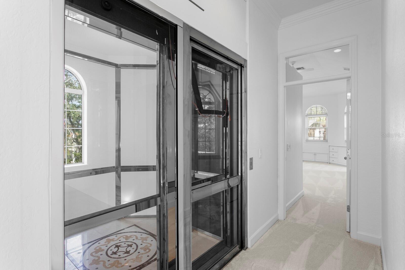 - Built-in Features, Ceiling Fans(s), Crown Molding, Eat-in Kitchen, Elevator, High Ceilings, PrimaryBedroom Upstairs, Solid Surface Counters, Thermostat, Walk-In Closet(s), Window Treatments