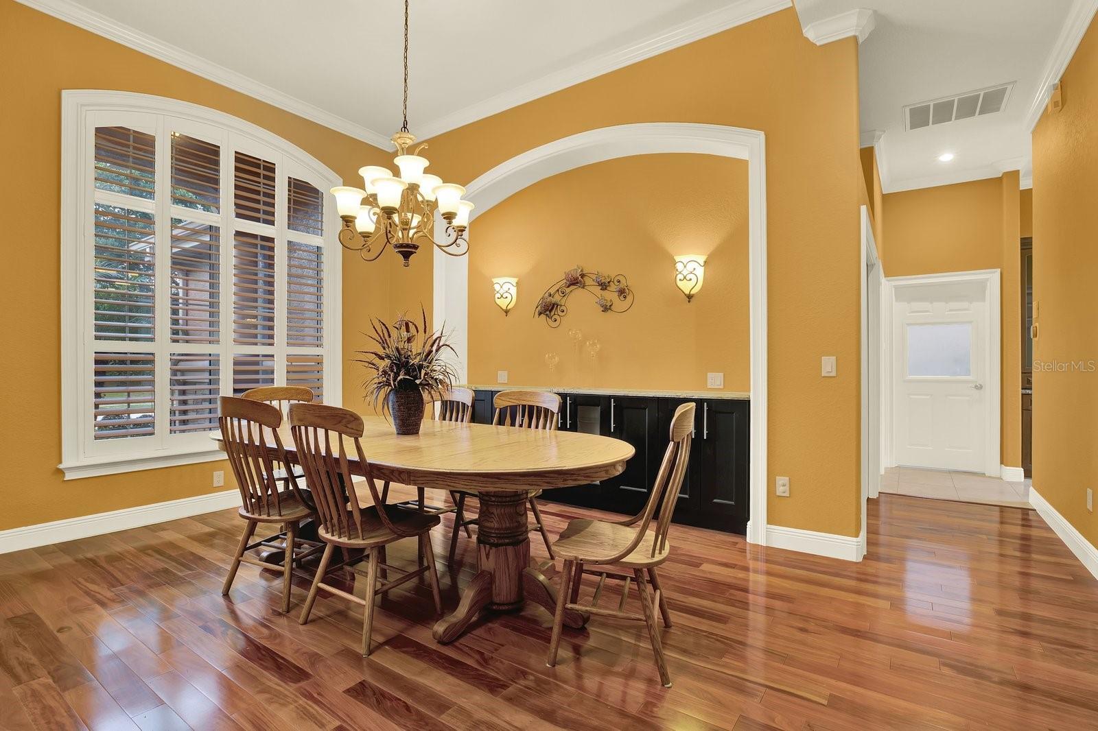 - Ceiling Fans(s), Crown Molding, Eat-in Kitchen, High Ceilings, Living Room/Dining Room Combo, Open Floorplan, Solid Surface Counters, Solid Wood Cabinets, Split Bedroom, Stone Counters, Walk-In Closet(s), Window Treatments