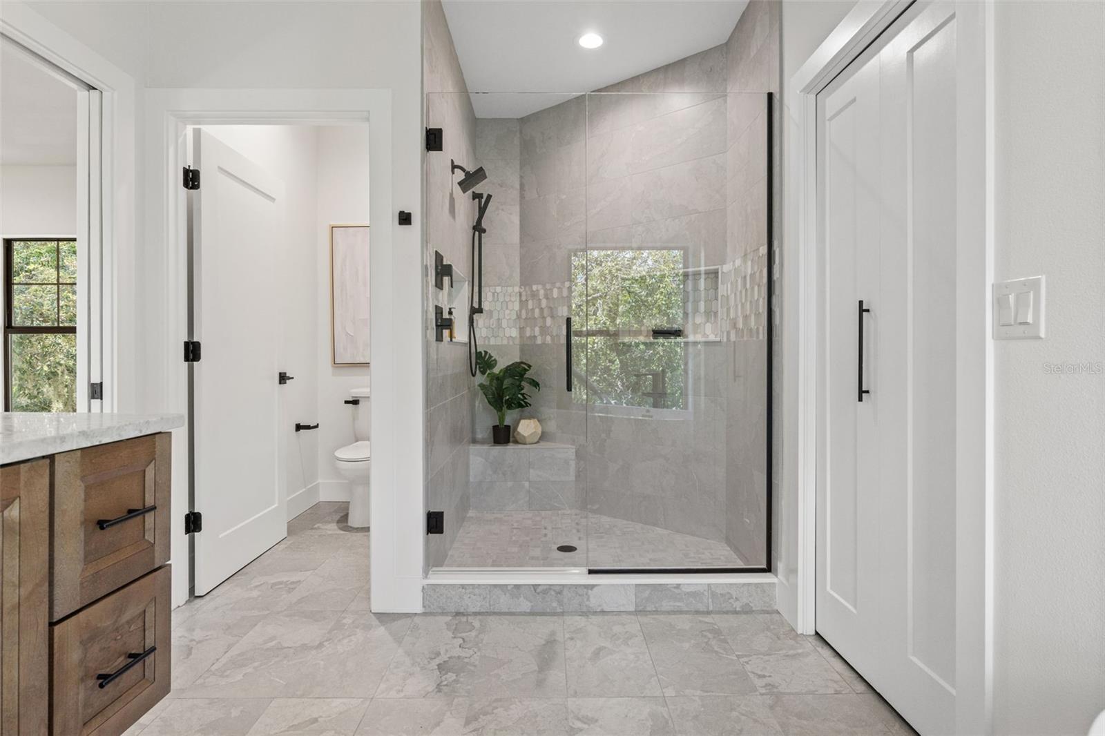 - Built-in Features, Ceiling Fans(s), Eat-in Kitchen, High Ceilings, Pest Guard System, PrimaryBedroom Upstairs, Solid Wood Cabinets, Stone Counters, Thermostat, Window Treatments