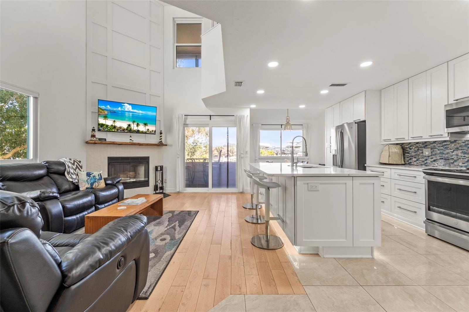 Welcome to this exceptional, fully renovated 3-bedroom, 3-bath end unit in Curlew Landings, complete with a deeded boat slip(#34), breathtaking water views, and a prime Dunedin waterfront location. Inside, the home is filled with natural light thanks to soaring vaulted ceilings that create an open, airy feel throughout the main living spaces. The gorgeous, updated kitchen features quartz countertops, stainless steel appliances, and modern finishes—perfect for both everyday living and entertaining. Every bathroom has been thoughtfully upgraded with stylish finishes, while fresh interior paint and updated flooring throughout give the home a clean, modern coastal look that’s truly move-in ready. The loft-style primary suite is a private retreat, offering stunning elevated views, a beautifully renovated primary bath, and a spacious walk-in closet. Two additional bedrooms on the main living level share a full, updated bath—ideal for guests or family. The fully renovated first floor adds incredible versatility with a full bathroom, private patio access, and a one-car garage, making it perfect as a guest suite, bonus living space, or home gym. Outdoor living shines with a second-floor deck for entertaining and a third-floor bird’s-nest office and sunroom where you can enjoy sweeping water views and watch boats and wildlife glide by. With modern upgrades throughout, incredible views on every level, and one of Dunedin’s most desirable boating communities, this home offers the ultimate Florida lifestyle—luxury, location, and waterfront living all in one stunning package. Fees include an annual fee for the boat slip of $989 and the monthly HOA fees of $800 include, water, sewer, trash, internet, exterior maintained, roof, flood insurance, dock and community amenities. Schedule your showing today!
