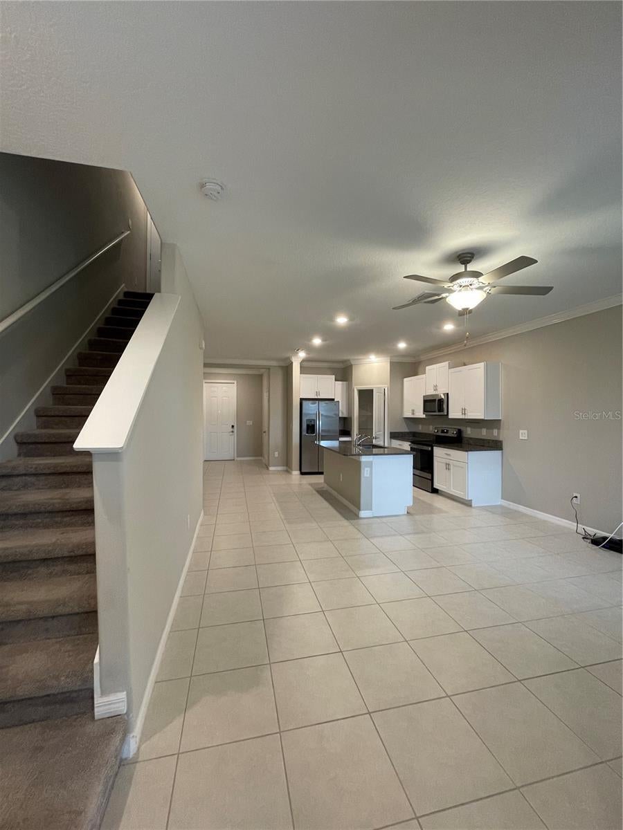 - Ceiling Fans(s), Crown Molding, Open Floorplan, PrimaryBedroom Upstairs, Solid Surface Counters, Stone Counters, Thermostat, Walk-In Closet(s)