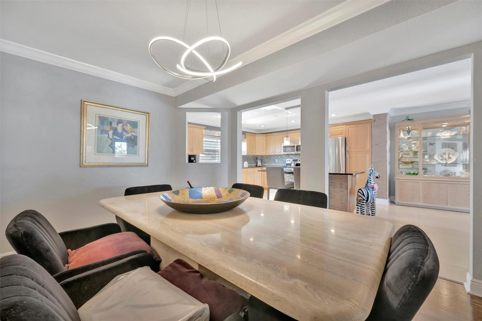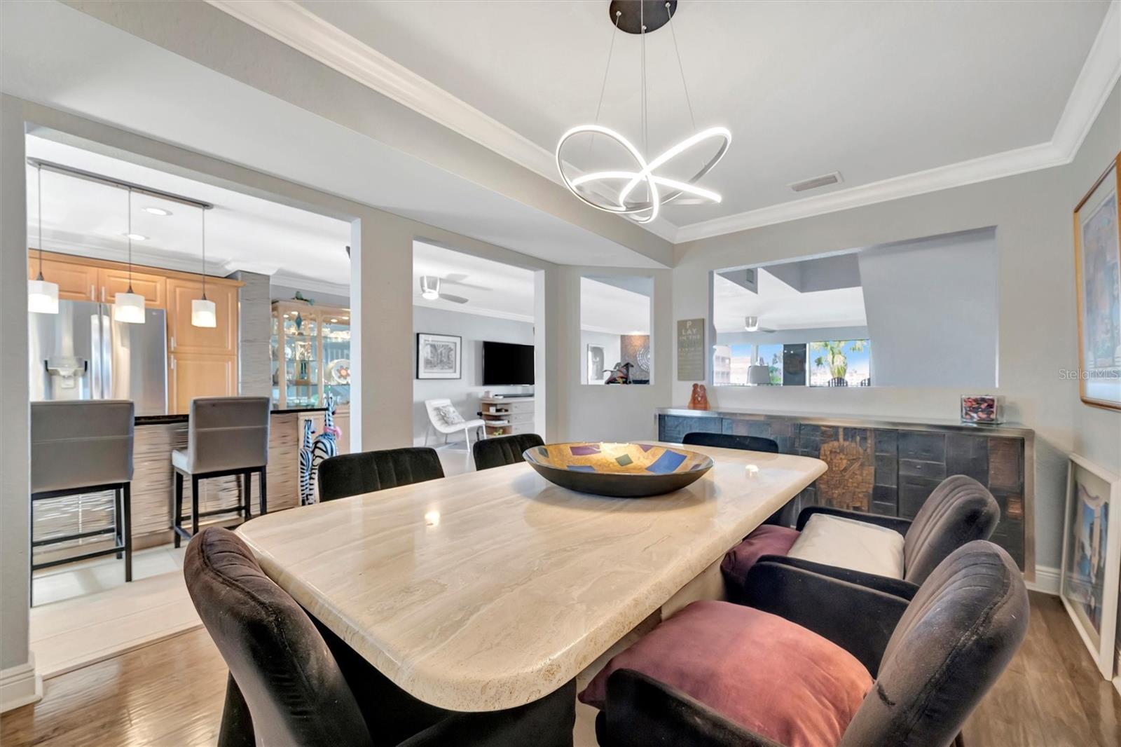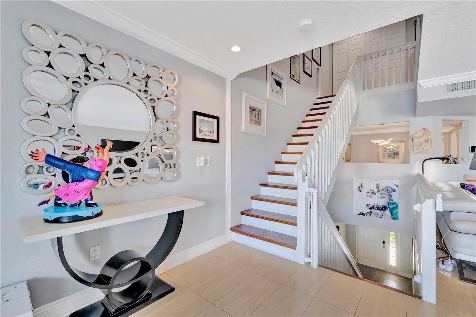 Wide, spacious, and beautifully positioned, this three-bedroom, two-and-a-half-bath waterfront townhome offers the best of Treasure Island living—complete with a private boat slip and lift, balconies on all levels, and less than a five-minute walk to the beach. Designed across three levels, all concrete block, the first floor features an oversized garage that can comfortably accommodate at least three vehicles, along with additional space for storage, water toys, or a workshop. The first level is equipped with 250-amp electrical service, offering expanded capacity that may accommodate additional features such as a hot tub or electric vehicle charging. A motorized awning on the ground level enhances the waterfront area, creating a shaded space ideal for relaxing or entertaining by the dock. Direct access to the water makes boating effortless, with quick passage to the Gulf in under five minutes. The second level is dedicated to open-concept living, finished with ceramic tile floors and designed to capture natural light and water views. Sliding glass doors lead to a large waterfront balcony, extending the living space outdoors. A beautiful fireplace anchors the living room, while hurricane shutters provide added peace of mind. The kitchen is both functional and inviting, offering slide-out cabinetry, abundant storage, a center island with refrigerator and wine bar, a built-in desk area, and a dedicated dining area enhanced by engineered wood flooring—ideal for everyday living and entertaining. The third level hosts the private sleeping quarters, highlighted by a spacious primary suite with its own balcony overlooking the water. The remodeled primary bath features soft-close cabinetry, a deep Kohler soaking tub, a separate water closet, and generous storage. A large walk-in closet with engineered wood flooring completes the retreat. Bedrooms two and three are well-sized and ideal for guests, family, or a home office. Laundry is conveniently located on the upper level. Additional features include a water softener system and thoughtful upgrades throughout. Enjoy boating from your backyard, easy beach access, and the convenience of being close to dining, shopping, and everything Treasure Island has to offer. Schedule your private showing today and experience waterfront living just minutes from the beach.