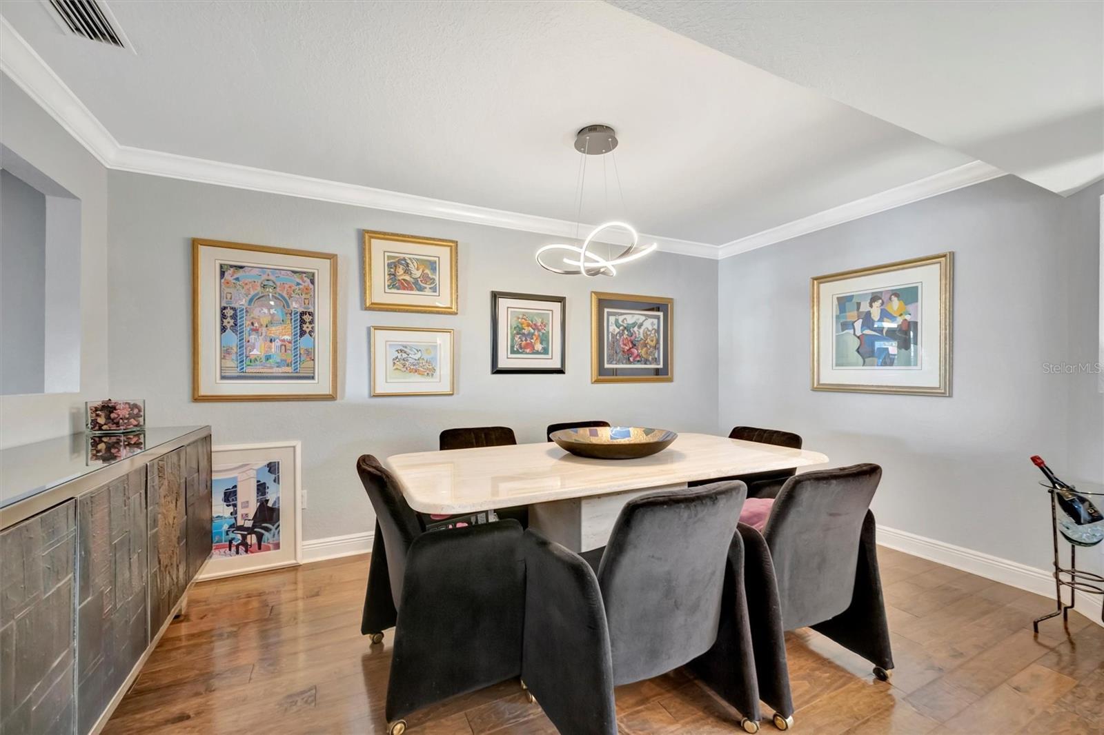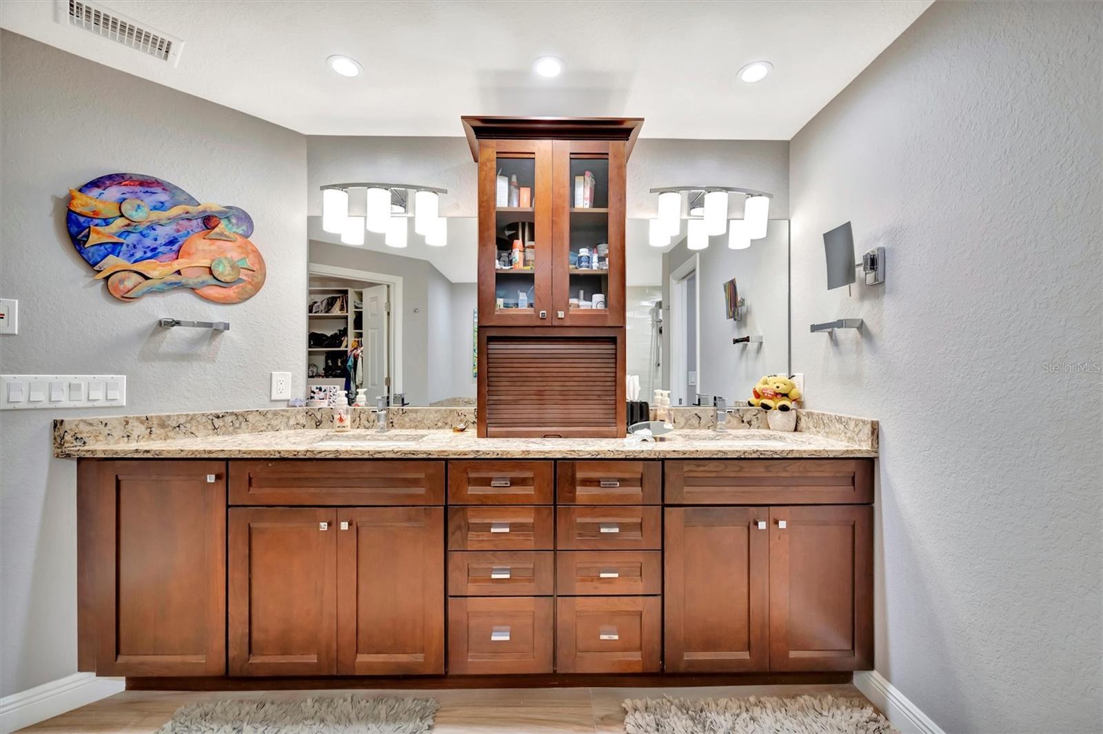 - Ceiling Fans(s), Eat-in Kitchen, High Ceilings, Kitchen/Family Room Combo, PrimaryBedroom Upstairs, Solid Surface Counters, Solid Wood Cabinets, Thermostat, Window Treatments