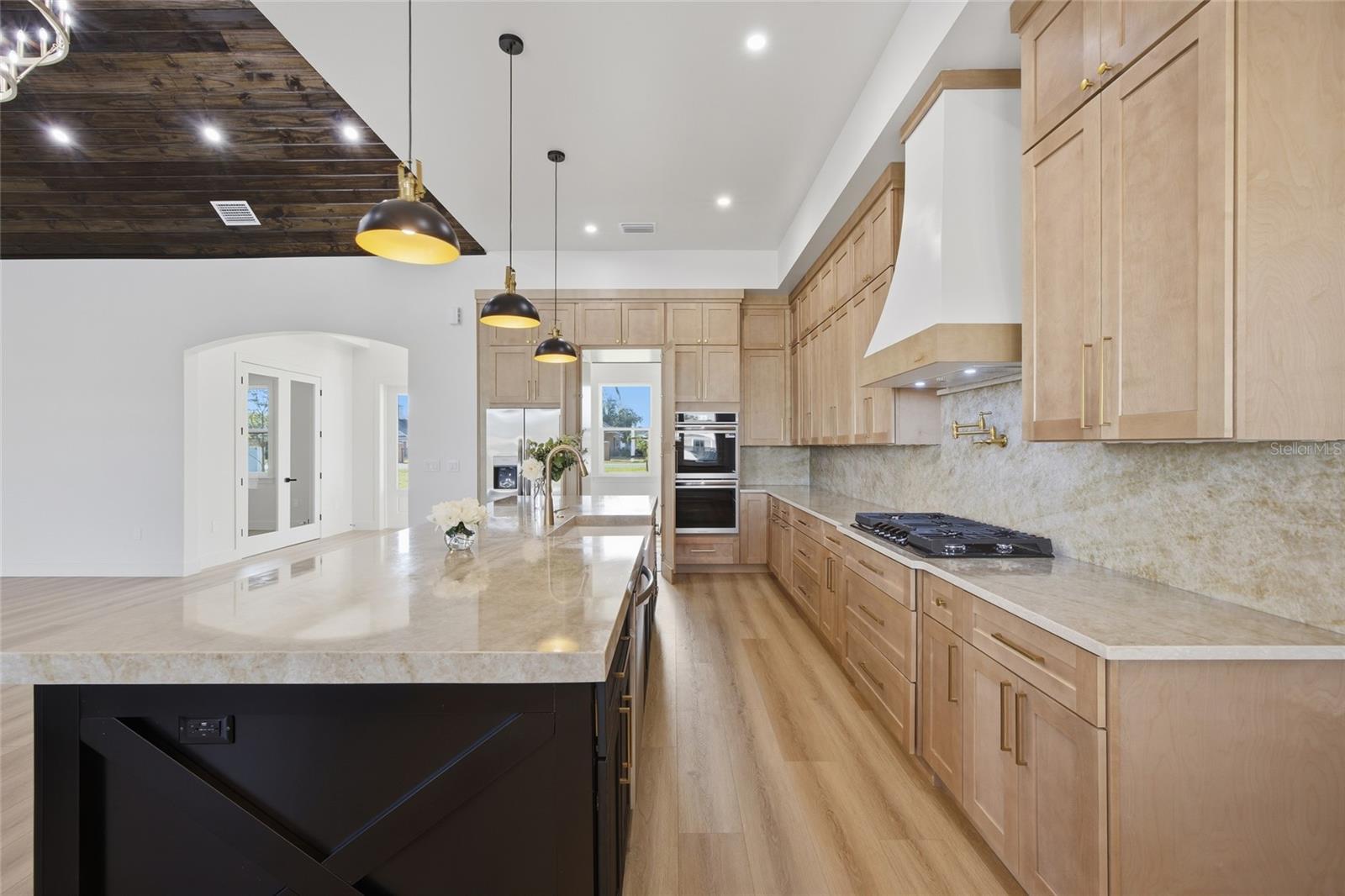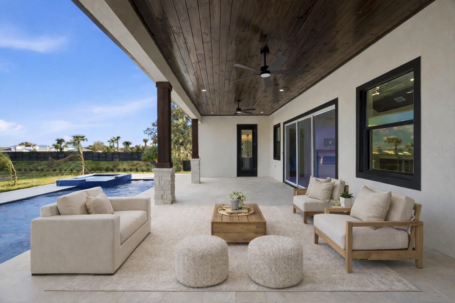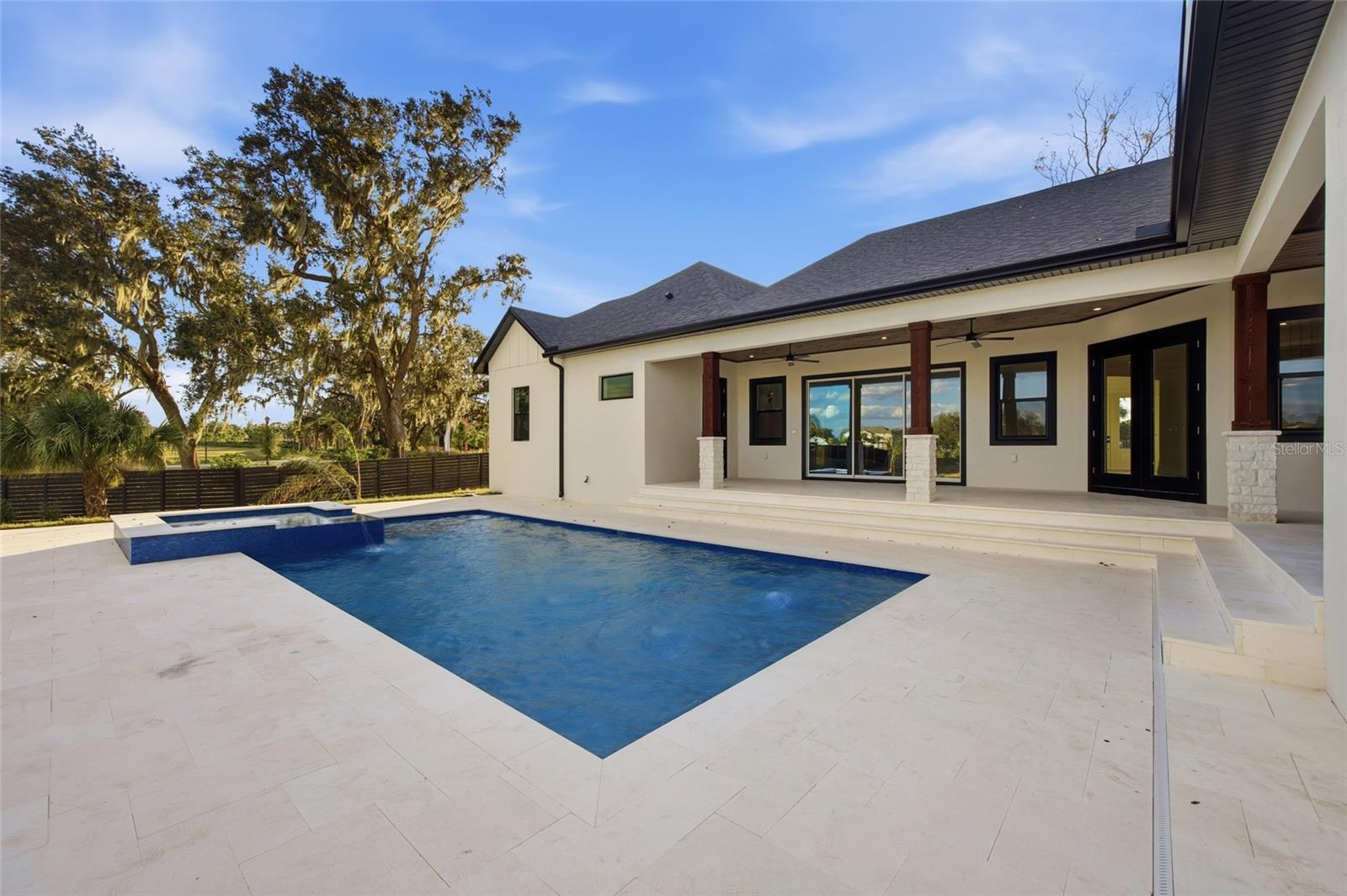 One or more photo(s) has been virtually staged. One or more photo(s) has been virtually staged. Set on 1.89 private acres in Plant City, this luxury new construction custom modern farmhouse offers the rare combination of space, privacy, and convenience — just 30 minutes from Tampa and approximately 40 minutes from Orlando, with easy access to major roadways while still enjoying a peaceful, country setting. Inside, nearly 3,400 square feet of thoughtfully designed living space includes 4 bedrooms and 4.5 baths, finished with refined materials and intentional detail throughout. The open-concept living area makes a striking first impression with tongue-and-groove ceilings soaring to an 18-foot peak, an electric fireplace with stone surround, and a wet bar with wine refrigerator — ideal for both everyday living and entertaining. The kitchen is a true centerpiece, featuring Taj Mahal countertops, bronze-accented oak cabinetry, a concealed walk-in pantry, and a generous 12-foot island with eat-in seating. High-end appliances include a porcelain sink, microwave drawer, double oven, and a 36” gas cooktop with custom vent, creating a space that is as functional as it is beautiful. The primary suite offers a private retreat with a spa-inspired bath showcasing slab tile, a double shower with rain head, a freestanding soaking tub, a dedicated vanity area, and a spacious walk-in closet. Additional highlights include luxury vinyl plank flooring throughout the main living areas, tile baths, a dedicated office, a laundry room with pet wash station, custom closets, and a three-car garage. Outdoor living is equally impressive, anchored by a limestone-finished lanai and pool deck featuring a heated pool with fountain features, sun shelf, hot tub, and a fully equipped outdoor kitchen with concrete countertops, a 36” gas grill, sink, and under-counter refrigerator. A stone-paved driveway, real stone and cedar porch details, mostly fenced grounds with stone fence columns, no HOA, and agricultural zoning offering flexibility for horses or a hobby farm complete this exceptional property. A rare opportunity to enjoy luxury acreage living with the convenience of Tampa Bay and Central Florida close at hand.