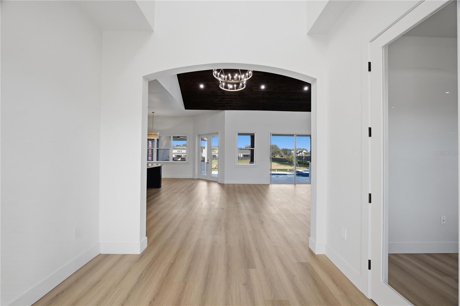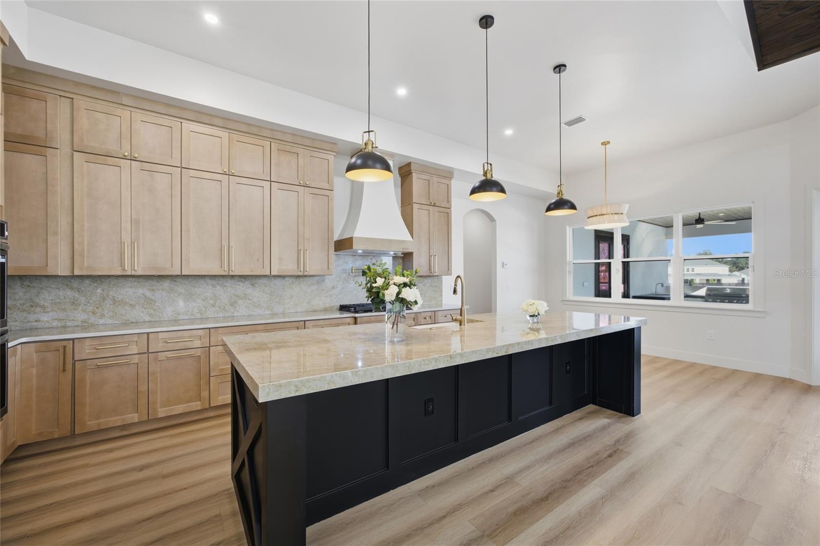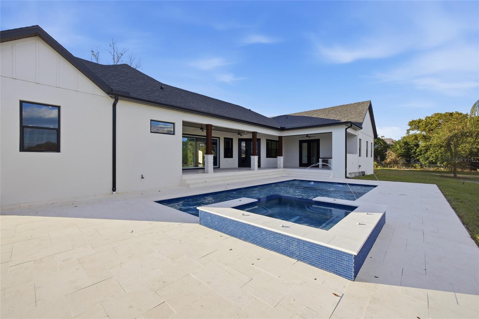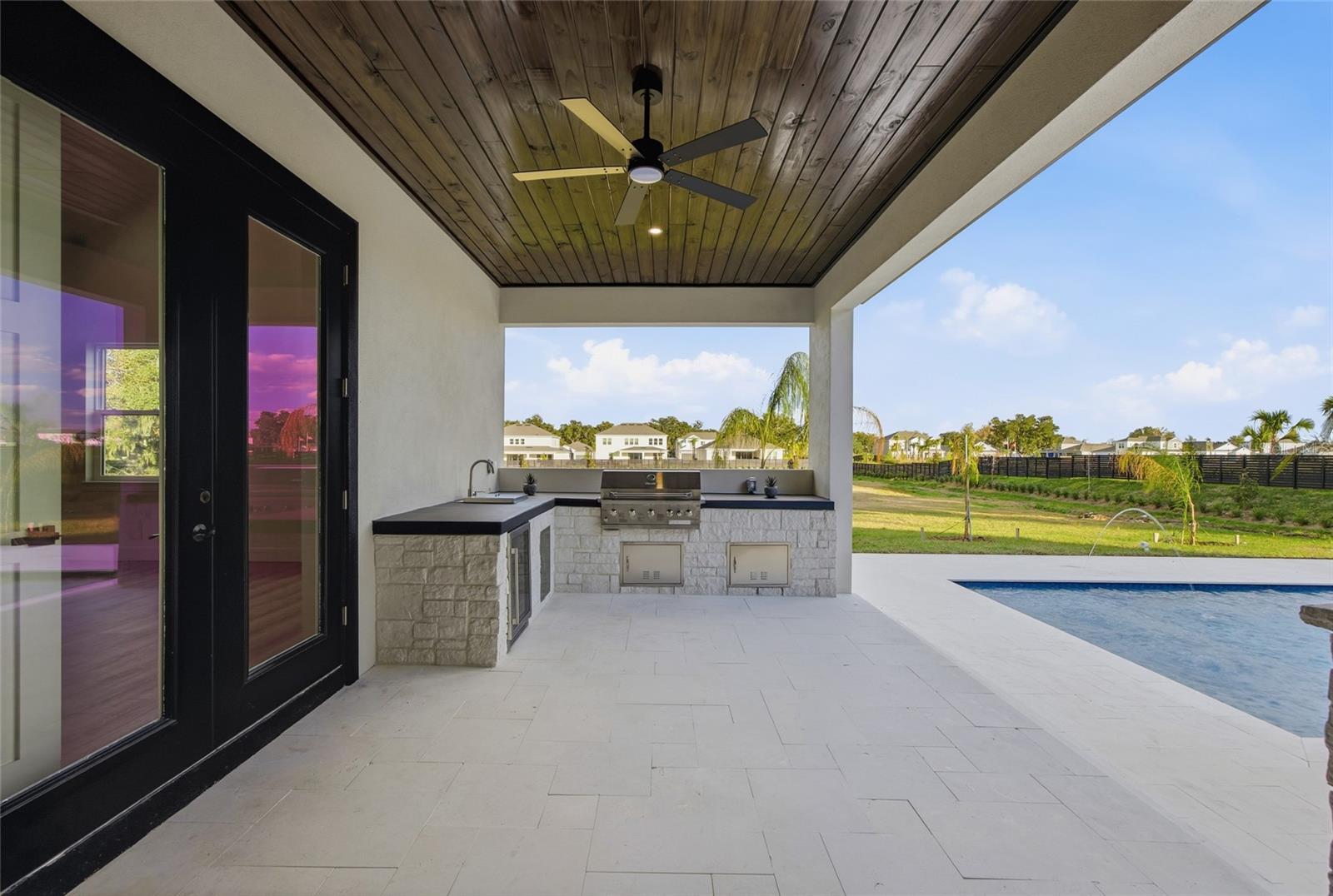 One or more photo(s) has been virtually staged. One or more photo(s) has been virtually staged. Set on 1.89 private acres in Plant City, this luxury new construction custom modern farmhouse offers the rare combination of space, privacy, and convenience — just 30 minutes from Tampa and approximately 40 minutes from Orlando, with easy access to major roadways while still enjoying a peaceful, country setting. Inside, nearly 3,400 square feet of thoughtfully designed living space includes 4 bedrooms and 4.5 baths, finished with refined materials and intentional detail throughout. The open-concept living area makes a striking first impression with tongue-and-groove ceilings soaring to an 18-foot peak, an electric fireplace with stone surround, and a wet bar with wine refrigerator — ideal for both everyday living and entertaining. The kitchen is a true centerpiece, featuring Taj Mahal countertops, bronze-accented oak cabinetry, a concealed walk-in pantry, and a generous 12-foot island with eat-in seating. High-end appliances include a porcelain sink, microwave drawer, double oven, and a 36” gas cooktop with custom vent, creating a space that is as functional as it is beautiful. The primary suite offers a private retreat with a spa-inspired bath showcasing slab tile, a double shower with rain head, a freestanding soaking tub, a dedicated vanity area, and a spacious walk-in closet. Additional highlights include luxury vinyl plank flooring throughout the main living areas, tile baths, a dedicated office, a laundry room with pet wash station, custom closets, and a three-car garage. Outdoor living is equally impressive, anchored by a limestone-finished lanai and pool deck featuring a heated pool with fountain features, sun shelf, hot tub, and a fully equipped outdoor kitchen with concrete countertops, a 36” gas grill, sink, and under-counter refrigerator. A stone-paved driveway, real stone and cedar porch details, mostly fenced grounds with stone fence columns, no HOA, and agricultural zoning offering flexibility for horses or a hobby farm complete this exceptional property. A rare opportunity to enjoy luxury acreage living with the convenience of Tampa Bay and Central Florida close at hand.