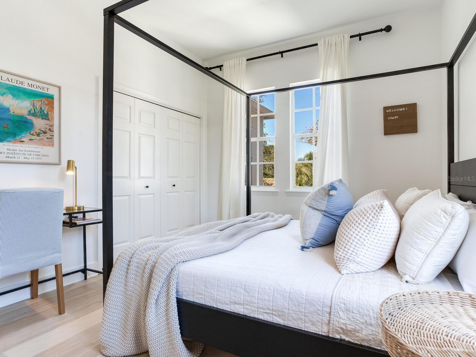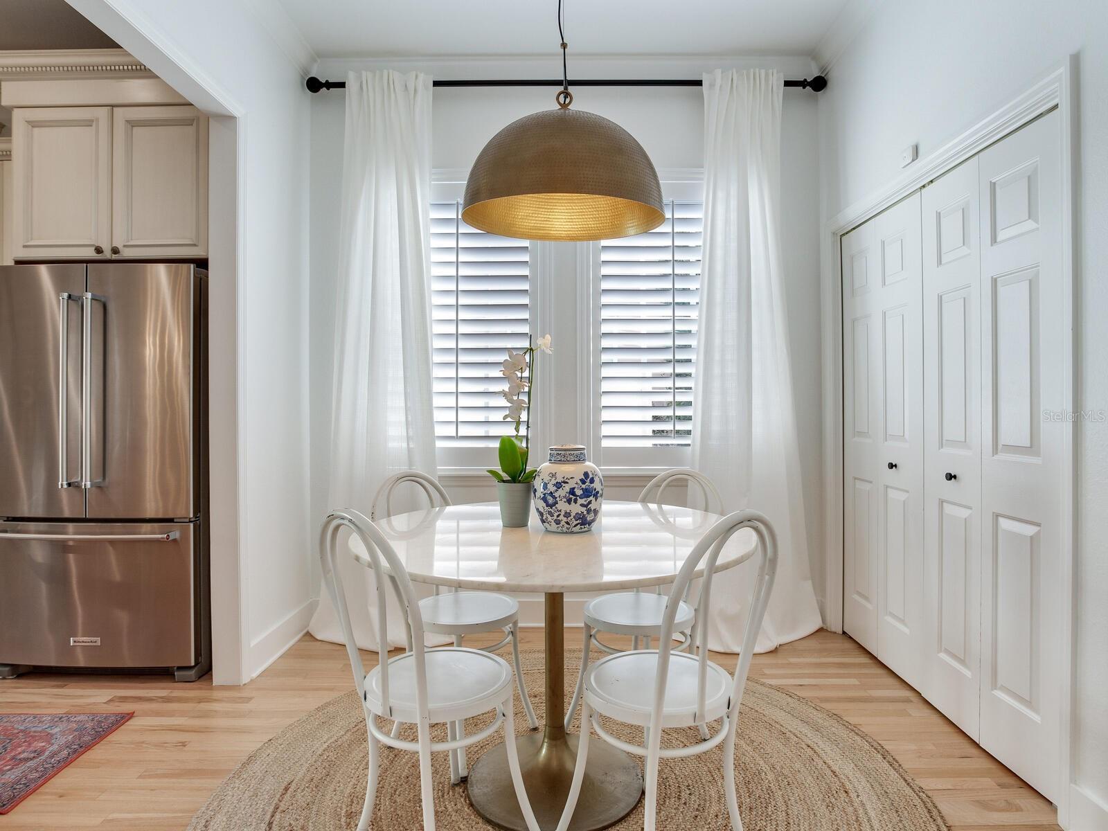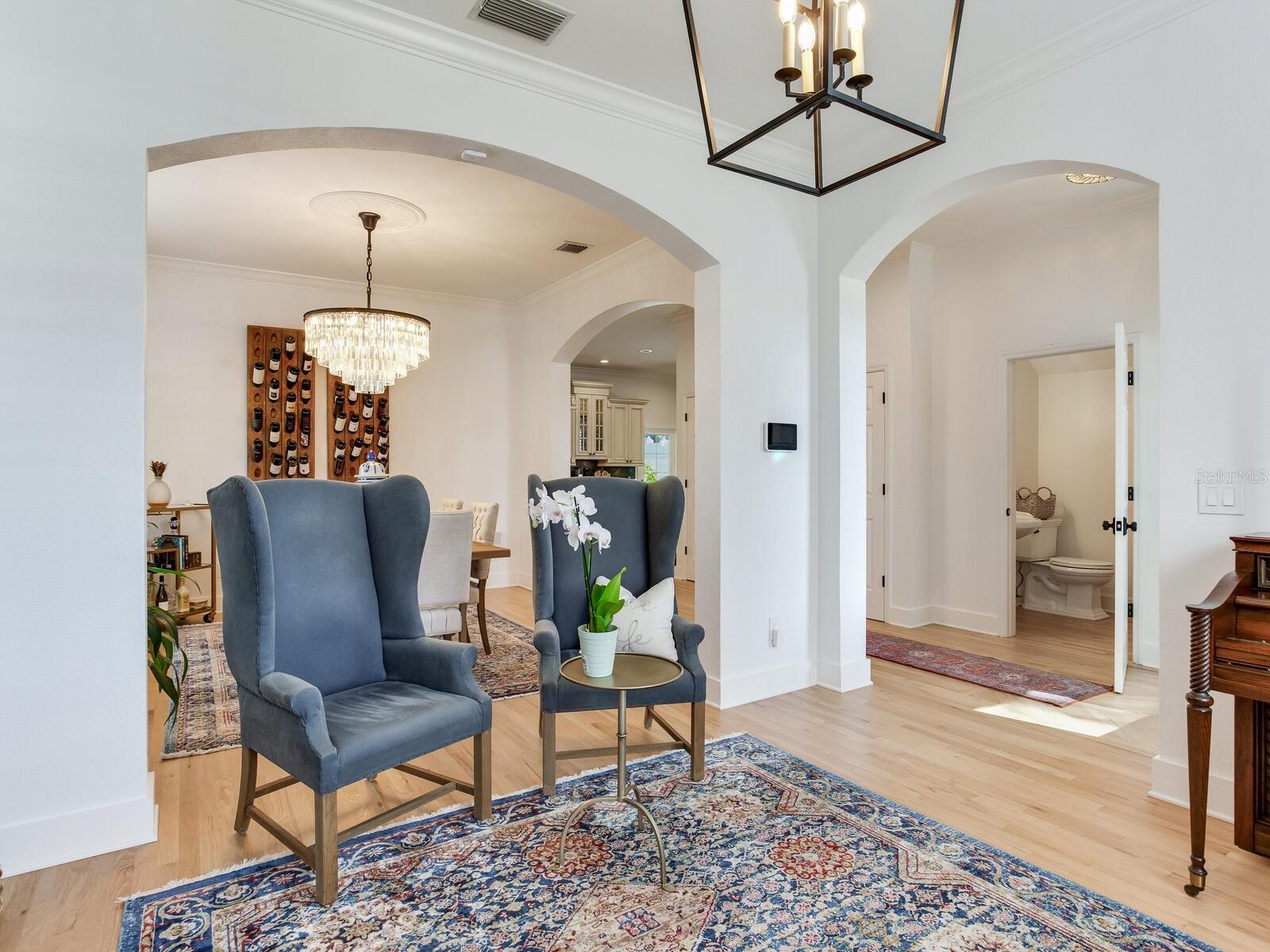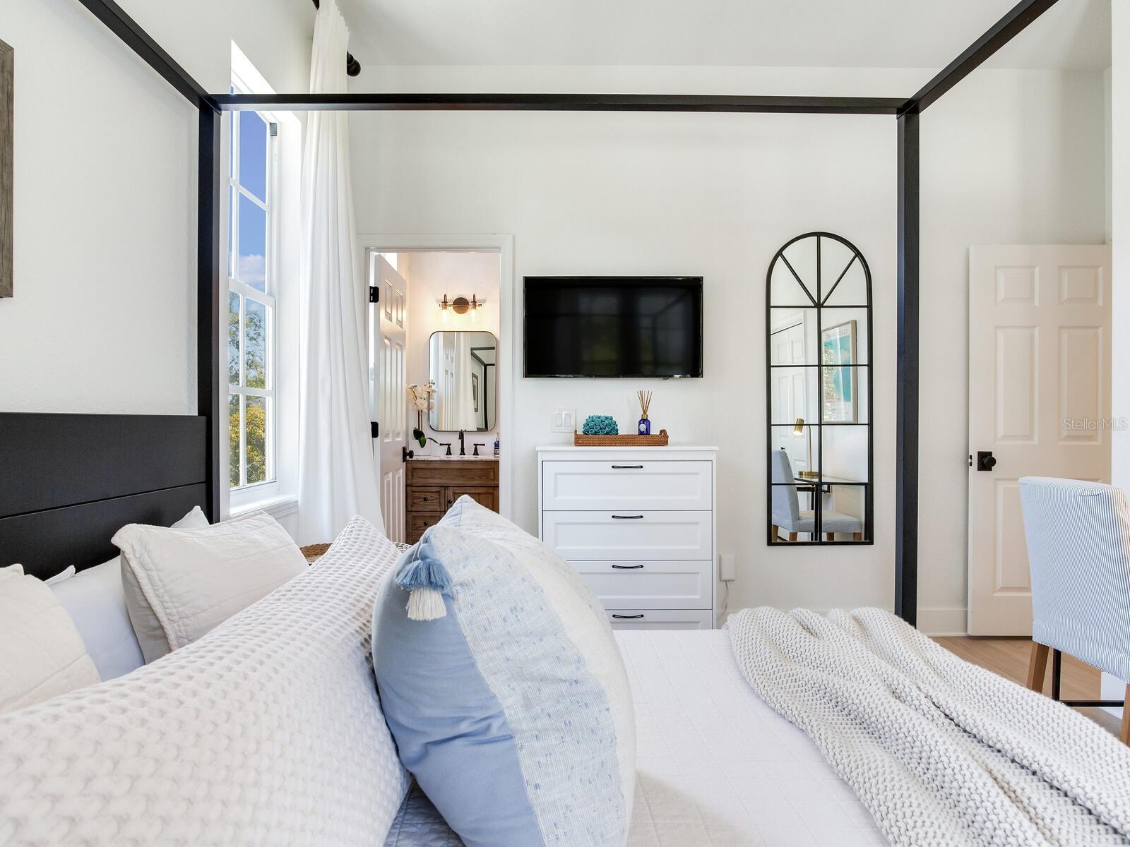 - Crown Molding, Eat-in Kitchen, High Ceilings, Kitchen/Family Room Combo, PrimaryBedroom Upstairs, Split Bedroom, Stone Counters, Thermostat, Walk-In Closet(s), Window Treatments