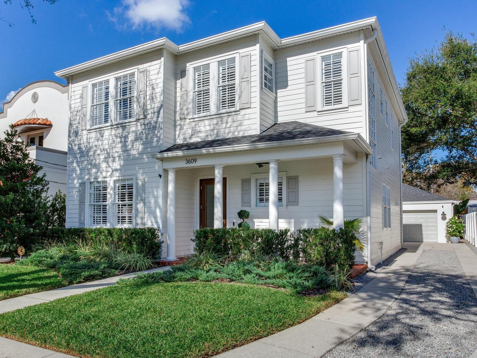 Combining timeless character with sun-filled spaces, extensive modern updates, and an exceptional South Tampa location, this charming home offers comfort, quality, and lifestyle in one of the area’s most desirable neighborhoods. Beautifully appointed, thoughtfully updated, and ideally located in the heart of South Tampa, this 4-bedroom, 3.5-bath home features 10-foot ceilings on both levels and abundant natural light, creating an open, airy feel throughout. The spacious kitchen serves as the heart of the home, offering ample cabinetry, all-new appliances (2022), and a large peninsula with seating for four that also provides built-in interior storage—ideal for both everyday living and entertaining. Continuous red oak flooring flows throughout the main level and stairs, while durable engineered wood flooring installed upstairs in 2022 adds warmth and functionality. The home offers smart, functional living with an upstairs laundry closet, generous bedroom sizes, and plantation shutters throughout most of the home. Thoughtful upgrades include interior and exterior paint, updated baseboards, outlets, switches, and all light fixtures (2022), featuring select Restoration Hardware fixtures that elevate the overall design. Durable cement board siding enhances both longevity and curb appeal. Outdoor spaces are designed for easy enjoyment, featuring refreshed front landscaping and a turfed backyard added in 2023, along with portions of new fencing. The front entry is anchored by a Renewal by Andersen front door, offering enhanced durability and performance while bringing in additional natural light and elevating overall curb appeal. A detached concrete block two-car garage provides additional storage and convenience, along with ample attic storage. Additional upgrades include a new garage door motor (2025), a Vivint security system with cameras and smoke detectors (2022), new exterior doors by Weather-Tite and Renewal by Andersen (2025), and a Tesla EV charger. Major systems have been well maintained and updated, including a 2017 roof, A/C units installed in 2020, new gutters and gutter guards (2022), and a new water heater (2026). For peace of mind, the home has been professionally tented for termites in 2017 and 2024 and is under a transferable termite warranty. The home is zoned for the highly sought-after Roosevelt, Coleman, and Plant school district and is just steps from Roosevelt Elementary. Within walking distance to popular restaurants, coffee shops, boutiques, ice cream spots, and Corona Park, it offers an unbeatable blend of walkability, convenience, and true neighborhood charm. Situated on a wide, sidewalk-lined street, the setting feels welcoming and family-friendly. Call today to schedule a showing.