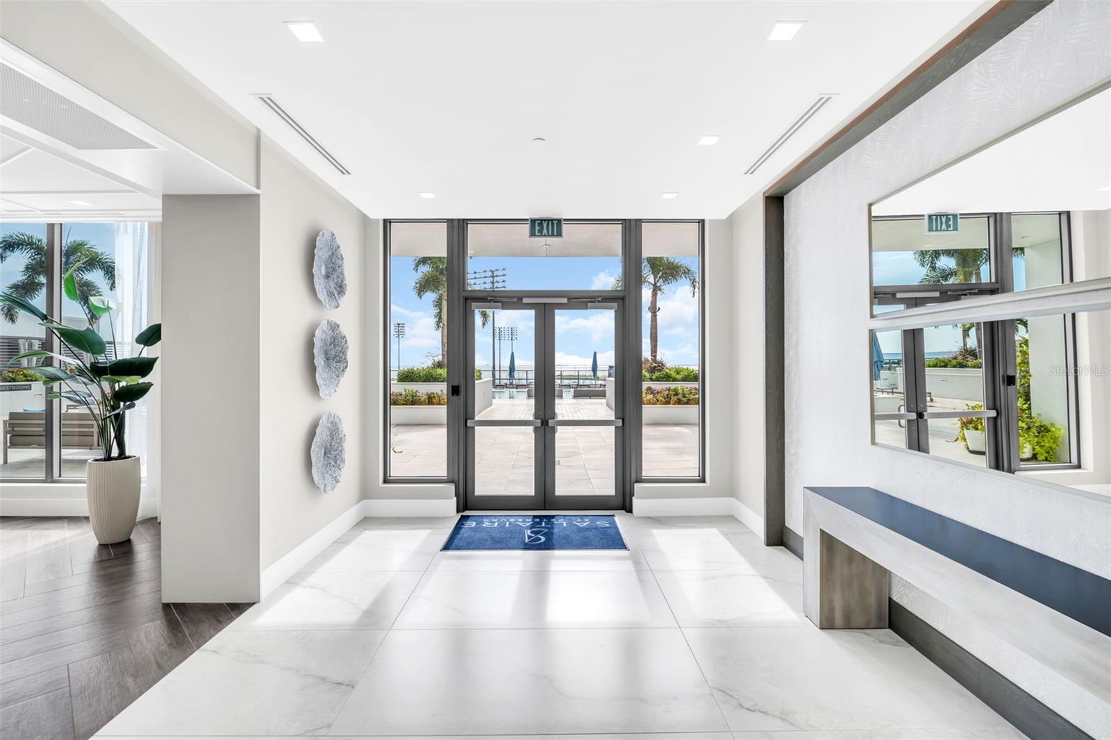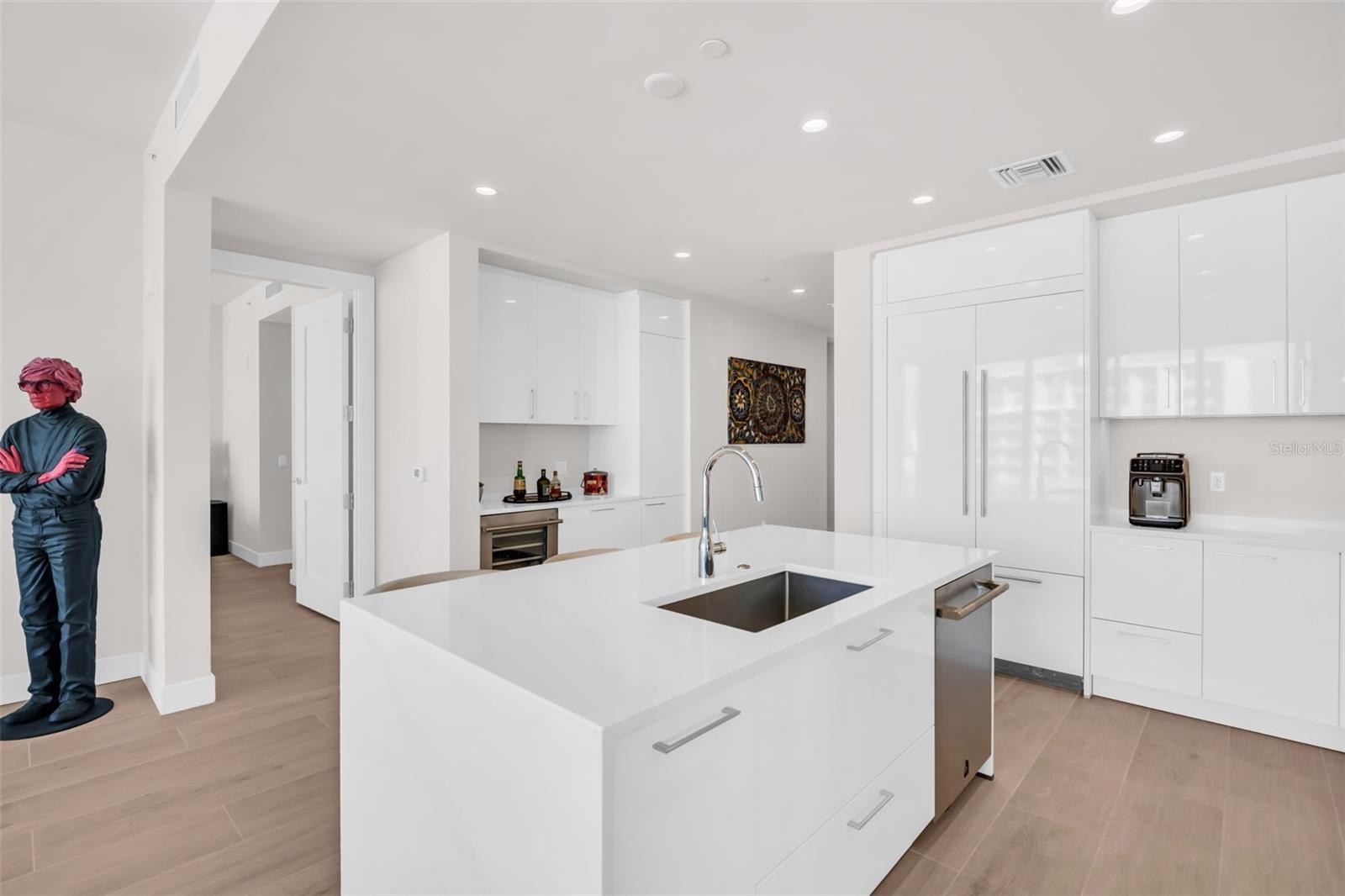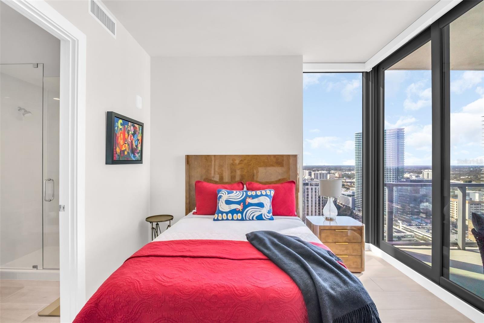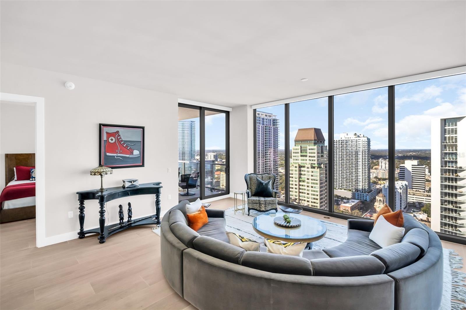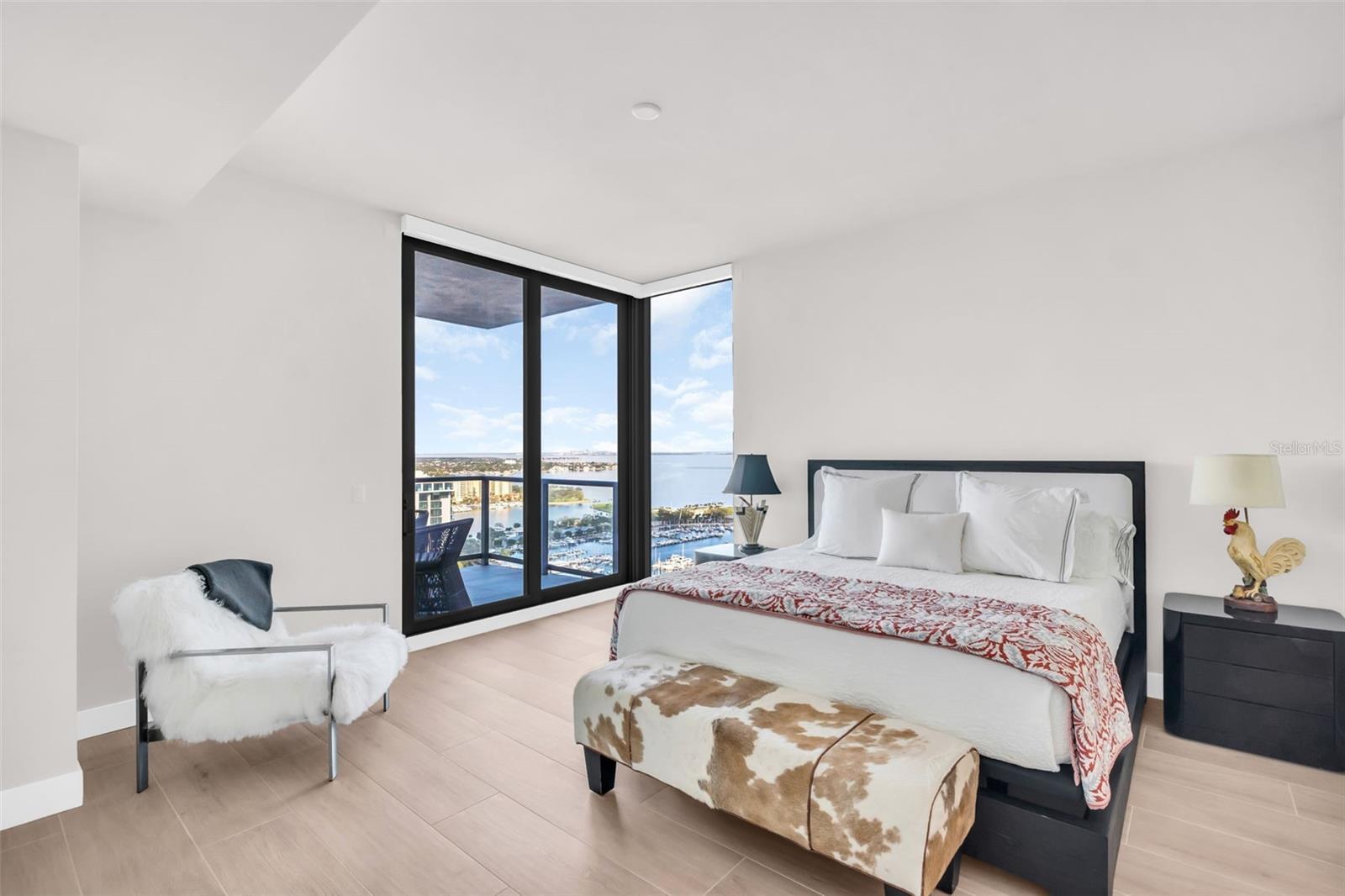 Soaring high above the city on the 31st floor of Saltaire, this exceptional 2-bedroom + den, 3-bath residence offers a refined blend of luxury, sophistication, and modern design. Spanning 2,036 square feet, the home showcases dramatic west-facing water views and captivating eastern city skyline vistas, creating a dynamic living experience from sunrise to sunset. A gracious entry opens into a light-filled, open-concept living space where floor-to-ceiling windows frame sweeping panoramas of Tampa Bay and downtown St. Petersburg. Porcelain plank flooring throughout enhances the home's clean, contemporary aesthetic while providing a seamless flow from room to room. Remote-controlled electric window blinds offer effortless comfort and privacy at the touch of a button. The designer kitchen is both elegant and highly functional, featuring quartz countertops, an induction cooktop, wine refrigerator, and thoughtfully upgraded pull-out shelving systems that maximize storage and organization. Whether hosting guests or enjoying a quiet evening in, the kitchen flows beautifully into the main living and dining areas, all set against a stunning backdrop of sky-high views. The versatile den with full bath provides flexibility as a home office, media room, or guest suite-ideal for today's lifestyles. The primary suite is a serene retreat, offering expansive views, a spa-inspired bath, and refined finishes designed for relaxation. A spacious secondary bedroom with its own bath ensures comfort and privacy for guests or additional household members. This residence includes two secured parking spaces, adding convenience and value in one of downtown's most sought-after towers. As a resident of Saltaire, enjoy access to world-class amenities including concierge services, a state-of-the-art fitness center, and a spectacular amenities deck offering some of the most breathtaking views in the city. Perfectly positioned in the heart of Downtown St. Petersburg, you're moments from acclaimed dining, vibrant cultural venues, waterfront parks, and all the energy that defines luxury urban living. A rare opportunity to own a sky-high, design-forward residence that seamlessly blends waterfront beauty with the excitement of downtown St. Pete.