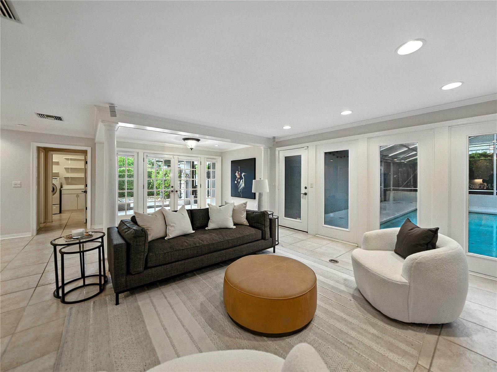 Enjoy worry-free living and elevated entertaining in this French-inspired estate, featuring a whole-home generator and a completely remodeled, show-stopping Chef's Kitchen —perfectly suited for Florida living. Tucked away on a quiet cul-de-sac in the highly desirable Scott Lake area, this exceptional residence offers deeded lake access and scenic lake views from select areas of the home, blending privacy, elegance, and lifestyle. A stately brick walkway, lush landscaping, and classic brick terraces create a striking first impression. Through grand double doors, the home reveals a refined showcase of craftsmanship with plantation shutters, custom millwork, and architectural detail throughout. This thoughtfully designed 4-bedroom, 3.5-bath residence balances timeless character with modern upgrades. The marble-tiled foyer with grasscloth wallpaper sets a rich, welcoming tone, leading to a charming step-down entertaining space and formal dining room accented by leaded-glass windows. Brazilian cherry hardwood floors, crown molding, and soft neutral tones enhance the open-concept living areas, all anchored by the fully remodeled chef’s kitchen. Designed for both daily enjoyment and elevated entertaining, the kitchen features an oversized quartz waterfall island, two-tone custom cabinetry, and a concealed custom pantry, complemented by a curated suite of premium appliances by Sub-Zero, Thermador, Bosch, and Rangemaster. A butler’s pantry with a second Sub-Zero refrigerator further enhances functionality and hosting ease. The primary suite offers a peaceful retreat with serene lake views, a spacious walk-in closet, and a beautifully updated spa-style bath. Additional bedrooms include en-suite bathrooms, while a flexible fourth bedroom is ideal for guests or a home office. Outdoor living truly shines on the screen-enclosed swimming pool and lanai, providing a private, low-maintenance setting ideal for year-round enjoyment and entertaining, while enjoying fresh fruit from Papaya, Avocado, and Lemon trees. The sparkling heated saltwater pool creates a tranquil retreat for relaxing or hosting in comfort and privacy. With two new A/C units and the whole-home generator, this home delivers confidence, comfort, and peace of mind in every season. Homes of this caliber—offering architectural character, modern systems, and deeded lake access in such a private setting—are seldom available. This is a home that must be experienced in person. Schedule your private showing today and discover the lifestyle this Scott Lake estate provides.