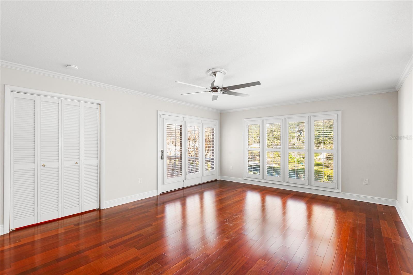 - Built-in Features, Ceiling Fans(s), Crown Molding, Eat-in Kitchen, Kitchen/Family Room Combo, Solid Surface Counters, Solid Wood Cabinets, Stone Counters, Thermostat, Walk-In Closet(s), Window Treatments