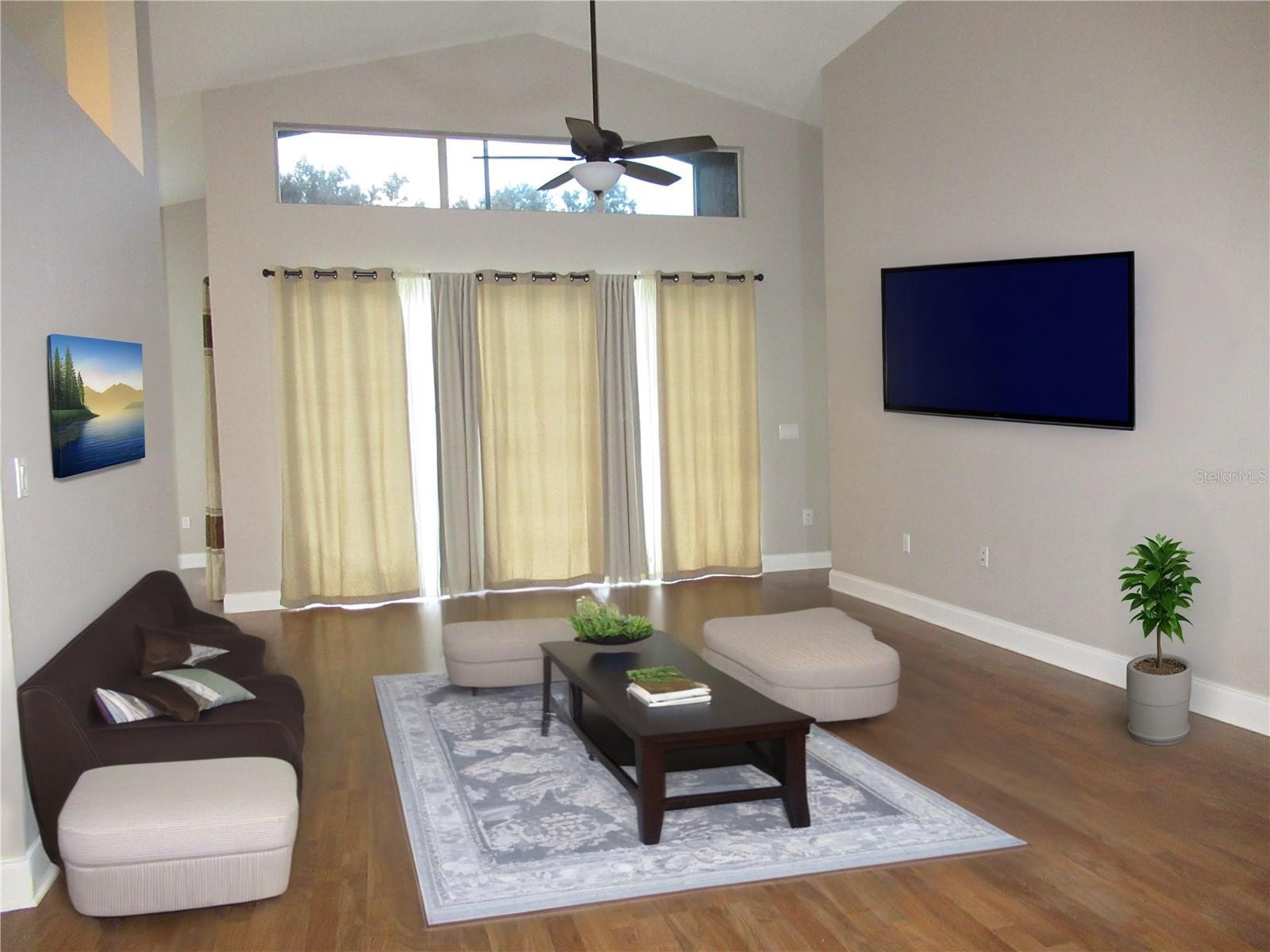 - Ceiling Fans(s), Eat-in Kitchen, High Ceilings, Kitchen/Family Room Combo, Open Floorplan, Primary Bedroom Main Floor, Split Bedroom, Thermostat, Window Treatments