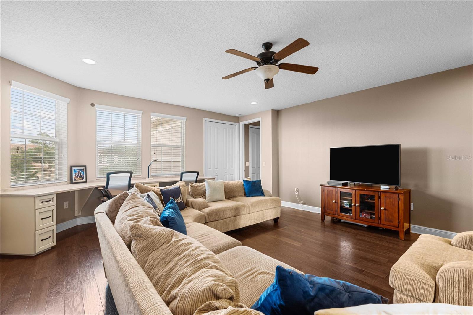Welcome to a residence that truly embodies elegance, comfort, and resort-style living. Nestled within one of the most sought-after guard-gated neighborhoods, this 6-bedroom, 5.5-bath luxury estate has been thoughtfully designed for both everyday living and unforgettable entertaining. From the moment you step inside, the home's timeless details make a lasting impression. Rich hardwood floors flow throughout the formal dining room, stairway, loft, and private office, where double-door entry and refined finishes create a space that is both functional and distinguished. A dramatic decorative-railing highlights the stairway, adding architectural interest and elevating the home's sense of style. The chef's kitchen is the heart of the home and a dream for any culinary enthusiast. Featuring two ovens, gas cooktop, and abundant counter space, it seamlessly blends design and functionality. An open flow into the main living area, anchored by a gas fireplace, provides the perfect setting for family gatherings and entertaining guests. The thoughtfully designed floor plan offers a sixth bedroom that can also serve as a versatile game room, as well as two full laundry rooms, ensuring convience at every turn. Upstairs, a spacious loft with built-in-desk creates an ideal work or study area. The primary suite is a sanctuary of its own, complete with dual walk-in closets and a luxurious bath featuring a garden tub, oversized shower, and elegant finishes-perfect for unwinding at the end of the day. Fresh new carpeting the downstairs bedroooms adds both comfort and style. Step outside to experience true Florida living. The resort-inspired backyard showcases a sparkling pool and spa with a sun shelf, a dedicated sun deck for lounging, and a fully equipped outdoor kitchen with island seating, a keg tap, and mini fridge. With a gas BBQ line already installed, entertaining has never been easier. The outdoor living space overlooks a beautiful pond, providing stunning views and breathtaking sunsets night after night. This home is more than just a private retreat- it's part of a vibrant lifestyle community. Residents of this elegant neighborhood enjoy access to an array of clubhouse amenities designed for recreation, wellness, and relaxation. Highlights include indoor and outdoor basketball courts, tennis courts, sand volleyball, a lap pool, a zero-entry resort pool with waterslides, and multiple play areas for families. For added convenience and charm, golf carts are welcome throughout the neighborhood, making it effortless to enjoy the community's resort-like setting. Every detail of this home has been crafted to blend luxury with functionality, offering an unparalleled lifestyle in a location that balances privacy, security, and convenience . Experience the elegance, embrace the lifestyle, and make this extraordinary property your forever home.