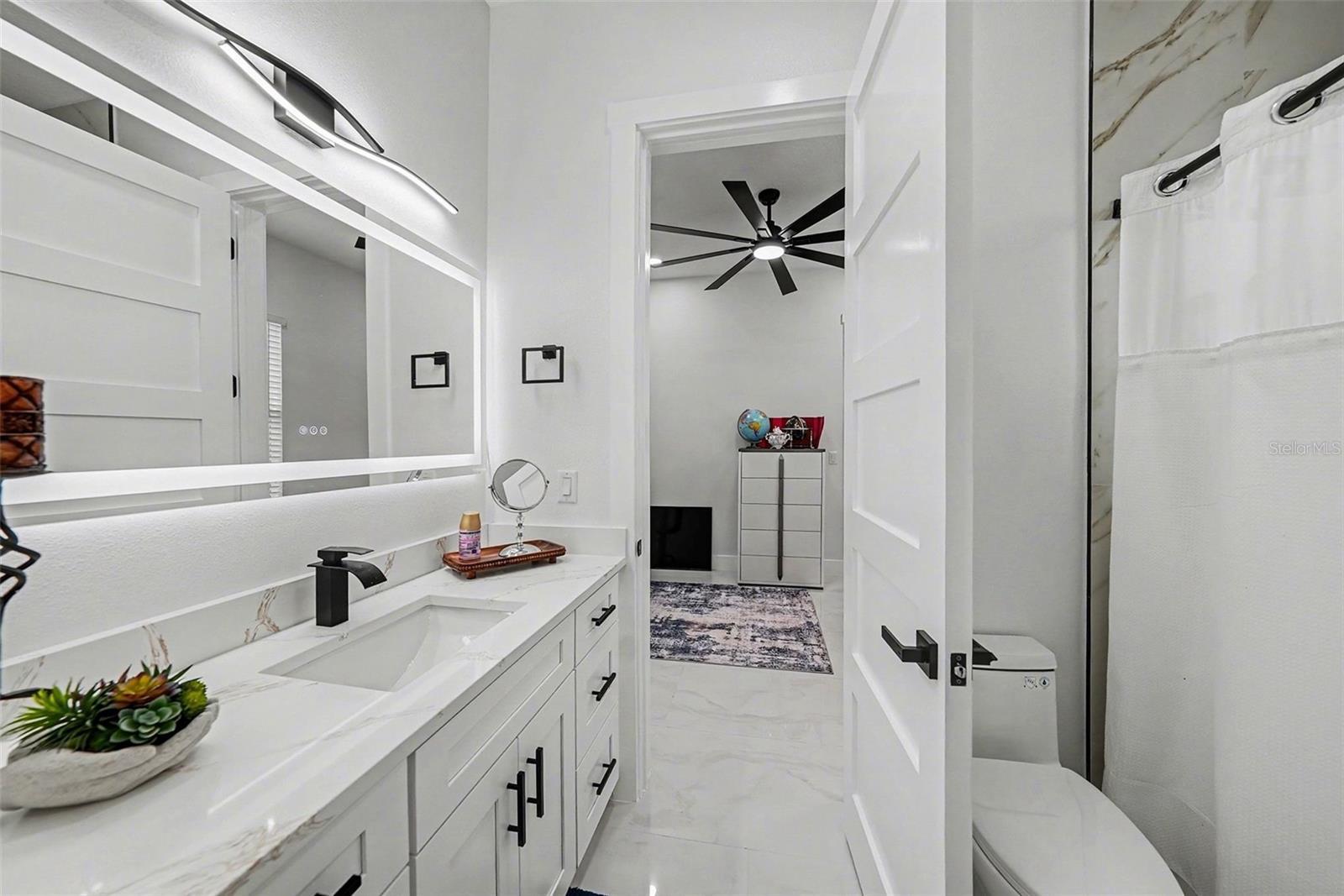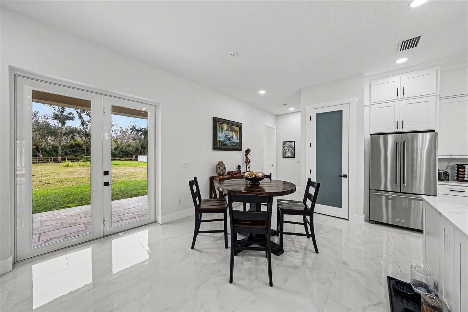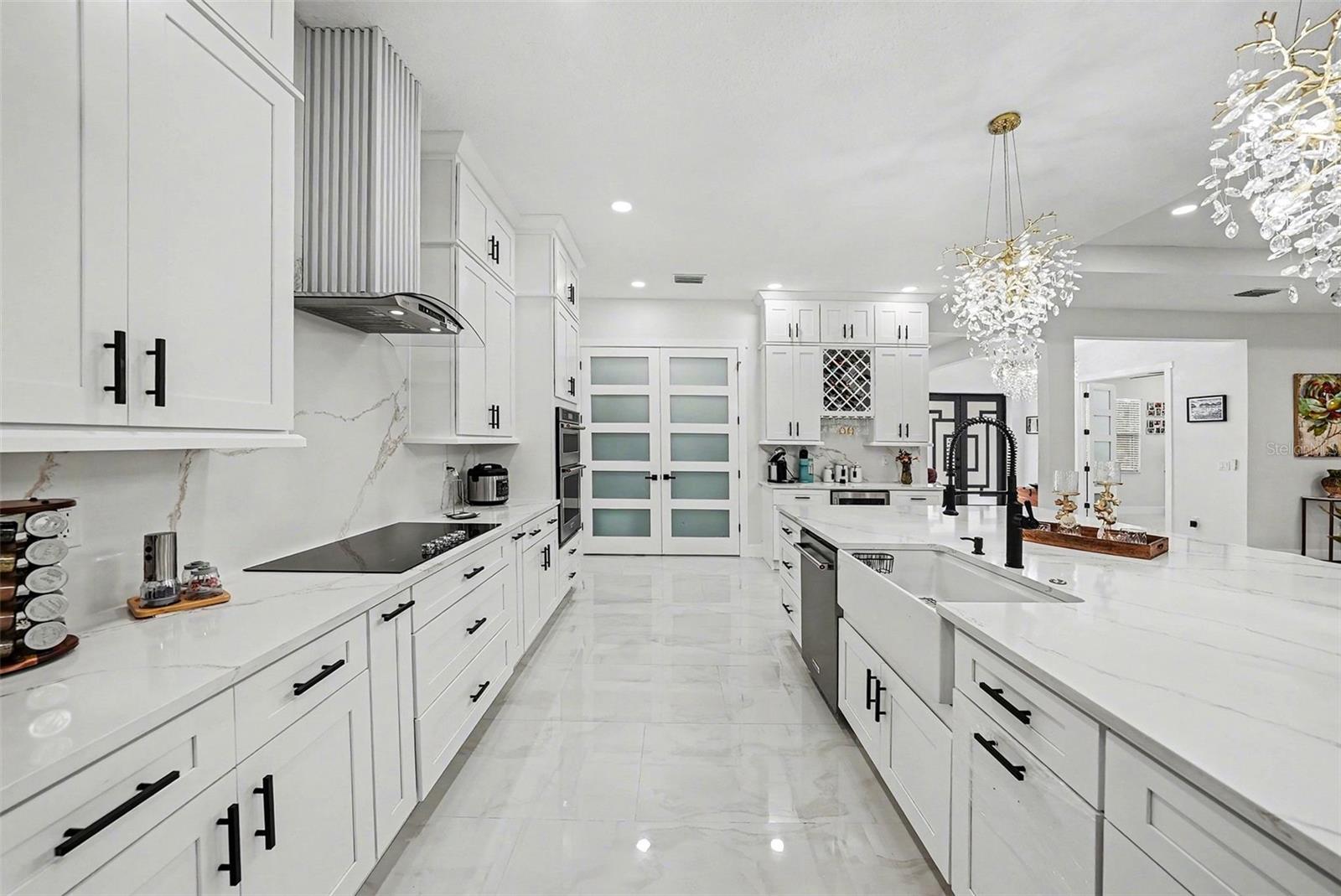 Welcome to Your Florida Home! Newly built in 2025, this stunning modern block home sits on a cleared, fully fenced 1.05-acre lot — beautifully sodded with lush grass, stately palm trees, and a few charming pines for that Florida touch. Step inside through an impressive 9-foot dual door entryway crowned with an elegant chandelier that welcomes you into over 4,600 total square feet of refined living space — including 3,375 sq ft under air with 4 spacious bedrooms and 3.5 luxurious baths. The expansive master suite is truly a private retreat featuring a large his-and-hers walk-in closet, a spa-like bathroom with double vanities, a soaking tub, and a stunning walkthrough triple shower. A second bedroom offers its own ensuite bathroom and walk-in closet, while two additional bedrooms share a convenient Jack-and-Jill bathroom layout — perfect for family or guests. Designed for entertaining, the open floor plan flows seamlessly from the formal living room to a dedicated office with built-in cabinetry, and into the grand family room and gourmet kitchen. The chef’s kitchen boasts an impressive 12’ x 6’ quartz island, extensive white cabinetry, and a complete set of premium KitchenAid stainless steel appliances, including a glass cooktop and sleek range hood. Outside, you’ll love the oversized 3-car garage and expansive wrap-around driveway, providing plenty of parking for family and guests. This is modern Florida living at its finest — spacious, stylish, and move-in ready!