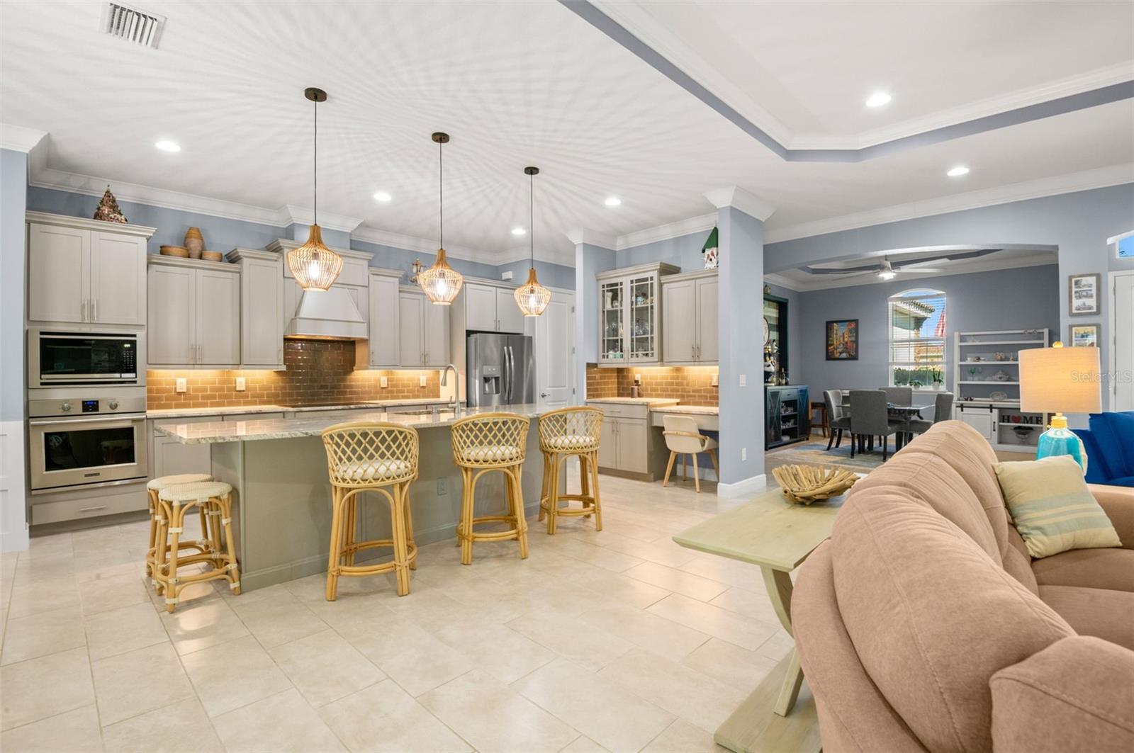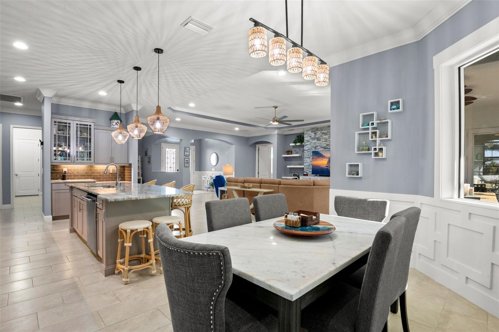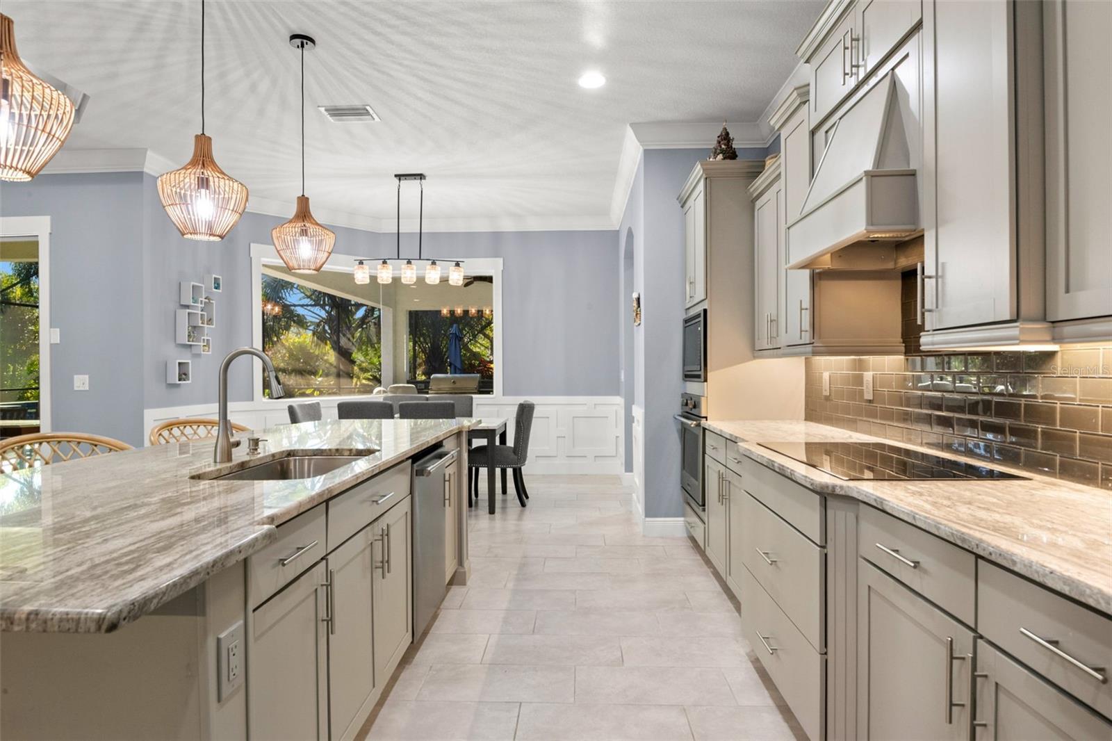 Welcome Home to an exquisite Lory model in the prestigious Rye Wilderness Estates. This residence combines timeless sophistication with modern design, offering 4 bedrooms, 4 bathrooms, a 3-car garage, and a half-acre homesite crowned with a tile roof and paver driveway. Double 8-foot glass entry doors open to a grand interior where 10-foot ceilings with crown molding create an immediate sense of elegance. The expansive great room is a true showpiece, featuring a dramatic stone accent wall with custom shelving and a tray ceiling that elevates the space. The gourmet kitchen is designed for both function and style, boasting an oversized island, top-tier stainless steel appliances, induction cooktop, custom vented hood, designer backsplash, granite countertops, and solid wood cabinetry with pullouts. A walk-in pantry provides abundant storage, blending convenience with refinement. The outdoor living space rivals a private resort. A custom pool with brand-new spa is framed by an extended paver lanai and screened enclosure, while the fully equipped outdoor kitchen with fireplace and seating area offers the ultimate setting for entertaining. Manicured landscaping surrounds the property, creating privacy and a lush backdrop. The master suite is a private retreat behind double doors, featuring expansive custom walk-in closets and a spa-like bath with dual vanities, a soaking garden tub, and a grand walk-in shower. Two additional en-suite bedrooms with walk-in closets, plus a fourth bedroom with access to the pool bath, ensure comfort and luxury for family and guests alike. With no CDD fees and low HOA dues, Rye Wilderness Estates is celebrated for its generous lot sizes, estate-style homes, and proximity to fine dining, shopping, top-rated schools, entertainment, and world-class Gulf beaches. Community amenities include playgrounds and sports courts, enhancing the appeal of this exclusive neighborhood. This property is more than a home — it is a statement of luxury, offering a lifestyle defined by elegance, comfort, and distinction.