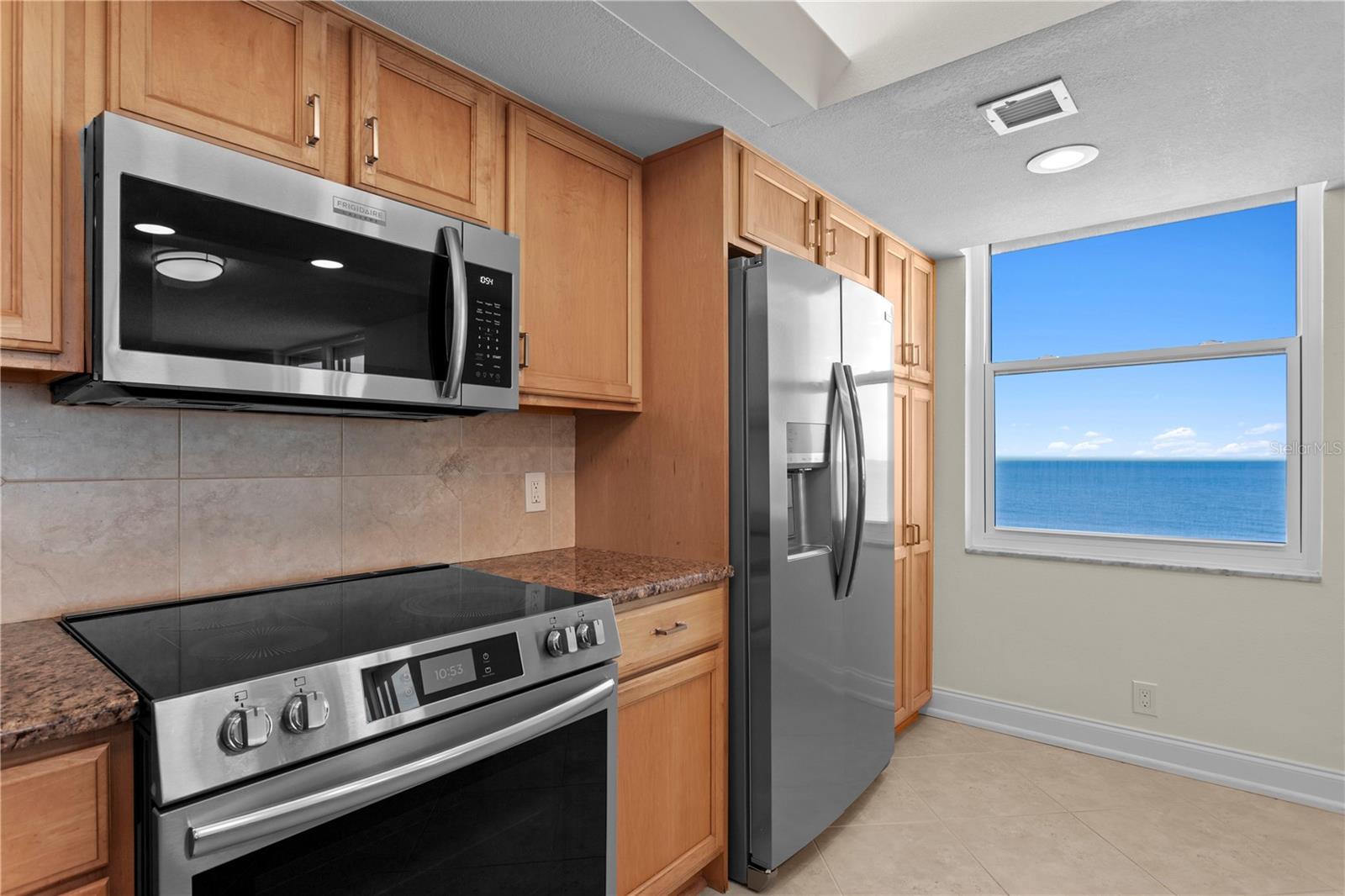 DIRECT BEACH FRONT RESIDENCE. This fully remodeled corner residence on the sixth floor of Sand Key offers sweeping Gulf of Mexico views and refined coastal living. The furnished two-bedroom, two-bath condo features new impact glass windows and doors, a new water heater and air-conditioning system, tile flooring, and fresh interior paint throughout. The open kitchen and living area is a standout, highlighted by granite countertops, brand-new stainless steel appliances, neutral cabinetry, and stunning Gulf views from nearly every angle. Step onto the spacious balcony overlooking the heated pool, Tiki huts, and sandy beach below. Additional features include covered under-building parking, ample guest parking, an underground storage unit, and in-unit laundry. Both bathrooms have been tastefully updated. South Beach II is a pet-friendly community offering a heated pool, fitness center, club room, and outdoor grilling area. Ideally located near dining, shopping, and the Sand Key Sailing Center, with easy access to the Jolly Trolley for effortless island living.