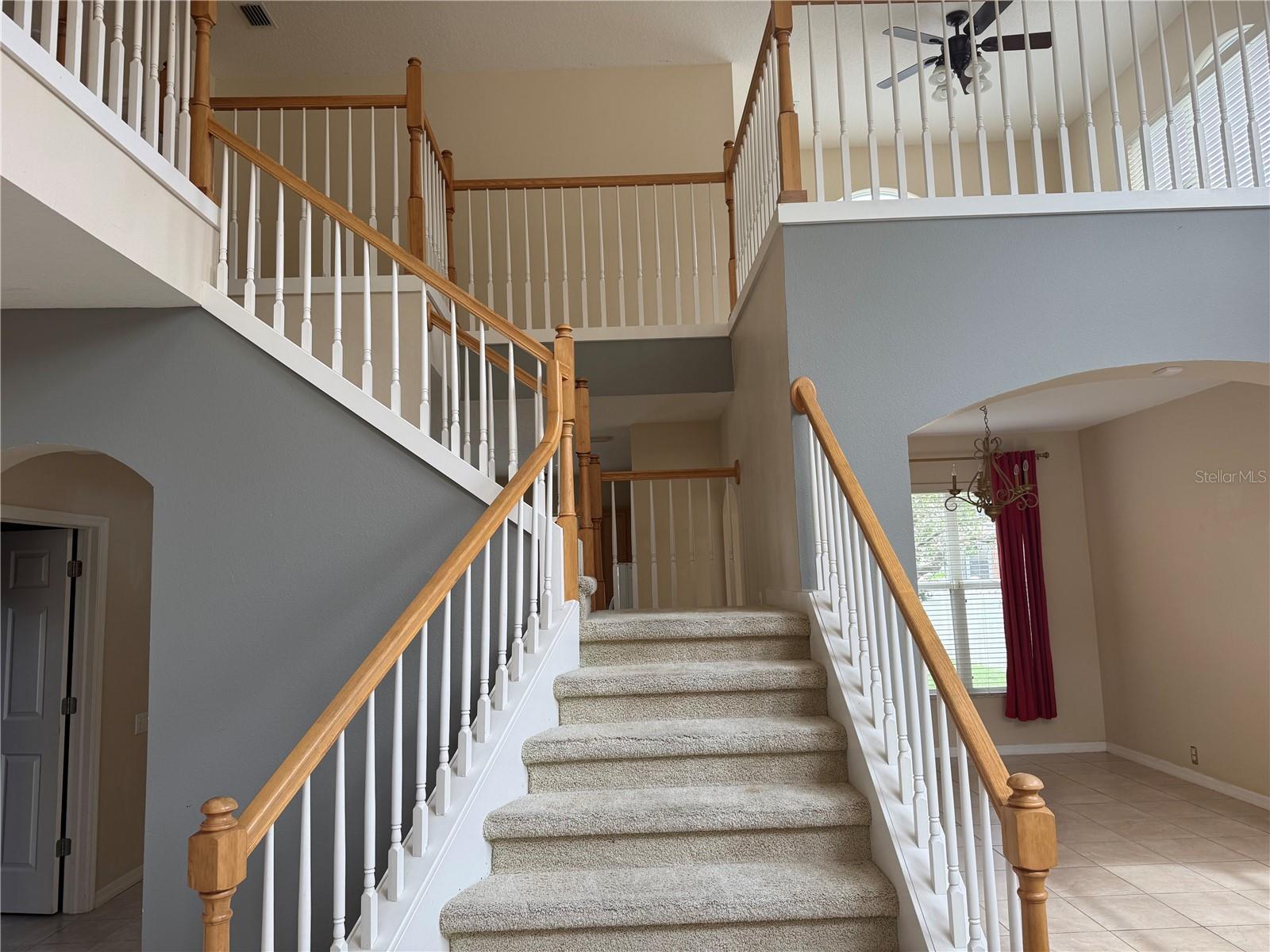 - Cathedral Ceiling(s), Ceiling Fans(s), Eat-in Kitchen, High Ceilings, Kitchen/Family Room Combo, Living Room/Dining Room Combo, Open Floorplan, PrimaryBedroom Upstairs, Solid Surface Counters, Split Bedroom, Stone Counters, Thermostat, Window Treatments