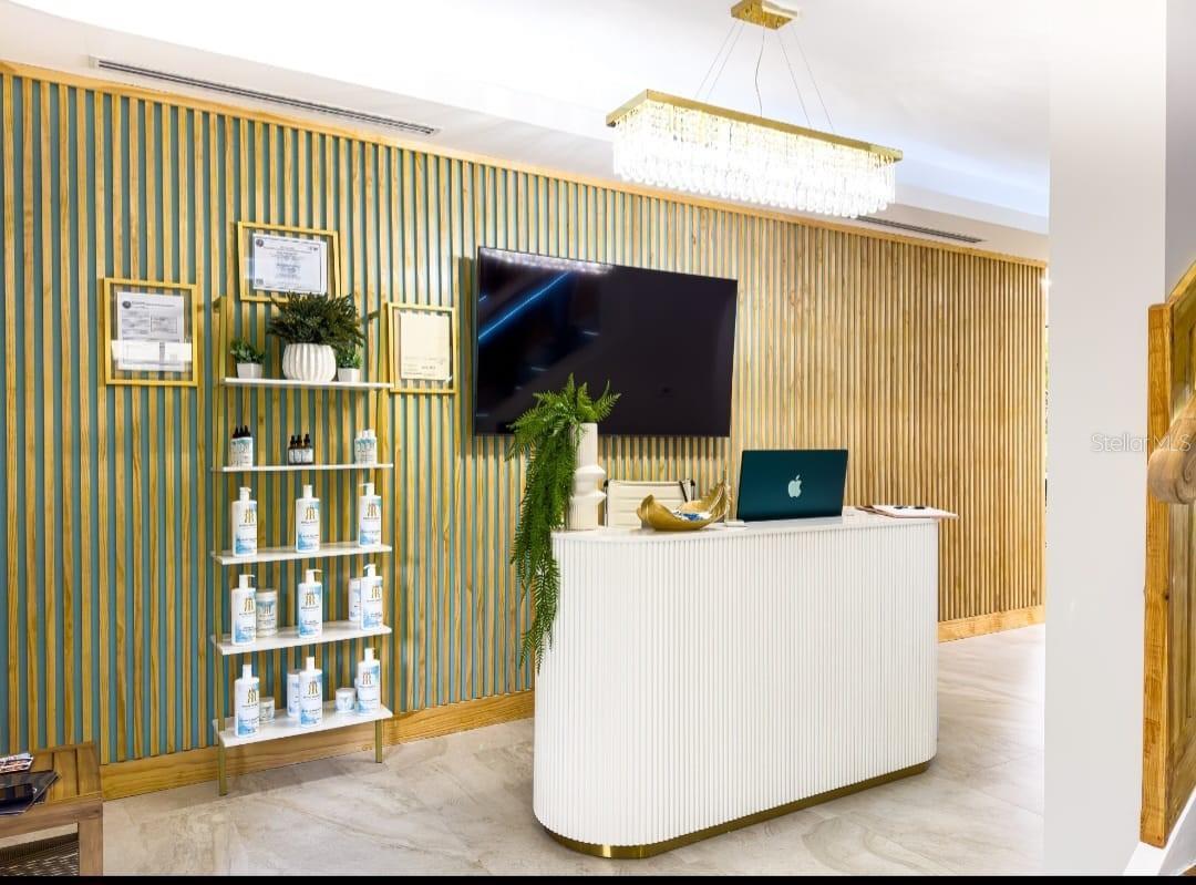 Exceptional opportunity to acquire a fully built-out, modern office building located on Gunn Highway in a highly desirable and easily accessible corridor. This space has been thoughtfully designed with luxury finishes, efficient flow, and a calming client experience throughout. The interior features a striking reception and waiting area with designer lighting and a contemporary aesthetic that immediately sets a professional tone. Multiple private treatment rooms are equipped to support a variety of aesthetic and wellness services, complemented by high-end flooring, recessed lighting, and elegant architectural details.