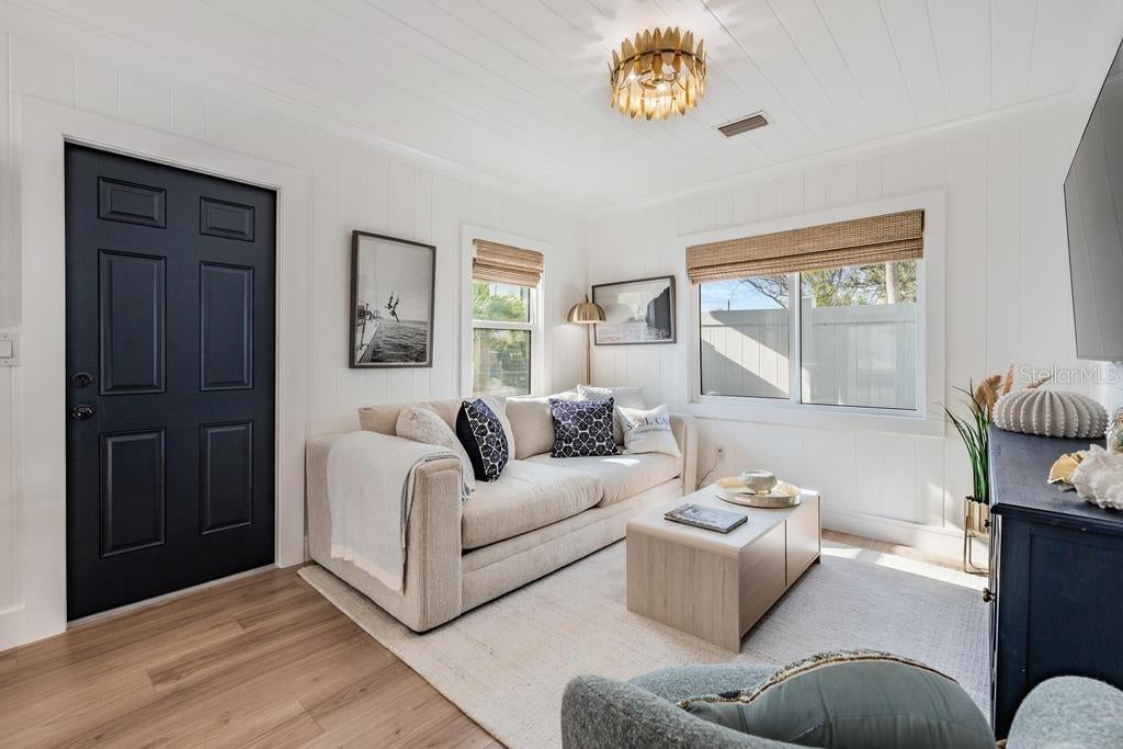 Welcome to this beautifully reimagined, fully renovated and fully furnished 2-bedroom, 1.5-bath corner-lot cottage just steps to Sunset Beach. You can see the beach from the front door of this rare gem which perfectly blends the charm of a quaint coastal retreat with today’s modern comforts and thoughtful design. No expense was spared in this comprehensive rebuild. Every major component is brand new, including impact-rated windows, insulation, HVAC system, appliances, water heater, cabinetry, quartz countertops, flooring, kitchen, bathrooms, washer and dryer, and a durable metal roof complete with hurricane straps. The home also features newly paved parking for two vehicles. Designed with peace of mind as a priority, this non-HOA property was constructed with an innovative, water-resistant approach—utilizing cement board walls and subflooring joined with sealed, shower-style seams to create a basin-like system for enhanced durability and protection. Not a single sheet of drywall was used. This is truly a turnkey, worry-free, never lived in coastal home—just bring your clothes and start enjoying the beach lifestyle. Whether you’re seeking a primary residence, vacation escape, or investment opportunity, this home is ready to deliver. SELLER FINANCING AVAILABLE for QUALIFIED BUYERS!
