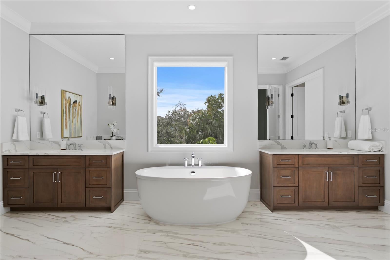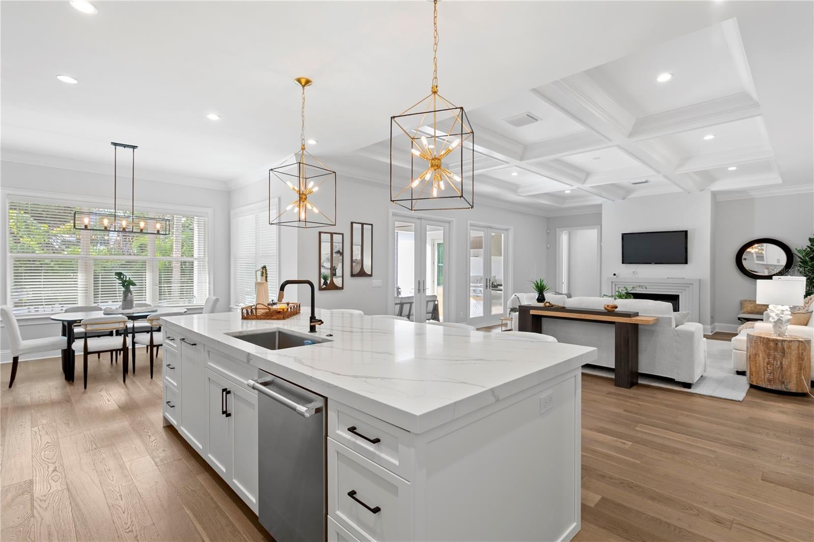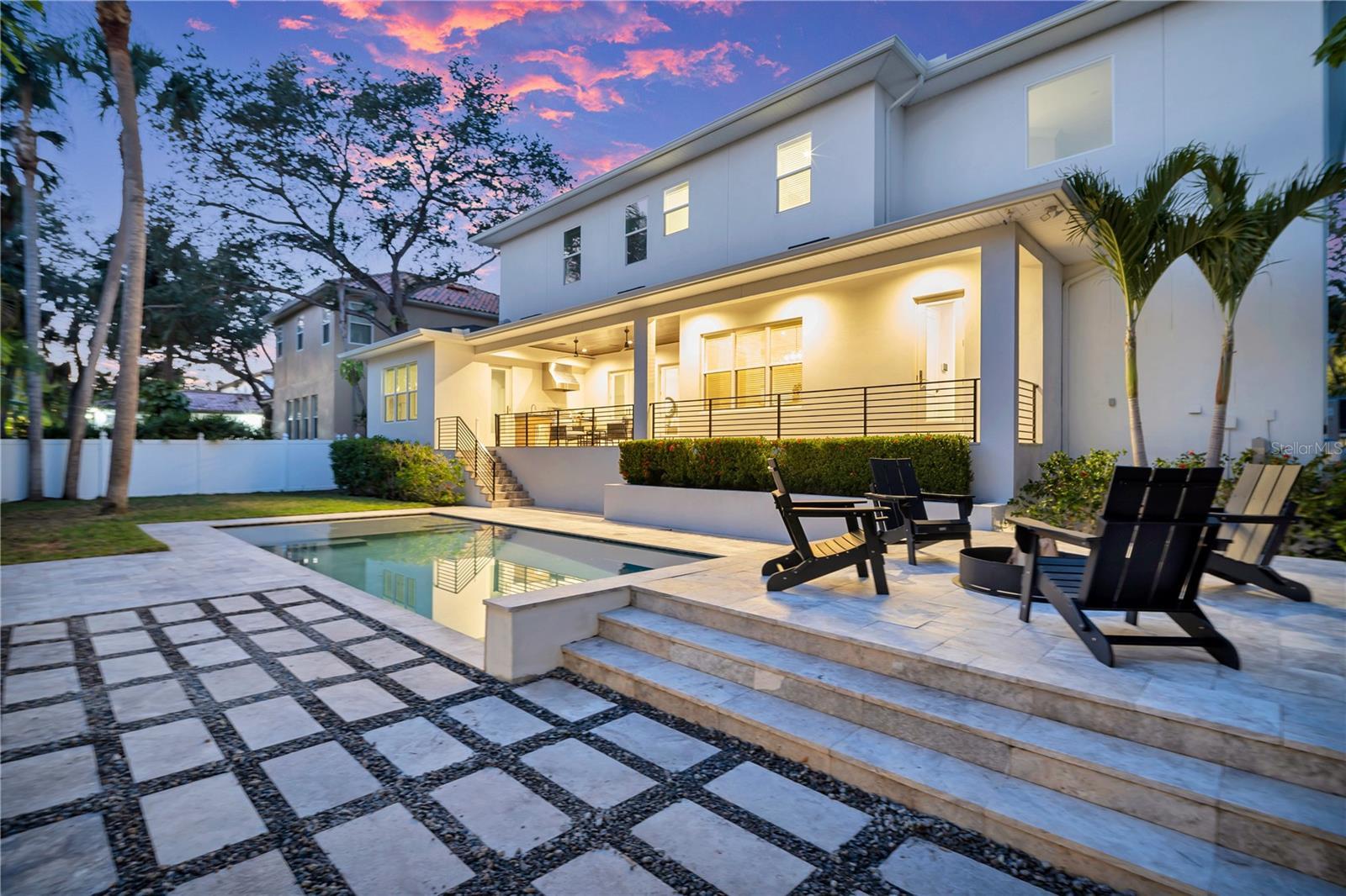 This custom-built Brookshire Homes residence showcases a thoughtfully designed floor plan that seamlessly balances elegance, comfort, and everyday functionality. Positioned on an expansive oversized lot measuring 90x143 (12,870 square feet) in the highly desirable Sunset Park neighborhood of South Tampa, the home offers 5 bedrooms, 6 full bathrooms, a dedicated office, a bonus room, a resort-style pool, and a four-car garage. A striking two-story foyer welcomes you inside, where soaring ceilings create an immediate sense of grandeur. The entry is flanked by a formal dining room and a private office or formal living space, perfectly placed for both entertaining and quiet productivity. Designed with livability in mind, the open-concept main living area and kitchen are filled with natural light from oversized windows and elegant French doors that frame serene views of the pool, lanai, and landscaped backyard. Throughout the home, custom finishes elevate the design, including hardwood floors, crown molding, coffered ceilings, and curated lighting. The chef’s kitchen is as functional as it is beautiful, featuring a six-burner gas range, oversized Thermador refrigerator, a large center island with generous storage, a hidden walk-in pantry with built-in shelving, an eat-in dining area, and a butler’s pantry with a full-size wine refrigerator. The adjacent living space is anchored by a gas fireplace, creating a warm and inviting hub for daily living and entertaining. The first-floor layout offers exceptional versatility, with a private guest suite featuring a marble-tiled en-suite bathroom, ideal for visitors or multigenerational living. A spacious bonus or flex room overlooks the pool and backyard and provides direct outdoor access, while a conveniently located pool bath, laundry room, mudroom, and additional storage enhance the home’s day-to-day functionality. Upstairs, the well-planned second level is anchored by the luxurious primary retreat, complete with a sitting area, spa-like en-suite bathroom, and an expansive walk-in closet with an island, designer built-ins, and direct access to the second-floor laundry room. Three additional upstairs bedrooms each include en-suite bathrooms with striking tile designs and custom storage, ensuring privacy and comfort for all. Designed for seamless indoor-outdoor living, the backyard retreat features a covered lanai, outdoor kitchen, and expansive pool deck—perfect for entertaining or relaxing in the Florida sunshine. Located on a quiet, upscale street within the sought-after Plant High School district, this exceptional home offers a prime South Tampa location with a floor plan that truly supports both refined living and everyday ease.